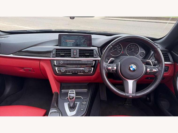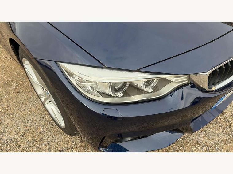 BMW Online services, BMW Teleservices, Brake pad wear indicator warning light, Check control system, Door/boot open warning, Front/rear Parking distance control, Lights on warning, Oil temperature gauge, On board computer, Outside temperature display, Run flat indicator, Service interval indicator, Stop/start button, Drive Performance Control, Sports function on gearbox with steering wheel mounted gearshift paddles, Bluetooth audio streaming, BMW professional radio/CD/MP3, DAB Digital radio, 2 speed adjustable intermittent wipers with wash/wipe function, Auto dimming rear view mirror, Body colour bumpers, Body colour door handles, Body colour door mirrors, Body colour roof mouldings, Chrome kidney grille with black vertical slats, Door sill finishers, Dual chrome exhaust, Electric adjustable heated door mirrors, Electric front windows/one touch facility, Follow me home headlights, Heat insulating tinted glass, Heated windscreen washer jets, High gloss shadow line, LED daytime running lights, LED front fog lights, M aerodynamic bodystyling, Rain sensor including auto headlights activation, Windscreen with grey shadeband, 12V sockets in front centre console and passenger footwell, 3 spoke leather M sport multifunction sports steering wheel, Anthracite Velour floor mats, Dual zone climate control, Folding front centre armrest with storage compartment, Folding storage compartment with glasses holder + coin tray, Front cupholders x 2, Front door storage with bottle holder, Front head restraints, Front sports seats with electric side bolster adjustment, Front/rear armrests within door panels, Glovebox with lid, Heated front seats, Integrated rear head restraints, ISOFIX child seat preparation+airbag deactivation, Lashing eyelets in boot, Leather handbrake grip, Reach + rake adjustable steering column, Rear centre armrest, Storage compartment behind rear seat, Storage compartment in centre rear seat base, Storage compartment in rear centre console, Toolkit located in luggage compartment, Extended lights package - 4 Series, 3 point seatbelts on all seats, ABS/EBD, Automatic Stability Control (ASC), BMW emergency call, Cornering brake control (CBC), Crash Sensor - activates hazard/interior lighting + unlocks doors, Driver seatbelt warning indicator, Driver/Front Passenger airbags, DSC+, Dynamic brake control, Dynamic Traction Control - DTC, Front seatbelt force limiters, Front seatbelt pretensioner, Front side airbags, Hill start assist, Roll over protection, Tyre pressure monitor, Warning triangle and first aid kit, Drive away door locking, Electronic immobiliser, Remote central locking, Remote control Thatcham category 1 alarm, Run flat tyres,