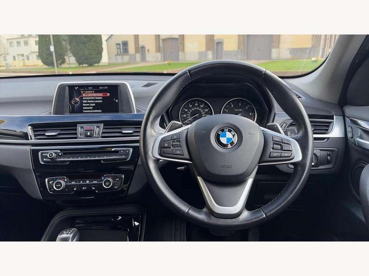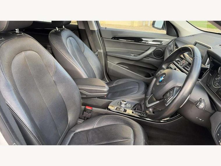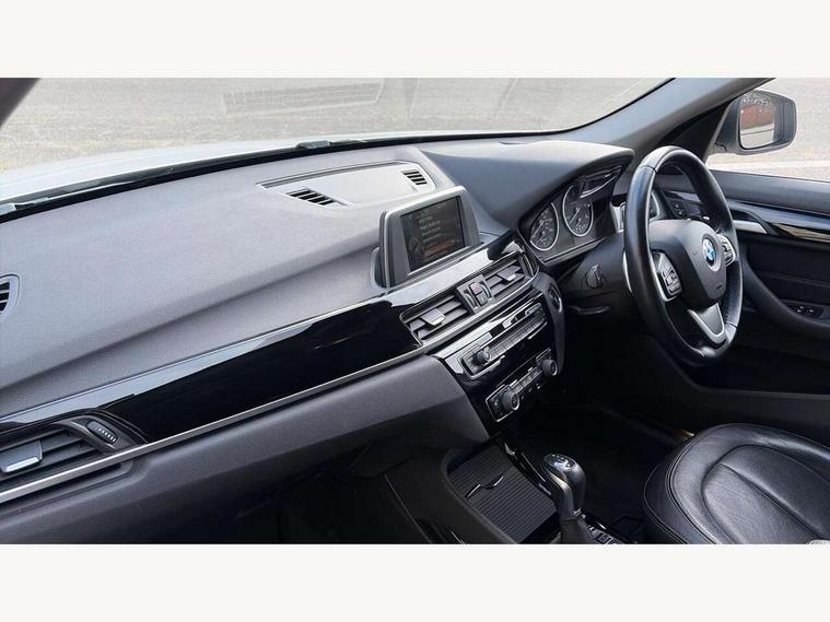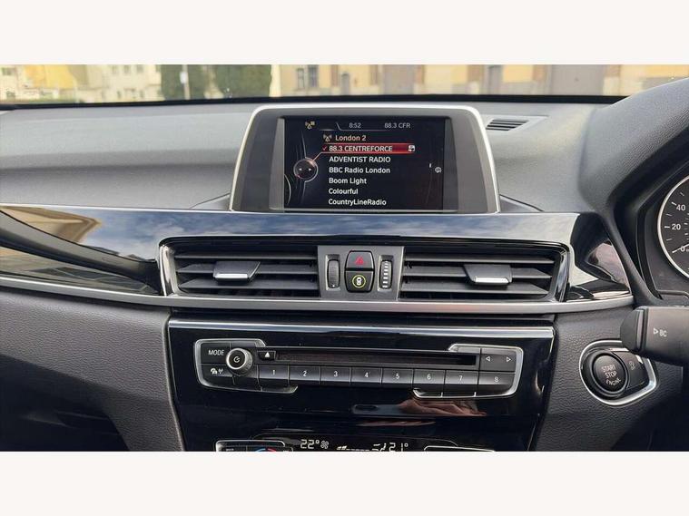 Active Guard incl speed limiting and front collision warning with brake intervention, Ambient temperature display, Attentiveness assist, Automatic tailgate opening, BMW Online services, BMW Teleservices, Lights on warning, On board computer, Outside temperature gauge, Rear park distance control, Service interval indicator, Speed limiter, Stop/start button, Tyre puncture warning system, Diesel particulate filter, Electronic differential lock, Performance Control, Auxiliary socket for external MP3 player, BMW professional radio with CD player, DAB Digital radio, Adaptive LED Headlights, Adjustable headlights, Body colour bumpers, Body colour door handles, Body colour door mirrors, Chrome tailpipe finisher, Electrically adjustable and heated door mirrors, Exclusive door sill finishers, Fingertip control / anti-trap function on electric window, Follow me home headlights, Front and rear electric windows, Front fog lights, Heat insulating tinted glass, Heated windscreen washer jets, LED daytime running lights, Rain sensor including auto headlights activation, Welcome home function, 12v power point in centre console, 12V power socket in passenger footwell, 3 spoke sport leather steering wheel, 4 grab handles, Boot light, Centre console with cupholders, Dakota leather upholstery, Driver/passenger sunvisors with ticket holders, Drivers folding storage compartment, Dual zone automatic air conditioning, Front and rear door armrests, Front centre armrest/sliding cover, Front passenger isofix child seat attachment, Front/rear adjustable head restraints, Heated front seats, Illuminated glovebox, Isofix rear child seat preparation, Leather gearknob/gaiter/handbrake grip, LED ambient lighting in door trim, Luggage area underfloor compartment, Multifunction steering wheel, Rake/reach adjustable steering wheel, Sliding/split/reclining 40/20/40 rear seat with 60/40 split rear seat base, Steering wheel gearshift paddles, Extended storage package - X1, 3 rear 3 point seatbelts, ABS/EBD, Audio/visual collision warning system, Automatic Stability Control (ASC), BMW emergency call, Cornering brake control (CBC), Crash Sensor - activates hazard/interior lighting + unlocks doors, Driver/Front Passenger airbags, Driver/front passenger side airbags, DSC - Dynamic Stability Control, Dynamic brake control, Dynamic Traction Control - DTC, Electronic parking brake, Front and rear head airbags, Front passenger airbag deactivation, Front seatbelt force limiters, Hill start assist, Pyrotechnically pre-tensioned front seatbelts, Rear door child safety locks, Seatbelt warning, Tyre pressure monitor, Warning triangle and first aid kit, Auto door lock when driving, Central locking including boot and fuel flap with deadlocks, Engine immobiliser, Locking wheel nuts, Remote control Thatcham category 1 alarm, High gloss black centre console, Low rolling resistance tyres,