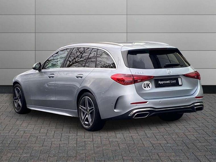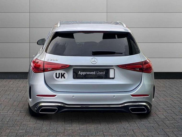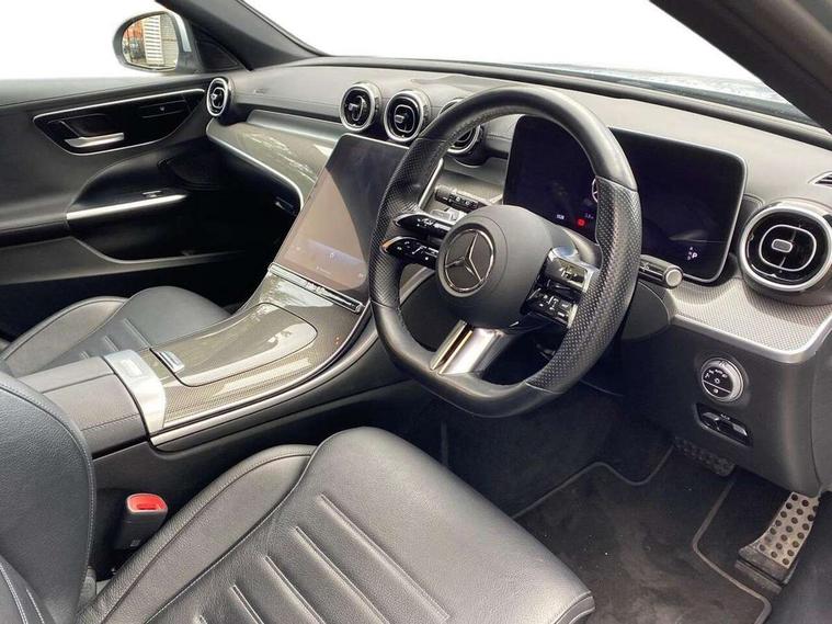 11.9" high resolution multimedia colour display, 12.3" digital instrument cluster display, Active blind spot assist, Active brake assist plus, Active lane keeping assist, Attention assist, Cruise control with speedtronic variable speed limiter, DYNAMIC SELECT with a choice of driving modes (ECO, Comfort, Sport, Sport+ and Individual), E-call, Easy pack automatic powered tailgate, Extended MBUX functions, Finger print sensor, Fluorescent jacket for driver, MBUX navigation premium, MBUX voice control activated by keywords "Hey Mercedes", Mercedes connect me, Mercedes me remote services, Outside temperature gauge, Pre-installation for digital key transfer, Remote boot release, Service indicator (ASSYST), Smartphone integration, Sports direct steer speed sensitive steering, Status display for rear seat belts in instrument cluster, Wireless charging system for mobile devices, 66l fuel tank with increased capacity, 9G TRONIC 9 speed automatic transmission, Petrol Particulate Filter, Sports suspension with selective damping system and lowered by 15 mm, Sporty engine sound system, DAB Digital radio, MBUX multimedia system, Steering wheel mounted audio controls, Adaptive brake lights, Adaptive high beam assist, AMG body styling front apron, rear apron and side skirts, AMG front bumper with sporty air intakes and chrome elements, AMG rear bumper with high gloss chrome elements, AMG side skirts in vehicle colour, B-pillar trim in glossy black, Body coloured bumpers, Body coloured door mirrors, Chrome beltline trim, Chrome roof rails, Daytime running lights, Electric windows with one touch opening/closing and obstruction sensors, Electrically adjustable and heated door mirrors, Green tinted glass, LED high performance headlamps, LED Indicators, LED tail lights, LED third brake light, Powerdomes on bonnet, Privacy glass, Radiator diamond grille with integrated Mercedes Benz star and louvre silver with chrome pins, Radio aerial integrated into rear window, Rain sensor with automatic windscreen wiper activation, Rear side wing doors, Rear wiper, Side windows surround in polished aluminium, Two visible exhaust pipes integrated into rear bumper, 3 spoke flattened bottom AMG multifunction steering wheel in black nappa leather with chrome inserts and perforated leather in grip area, AMG sports seats, Auto Mercedes-Benz child seat recognition sensor, Black air vents with silver chrome elements, Black floor mats with AMG lettering, Black roof liner, Door trim elements high gloss black with silver chrome surroundings and switches, Double cupholder in centre console, Folding rear seat backrest, Front and rear head restraints, Front centre armrest with storage compartment, Front door sills with Mercedes Benz lettering, Gearshift paddles on steering wheel, Heated front seats, Illuminated glove compartment stowage, Leather upholstery, Load compartment cover, Manually height and reach adjustable steering column, Overhead control unit in high gloss black, Rear top tether child seat ISOFIX attachment, Single front passenger seat, Sports pedals with stainless steel surfaces and rubber studs, Sunvisors with illuminated vanity mirrors, THERMATIC 2 zone automatic climate control, Interior lighting package - C Class, Mirror pack - C Class, Parking package with reversing camera - C Class, Seat comfort pack - C Class, Stowage space pack - C Class, USB package - C Class, 3 rear 3 point seatbelts, Active bonnet pedestrian safety measure which detects an impact and raises bonnet, Adaptive brake system with HOLD function and brake drying in the wet, Anti-lock braking system (ABS), Black seat belts, Brake calipers with Mercedes-Benz lettering + perforated front brake discs, Child proof door locks, Drivers knee airbag, Drivers pelvis airbag, Dual stage driver/passenger airbags, Electric parking brake, Electronic Stability Programme (ESP), Front centre airbag between driver and front passenger seats, Front side airbags, Larger brake discs on front axle, Rear passenger airbag, Rear seatbelt warning indicator, Sports braking system with perforated front disc brakes, Tyre pressure monitoring system, Warning triangle and first aid kit, Window airbags, Central locking with interior switch, automatic locking and crash sensor with emergency opening function, Chrome surround in electric key, URBAN GUARD vehicle protection (Thatcham Category 1) consisting of break-in, anti-theft alarm system (ATA), interior monitoring and tow-away protection, Artico man-made leather dashboard with contrast stitching, Centre console trim in metal weave, 18" AMG 5 spoke design aerodynamically optimised alloy wheels painted in tantalite grey with high sheen finish, Summer tyres, TIREFIT with tyre inflation compressor,