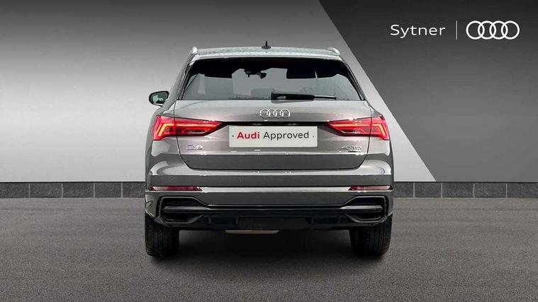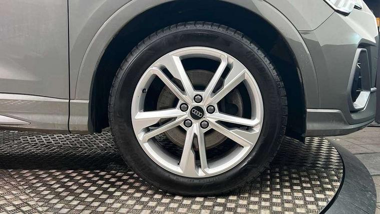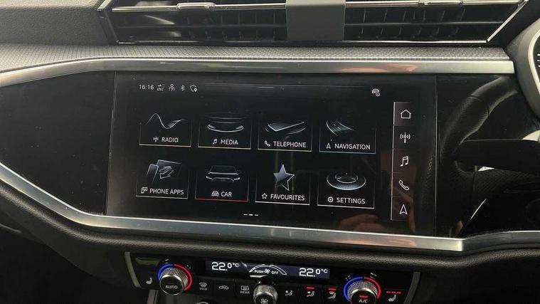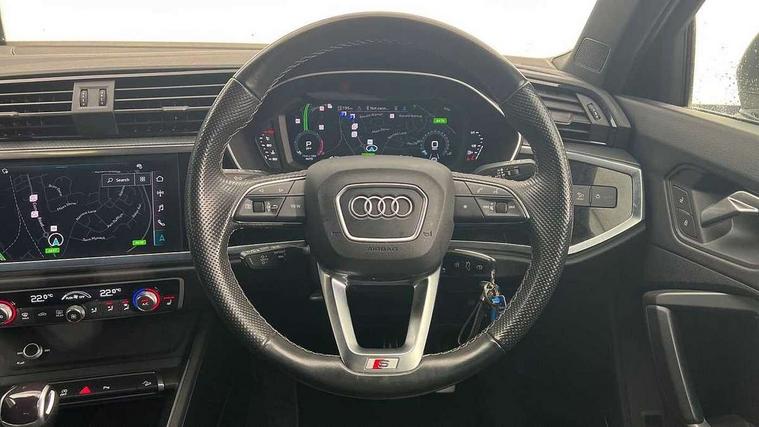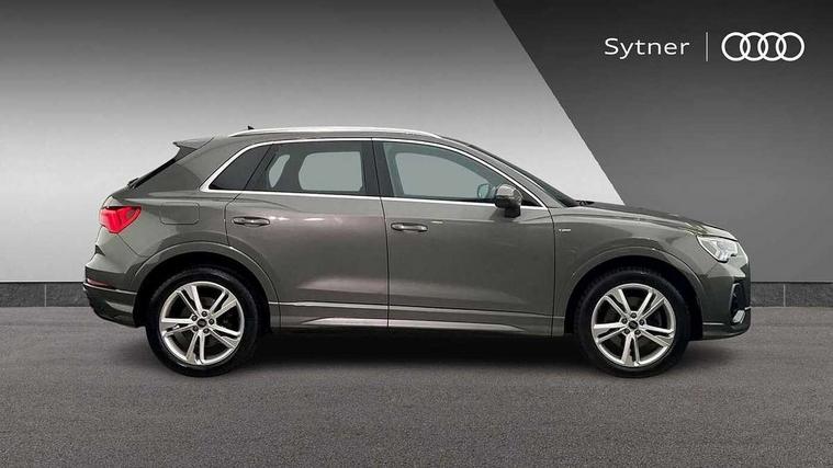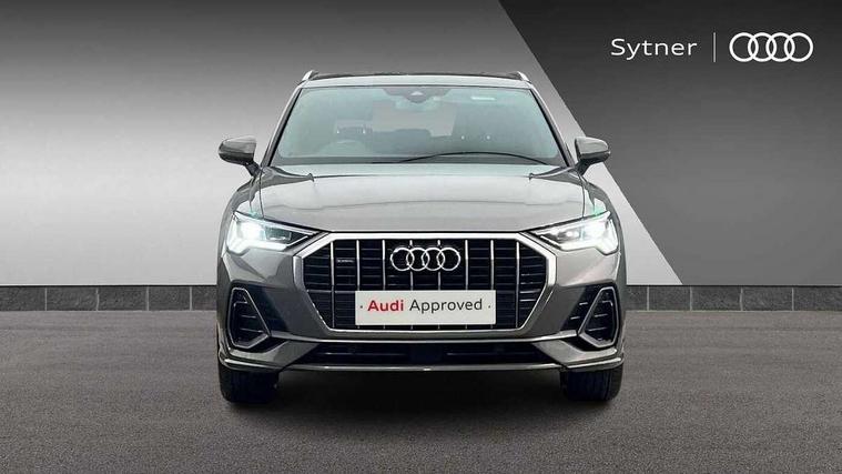 360 degree view camera, Amazon alexa Integration, Audi connect safety and service, Audi drive select, Audi lane departure warning, Audi Virtual Cockpit - 10.25" display, Bluetooth interface, Camera based traffic sign recognition, Legal emergency call, MMI Navigation Plus with high resolution 10.1 inch touchscreen colour display, Phonebox light with wireless charging, Power operated tailgate, Progressive steering, Service interval indicator, Smartphone interface includes wireless Apple carplay/Android Auto, Start stop system with recuperation, Voice control system with natural language interaction, Diesel particulate filter, Sports suspension, 2 USB-C ports with charge and data functions, DAB digital radio module, SONOS premium sound system, Acoustic windscreen, Aluminium roof rails, Aluminium window trim, Anthracite black radiator grille, Auto dimming door mirrors, Auto dimming frameless rear view mirror, Body colour front spoiler blade, Electrically folding, adjustable and heated door mirrors with integrated LED side indicators and kerb view function for passenger side, Front and rear electric windows, Front fog lights, Front side air inlets in matt platinum grey, Grille vertical bars in aluminium silver/Matt, High gloss black finish B and C pillars, LED Dynamic rear indicators, LED rear lights, LED third brake light, Matrix LED headlights with LED daytime running lights, Panoramic glass sunroof, Privacy glass dark tinted rear and rear-side windows (from B-pillar backwards), Rain and light sensors, Rear diffuser grille in grained matt black, Rear diffuser strip in matt anthracite black, Rear side wing doors, Rear wiper, S line badges on front wings, S line front and rear bumpers and side skirts in contrasting Manhattan grey paint finish, Side skirt insert in matt Platinium grey, Variable front intermittent wipers, 12V socket in rear centre console, 3 seat bench in 2nd row, 3 spoke leather multifunction steering wheel features S badging and grips in perforated leather with contrast stitching, 40:20:40 folding with manual adjustment for 60:40 forwards/backwards position and backrest angle, Adjustable rear seat bench/backrest with centre armrest and cupholder, Black cloth headlining, Dual zone electronic climate control, Electric lumbar support, Electrically adjustable front seats, Front and rear black floor mats with contrast stitching in rock grey, Front and rear headrests, Front centre armrest, Heated front seats, Height and reach adjustable steering wheel, Illuminated door sill trims with S logo, ISOFIX child seat mounting for front passenger with airbag deactivation and outer rear seat including top tether attachment point for outer rear seats, Perforated leather gearknob, Single front passenger seat, Stainless steel luggage compartment sill finisher, Stainless steel pedals, Twin leather upholstery with front sport seats + S embossing, Non smoking pack - Q3, 3x3 point rear seatbelts, 6 airbags - Driver, front passenger, curtain and side windows, Audi pre-sense front with pedestrain and cyclist recognition, Electrically operated child locks on rear doors, Electromechanical parking brake, Electronic stabilisation control including ABS, ASR and EDL, Front seatbelt reminder, Hill descent control, Hill hold assist, Pre sense basic, Seatbelt monitoring, Tyre pressure warning, Warning triangle and first aid kit, Advanced key, Anti theft alarm, Anti theft wheel bolts, Immobiliser, Remote central locking, Aluminium look interior elements, Dark matt brushed aluminium inlay, Detail dashboard around MMI touch colour display in glass look, black with surround in aluminium look, Leatherette door armrest,