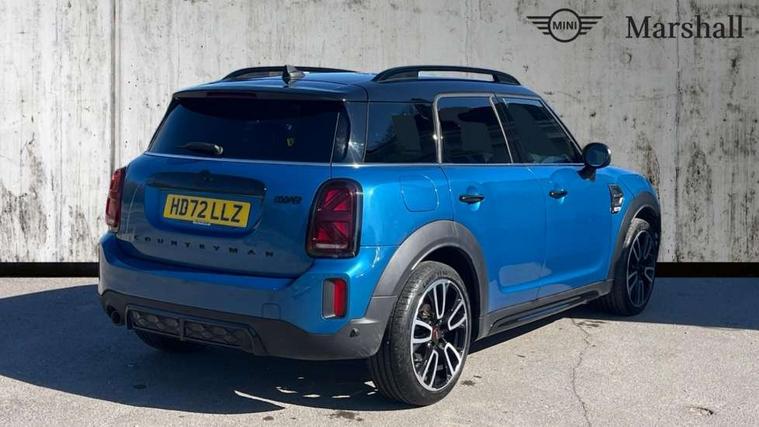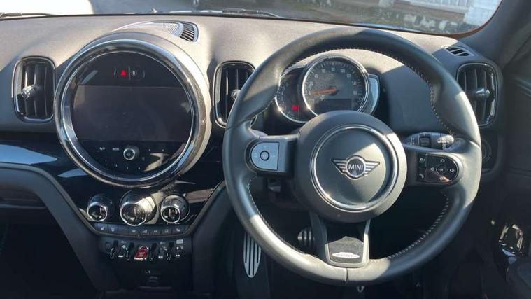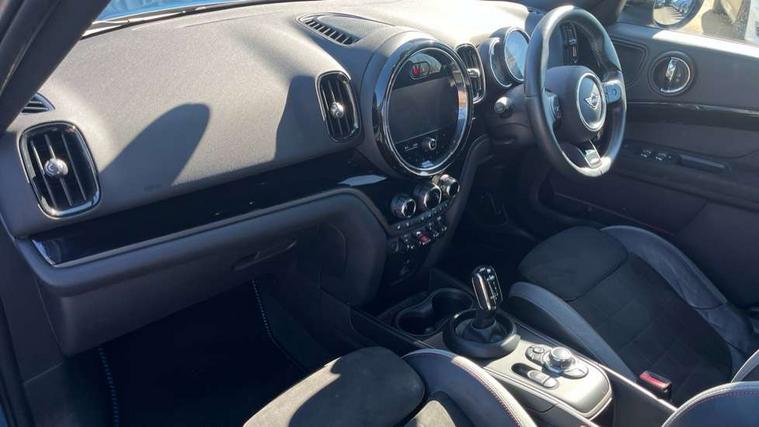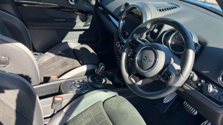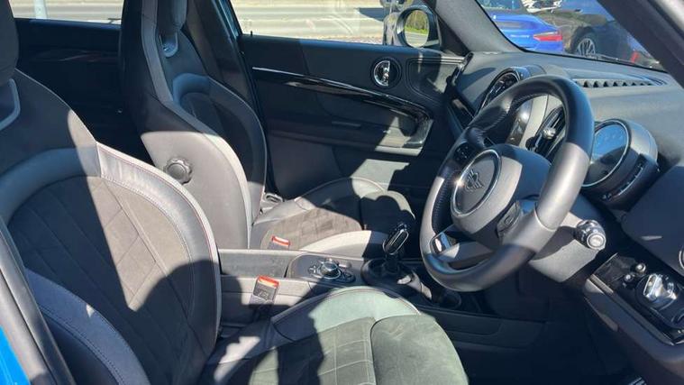 Active Guard incl speed limiting and lane departure functions with auto steering, and front collision warning with brake intervention, Automatic start/stop function with brake energy recuperation, Compatible mobile phone bluetooth with audio streaming, Cruise control with brake assist, Electro-mechanical speed dependant steering assistance, Instrument cluster, MINI Driving Modes - centre toggle switch to control driving setting (sport, mid and green), Mini E-call, On board computer, Rear parking distance control, 51 Litre fuel tank, Double Vanos system, Fully variable valve control, High precision injection, Performance Control, Steptronic transmission with double clutch, FM tuner and DAB digital radio, 3rd brake light, Body colour fuel filler cap, Day time driving lights, Door sill strips, Dynamic brake lights, Electric windows, Heated rear window, Heated windscreen washer jets, John Cooper Works - aerodynamic kit (front and rear apron, spoiler), front and rear sport bumpers and part-painted side sills with door sill finishers, John Cooper Works Logo, LED fog lights, LED Headlights, Model logo, Model logo on Tailgate, Rain sensor with auto headlights, Rear fog lights, Rear side wing doors, Rear window wiper, Side scuttle panel with integrated indicator, Split rear doors, Sun/heat protection glass, White indicator lenses, 12V socket in centre console, 3 seat bench in 2nd row, 360L luggage compartment capacity, 4 lashing eyes in luggage compartment, 40:20:40 split folding rear seats, Anthracite headlining with grab handles and clothes hooks, Chrome interior highlights, Colour line - Carbon black, Cupholders, English handbook, Floor mats, Front headrests, Glove compartment, Height and length steering column adjustment, Interior lighting with 12 basic colours selectable via toggle switch in roof, Isofix rear child seat preparation, LED reading lights, vanity mirror lights, front foot well light and spotlight on front seats, Manual air conditioning, Mini John Cooper Works leather gearshift lever and handbrake gaiters, Multifunction steering wheel, Nappa leather steering wheel with MINI Yours logo, Rear headrests, Single front passenger seat, Stainless steel pedals and foot rest, Storage compartments in doors, Sunvisors with vanity mirrors, Excitement pack - Countryman, Navigation pack - Countryman, Piano black exterior pack - Countryman, 2 tone horn, 3 point seatbelts on all seats, 6 Airbags - front, side, head and seat belt tensioners, Anti-lock braking system (ABS), DSC - Dynamic Stability Control, Electronic handbrake, Front and rear disc brakes, Hill start assist, Manual rear child locks, Tyre pressure monitoring system, Alarm system with tilt sensor, monitoring doors, bonnet interior and tailgate, Auto drive away locking, Deadlocking function, Electronic vehicle immobiliser, Locking wheel bolts, Start/stop toggle with keyless go, Piano black JCW interior trim, Tool kit,