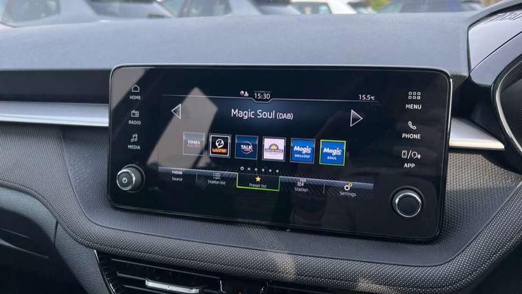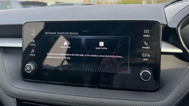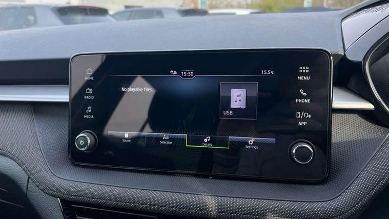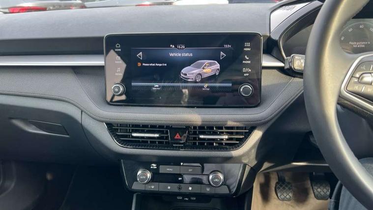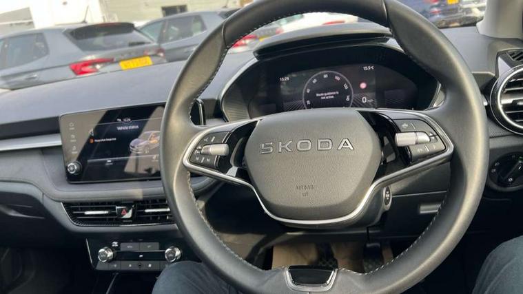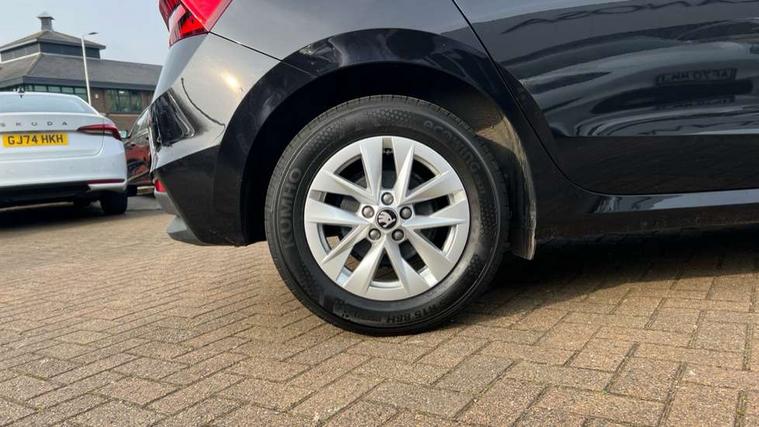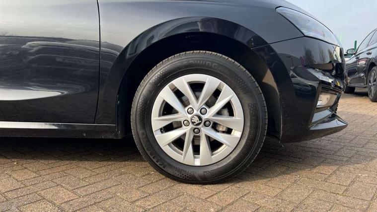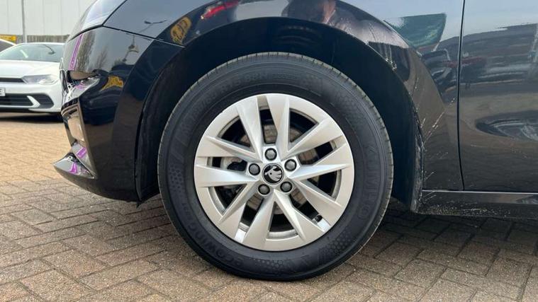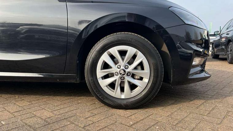 8" Digital instrument display, Advanced driver attention and drowsiness monitor, Bluetooth connection, Electromechanical power steering, Exterior temperature gauge, Service interval indicator, Traffic sign recognition, Wireless SmartLink for Apple CarPlay and Android Auto, 6 Speakers (4 in front and 2 in rear), 8.25" Skoda infotainment touchscreen display, Auxiliary socket for external MP3 player, DAB digital radio reception, Auto dimming rear view mirror, Body colour door mirrors, Body coloured bumpers, Door mirror integrated indicators, Front and rear electric windows, Front window wiper intermittent control, Headlight range control - Automatic, Ice scraper in fuel cap, LED 3rd brake light, LED daytime running lights with coming and leaving home feature, LED rear lights, Rear LED fog light, Rear side wing doors, Rear window wiper with washing nozzles, Roof mounted spoiler, SKODA tailgate lettering in chrome, Unique dark chrome design logo on alloy wheels, 2 reading lights in front and 2 reading lights in rear, 3 rear headrests, Backrest split and folding, Central console with removable cup holder and storage box, Chrome handbrake release button, Dual zone air conditioning with climatronic electronic control, Fabric upholstery, Front centre armrest, Gearshift knob/handle in leather, Grain satin black interior door handles, Hand brake lever handle in leather, Height adjustable front headrests, Height adjustable front seats, Height adjustable steering wheel, ISOFIX and TopTether anchorage points to the outer rear seats, ISOFIX and TopTether on the front passenger seat, Luggage compartment lighting, Manually adjustable lumbar support in front seats, Pollen filter, Rear seat bench unsplit, Single front passenger seat, Skoda lettering on steering wheel, Storm grey headlining, Sun visors with mirror and airbag label on passenger side, Textile floor mats, Ticket holder, Umbrella in drivers door, 3-point height adjustable front seats belts with pretensioner and force limiter, Automatic warning lights in case of crash, Driver and passengers airbag with switch off function, e-Call+, ESC including ABS, MSR, ASR, EDS, HBA and XDS, Front and rear seat belt warning, FRONT ASSIST (AEB City and AEB Inter Urban), Front side airbags, Head airbags, One tone horn, Pedestrian protection, Three rear 3-points safety seat belts with pretensioner and force limiter including stop function for outer rear seat belts, Tyre pressure monitoring system, Anti-theft alarm system including immobiliser, interior monitoring, backup horn, and towing protection, Central locking with radio remote control, interior controls, SAFE function and 2 foldable keys, Black painted air vents, Grain satin black central console cover, Metallic grey upper decorative trim, Satin black door and side trim panel in front, Textile Kota grey lower decorative inserts, Anti-theft wheel bolts protection, Super-low rolling resistance tyres,