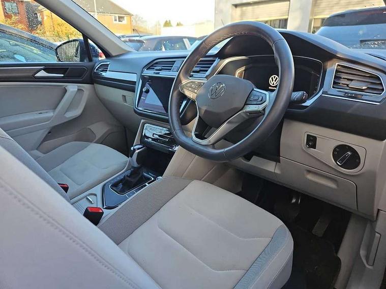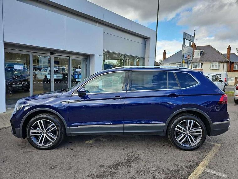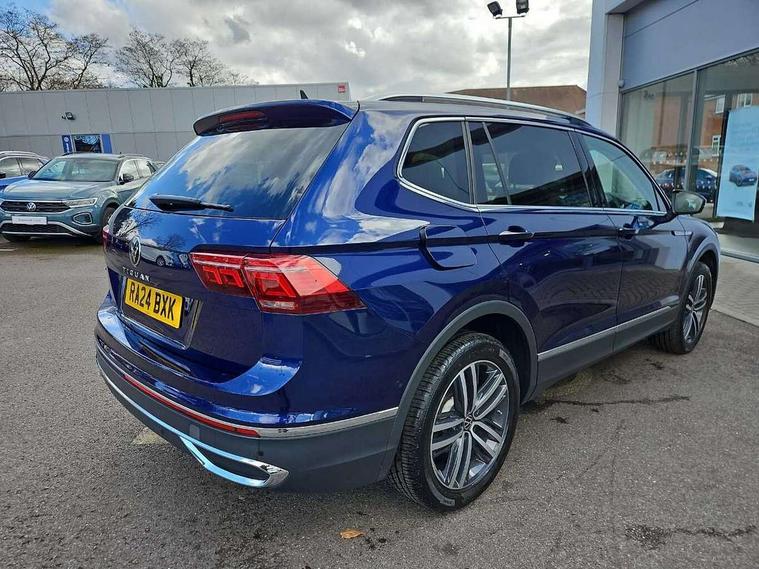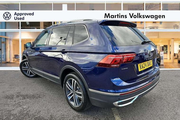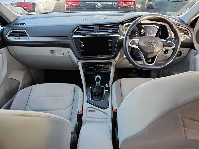 Adaptive cruise control, Advanced driver attention and drowsiness monitor, App-Connect, Digital cockpit pro, Driver profile selection, eCall emergency call service, Electric boot lid, Lane keeping system Lane Assist, Mobile phone interface comfort with inductive charging feature, Multifunction front facing camera, Power assisted speed sensitive steering, Speedo and rev counter, electronic odometer, trip, service interval display and exterior temperature gauge, Front wheel drive, Start-stop system with battery regeneration (recuperation - energy recovery during braking), 2 USB-C ports in the front, 1 USB-C charging socket on the center console in the rear, DAB Digital radio, Diversity antenna for FM reception, Auto dimming interior rear view mirror, Automatic headlight control system, Body coloured comfort bumpers, Chrome mouldings on side window, Coming/leaving home lighting function, Exterior badge deletion, Exterior mirror housings painted in silver, IQ light adv HBC, dyn light assist LED matrix headlamps, DH range, dark red LED rear combo light, poor weather, CL, LED headlamp with LED DRL and DCL - PXC, Privacy glass, Rain sensor, Rear fog light, Rear side wing doors, Rear wiper, Silver roof rails, Third brake light, Tilting and sliding panoramic sunroof, 12-volt outlet in centre console rear and luggage compartment, 12V socket in centre console, 3 head restraints in rear, 3 individual folding 2nd row seats, 3rd row 2 individual seats, Air Care Climatronic 3 zone automatic climate control with enhanced air filter and controls in the rear, Door and side trim panel, Drawers under front seats, Driver and front passenger seat height adjustment, Foldable front passenger seat backrest, Front + rear carpet mats, Front centre armrest, Front footwell illumination, Illuminated scuff plates, ISOFIX anchorage points for mounting 2 child seats on rear seats and i-Size child seats, Leather gearshift handle, Leather-wrapped multi-function steering wheel with shift paddles, LED interior light with switch off delay/dimmer and 2 front/rear LED reading lights, Sun visors with illuminated vanity mirrors, Ambience pack - Tiguan Allspace, Easy open and close pack with safelock - Tiguan Allspace, Park assist pack - Tiguan Allspace, 3 point seat belt for centre rear seat, 3 rear three point seatbelts, ABS+EBD+Brake assist, Driver and front passenger safety-optimised head restraints, Driver's and front passenger's airbag with front passenger's airbag deactivation switch, Electronic parking brake, Electronic Stability Control (ESC) inc EDL (Electronic Differential Lock) and ASR (Traction Control), Height adjustable front 3 point seatbelts + pretensioners, Manual rear child locks, Pedestrian monitoring, Rear disc brakes, Side airbag in front and rear with curtain airbag, Two tone horn, Warning buzzer for seatbelts if unfastened, Anti theft alarm system with interior monitoring, backup horn and towing protection, Anti-theft wheel bolts, Remote central locking with 2 remote folding keys, Chequered flag tinanium decorative inserts,
