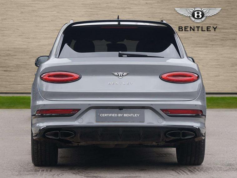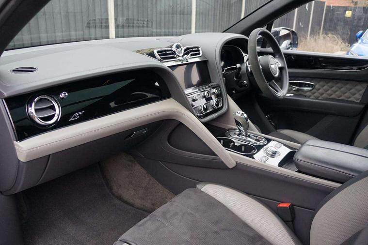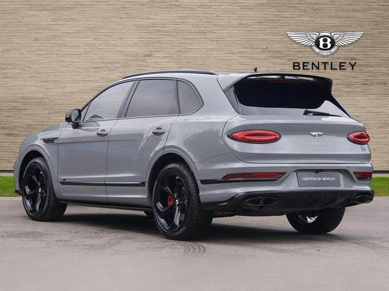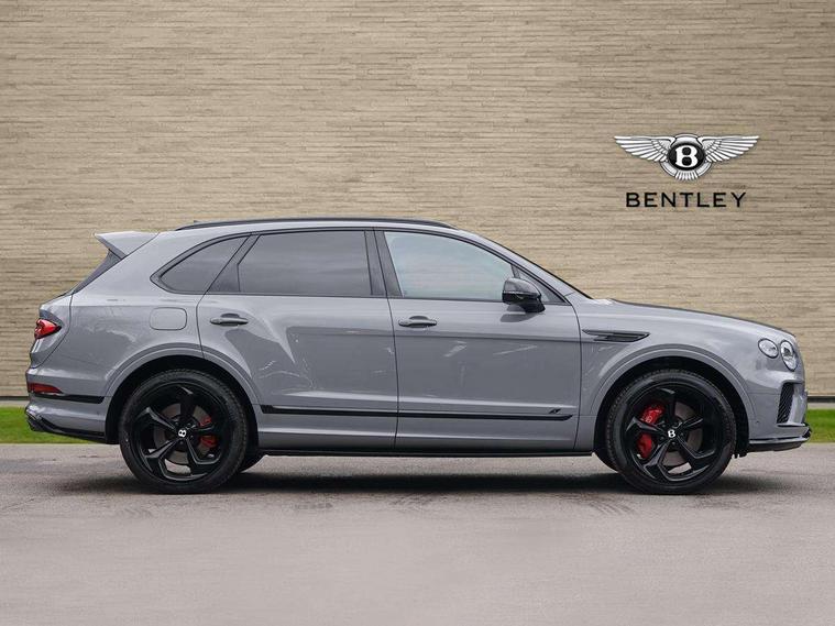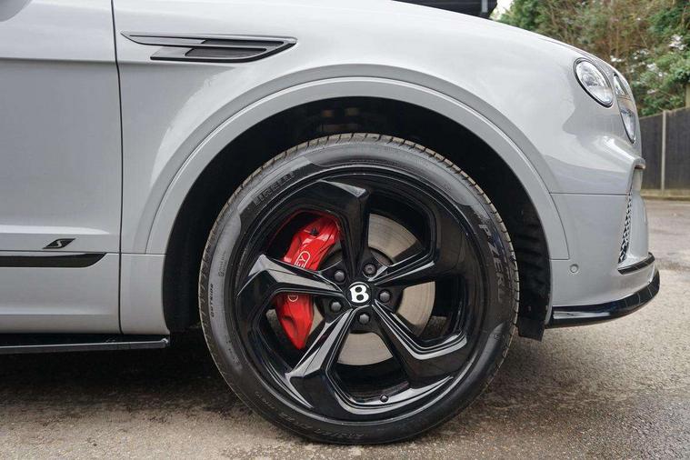 10.9" touch screen high resolution and configurable infotainment display and digital drivers information display, Advanced navigation function with text, search, 3D, satellite maps, speed limit, dynamic traffic route guide, telephone, Text-speech + voice, Bentley branded clock, Bentley GPS tracking system full fitment, Bentley safeguard, Blind spot assist, Bluetooth and WIFI enabled, Emergency services call system, Four drive dynamics modes (bentley, comfort, enhanced sport, custom), Front/rear park distance control, Hands free power tailgate, MMI Screen, My Bentley connected car services, Power latching to all doors for easy entry, Redesigned instrument panel lower trim rolls, incorporating a storage compartment on the passenger side, Seamlessly integrated technology with wireless apple car play and android auto, Speed sensitive variable ratio electric power steering, Sports driver information panel, Sports kombi graphics, Touch screen remote, Voice control system, Wireless phone charging compartment, Air suspension with continuous damping control, Bentley Dynamic ride, Permanent all wheel drive with centre torsen differential, Bluetooth audio streaming, 3rd brake light, Adaptive low beam, Auto dimming rear view mirror, Automatic headlights, Bentley badge in tailgate opening switch, Black door mirrors, Black painted shark fin aerial, Black side sills, Black speed style front and rear bumper, Body coloured front lower bumper apron panel, Body coloured lower bodywork - Standard paint range, Bumper design with large side intakes and sculptured surfaces, Clamshell rear tailgate design with Bentley lettering under the wings, Dark tinted front & rear lamps, Elec/heat/adj/fold door mirror+memory, Electric tilt/slide panoramic sunroof, Exterior S badge, Fender design reduces over bodied perception, Fixed rear spoiler, Front and rear fog lamps, Full LED supplementary lamps and tail lamps, Full matrix LED headlamps with high beam assist, Full width clamshell design and deeply contoured rear tailgate panel, Heated rear windscreen, Large dominant B shaped side wing vent front position, LED daytime running lights, Long fender vent above the power line on body side, Lower door side mouldings, Number plate aperture position under rear bumper, Oval split tailpipe, Phone antenna amplifier, Rain sensing wipers, Rear side wing doors, Rear wiper, S fascia badge, Self levelling wheel badge, Sports exhaust, Trailer sway mitigation, Tunnel detection for auto light control, V8 exterior badge, Wet arm wipers and heated water jets, 12V power in rear centre console, 12V socket in glovebox, 12V socket in luggage compartment, 3 seat bench in 2nd row, 4-Zone HVAC, Air Ioniser, Black (Beluga) boot carpet, Dinamica gear lever, Dinamica seats and dash, Electric tilt and reach adjustment steering column with memory and easy entry function, Electronic accessory preparation, Embroidered Bentley emblems, Foams and cover design on all seats, Folding luggage compartment cover, Front and rear cupholders, Indented steering wheel, Isofix attachments on outer rear seats, Key box, Load through facility, Lockable cooled glovebox, Luggage rails, Rear head restraints, Rear seat climate control, Rear seat massage function, Single front passenger seat, Stowage with instrument panel, doors (front and rear), armrests and console, Twin front armrests, Two metal bulls eye vents with organ stops and redesigned centre vents, Two type C USB ports front and rear, Unique S fluted seat colour combination with dinamica inserts, Veneered/carbon fibre centre fascia panel, Wing pockets for small items, Blackline Specification Pack - Bentayga, 3 rear seatbelts, ABS/EBD, Child safety lock, EDL, Electronic park brake with move-off assist, Electronic stability control, Electronic tyre pressure monitoring, ESP + MSR + ASR, Exit warning, Front and rear head airbags, Front and rear thorax airbag system, Front and rear ventilated brake disc, Front passenger airbag deactivation, Front seatbelt pretensioners with force limiters, Hill descent function, Hydraulic Brake Assist (HBA), Rear outer seatbelt pretensioners with force limiters, Rollover mitigation, Side airbags, Traction control, Immobiliser, Keyless entry, Keyless ignition, Preparation for vehicle tracking, Remote central locking, Volumetric anti theft alarm, 22" Summer tyres,