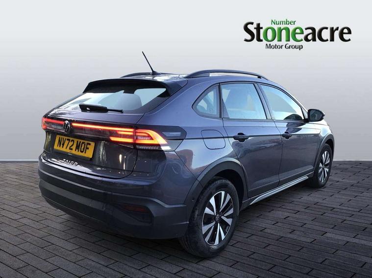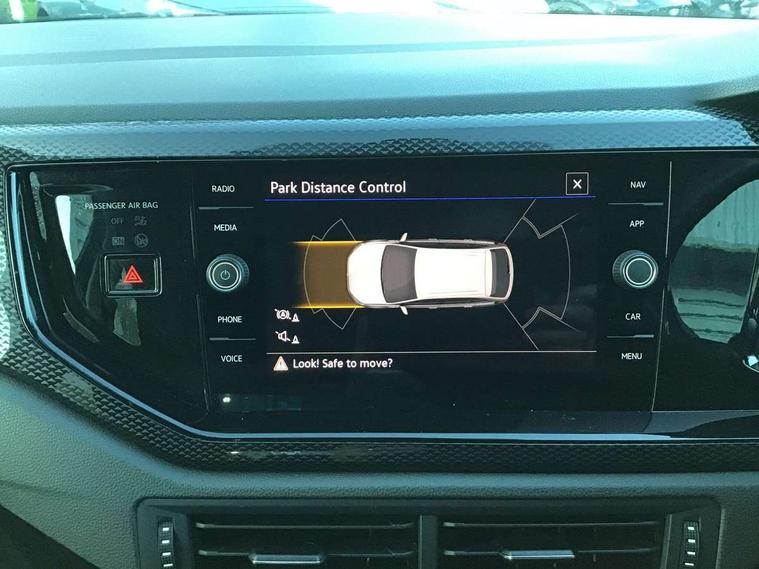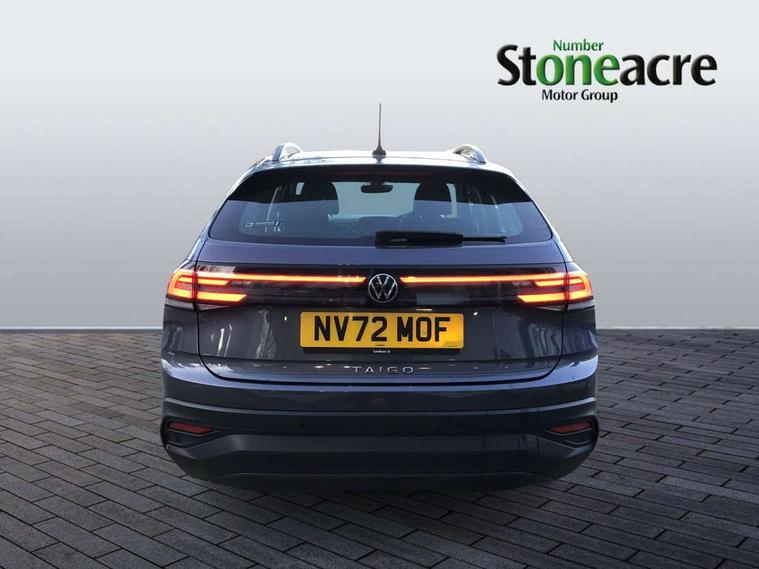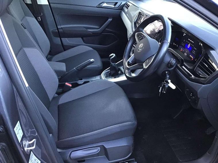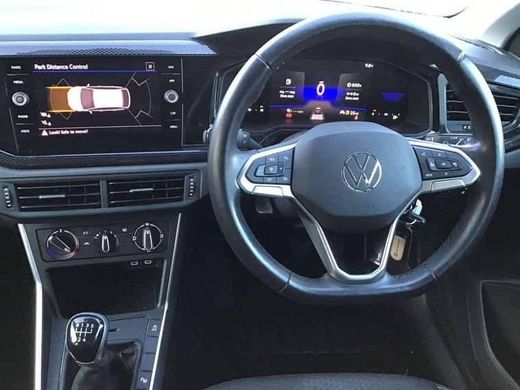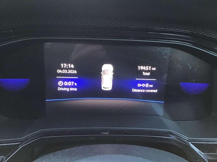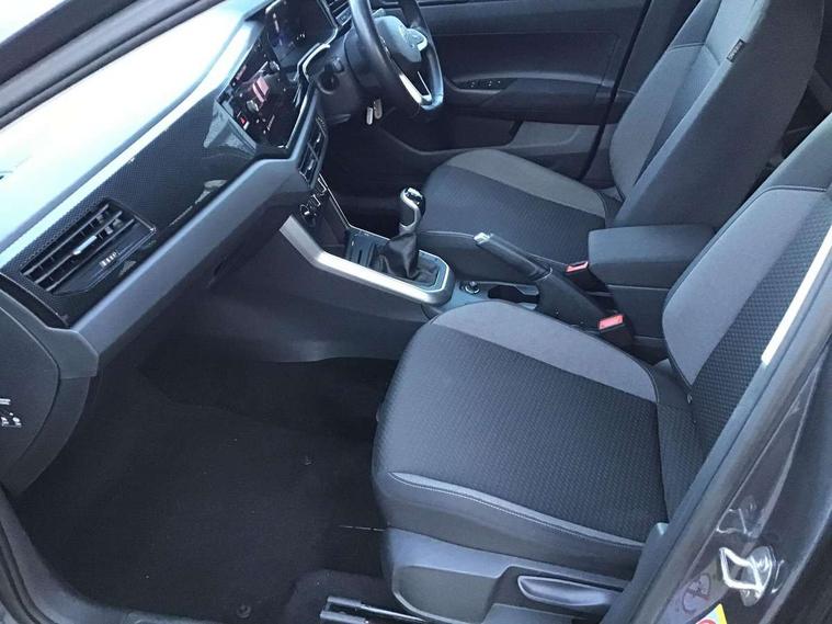 Driver alert system, e-Call (emergency call), Power Steering, Travel assist including emergency assist, Washer fluid level indicator, Wireless Charging including Bluetooth, Start-stop system with battery regeneration (recuperation - energy recovery during braking), WeConnect plus, Ambient lighting with logo projection, Aspherical driver's exterior mirror, Auto headlights, Body coloured bumpers, Body coloured exterior mirror housings and door handles, Electric windows, External USB type C socket and charging sockets, Front fog lamps with cornering function, Headlight range control, Heat insulating glass windscreen, LED headlamps, LED rear combination lamp, LED third brake light, Left convex exterior mirror, Power folding adjustable/heated exterior mirrors and front passenger exterior mirror lowering function, Rear fog light on one side, reversing light on both sides, Rear side wing doors, Rear wash/wipe with intermittent wipe setting, 'Slash/ Austin' Cloth upholstery, 12V socket in centre console, 2 front reading lights, 3 rear head restraints, 3 seat bench in 2nd row, Black carpets, Child seat anchor for child seat system i-Size, 2x top tether and child seat anchor in front on front passenger side, Door and side trim panels in titan black, Driver and front passenger seat height adjustment, Front centre armrest, Handbrake lever handle in leather, Height and reach adjustable steering wheel, Leather trimmed gear knob, Leather wrapped multifunction steering wheel, Luggage compartment floor, Luggage compartment light, Lumbar support for driver's and front passengers seat, Seat covers in titanium black, Single front passenger seat, Split folding backrest with centre armrest and unsplit rear seat bench, Storage compartment under front seats, Sun visors with illuminated vanity mirrors, Chrome Package - Taigo, Drivers assistance pack - Taigo, Light and Sight pack including High beam assist - Taigo, 2 x 3-point seatbelts/outer rear seats with ECE label, 3-point seat belts in front with pretensioner and height adjustment, 3-point seatbelt for centre rear seat, Driver and front passenger airbags with front passenger airbag de-activation, front side and curtain airbags, Driver and front passenger safety-optimised head restraints, Electronic stability control, Extended and predictive pedestrian/ cyclist protection, Front and rear disc brakes, Front curtain and side airbags with center airbag, Hill start assist, Manual rear child locks, Single tone horn, Tyre pressure loss indicator, Anti-theft alarm system with interior monitoring, backup horn, and towing protection, Anti-theft wheel bolts, Lava stone black gloss/matt decorative inserts in dash and front door panels, Low rolling resistance tyres,