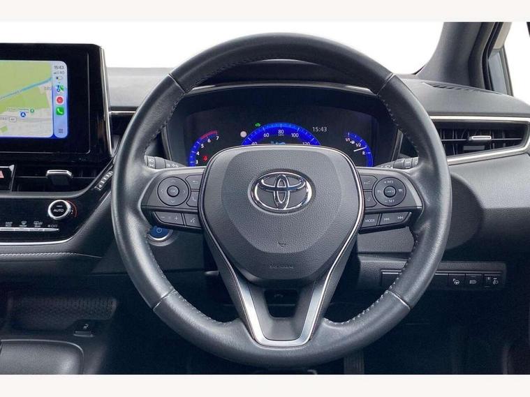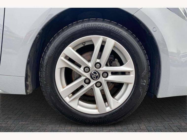 7" Multi information display screen, Bluetooth telephone connectivity, Connected car functionality upgrade, tracker, remote status and e-care, Dynamic radar cruise control (with RSA) including switch on steering wheel, E-call, Electrically assisted power steering, EV drive indicator, Lane Departure Alert (LDA) switch on steering wheel, Memory on adjustable speed limiter, Push button start, Reversing camera, Smartphone integration with Apple CarPlay and Android auto, Gasoline particulate filter, Vehicle Stability Control (VSC), 6 speakers, 8" Touchscreen with MM19 Multimedia system and voice recognition, AM/FM radio, DAB Digital radio, USB and Aux in connectors + 12V front outlet, USB charging port in centre storage box, Aluminium roof rails, Anti-jam protection on power windows, Auto up and down function on all power windows, Automatic headlights with high beam assist, Black metallic surround on lower front grille, Black toyota logo in front, Body colour rear spoiler, Body coloured bumpers, Body coloured door mirrors, Body coloured outside door handles, Follow me home headlights, LED daytime running lights, LED front fog lights, LED Headlights, LED High mounted stop light, Manual day/night rear view mirror, Noise reduction layer on front windows, Power adjustable heated door mirrors, Power front windows, Power rear windows, Rain sensor, Rear side wing doors, Rear window defogger, Rear window wiper, Shark fin antenna, Time adjustment on intermittent wiper, Turning signal integrated indicators in door mirrors, Unique lower skirt, Unique side rocker with black insert, UV-filter on driver and passenger windows, 12v power outlet - luggage side, 3 rear headrests, 3 seat bench in 2nd row, 3 spoke leather steering wheel + gear knob, 60/40 split folding rear seat, Adjustable speed limiter switch on steering wheel, Audio, multimedia and telephone switches on steering wheel, Boot light, Boot underfloor storage, Clean air filter, Driver and front passenger personal light, Driver and passenger assist grip, Driver and passenger sun visor with mirror and light, Dual sided deck board in boot, Dual zone automatic air conditioning with ECO mode switch, Fabric armrests, Front and rear cup and bottle holders, Front and rear door pockets, Front head restraints, Front passenger seat, Heated driver and front passenger seats, Illuminated entry system in room lamp, ISOFIX seat fixing (2 fixings on rear outer seats), Leather gear shift with satin chrome on gear shift console, Manual height adjustable for driver and front passenger seat, Passenger seat back pocket, Pollen filter, Power adjustable lumbar support on driver seat, Power window switches with satin chrome inserts, Quilted fabric upholstery with grey stitches seats, Rear armrest with 2 cupholders, Rear passenger air vents, Rear passenger coat hooks (2), Rear passenger personal lights, Retractable tonneau cover with luggage partition net, Satin chrome inside door handles, Shopping bag hooks in luggage compartment, Side storage in boot, Sliding armrest on centre console box, Slow opening glovebox with lights, Tilt/telescopic steering column, Tonneau cover with under floor storage, Voice recognition switch on steering wheel, Whiplash Injury Lessening (WIL) feature (active headrest) for seats, Toyota safety sense 2 pack - Corolla, 3x3 point rear seatbelts, Adjustable driver and front passenger seat belt extender to top anchor point, Anti lock braking system + Electronic brake force distribution, Brake assist function, Child locks on rear doors, Downhill Assist Control (DAC), Electronic parking brake, Emergency brake light signal (EBS), Front passenger airbag on/off switch, Front seatbelt reminder, HAC - Hill start assist control, Rear seat belt reminder, Seatbelt pretensioners and force limiters, Supplemental restraint system (SRS) 7 airbags - dual driver, dual side curtain, side impact and driver knee airbags, Traction control, Tyre pressure warning system, Acoustic vehicle alert system (AVAS), Alarm with motion sensor and immobilizer, Remote central locking + deadlocks, Satin chrome dash trim, Soft touch texture on upper dashboard, Stitching on lower dashboard, Space saver spare wheel, Unique wheel finish with red wheel cap,