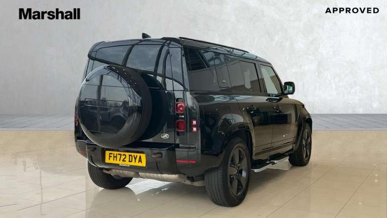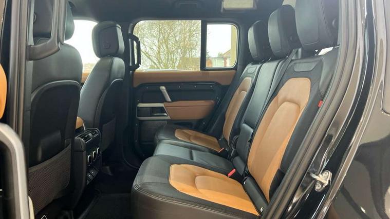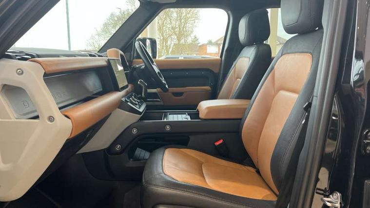 11.4" touchscreen, 360 degree parking aid, 3D Surround Camera with 360 View, 180 Rear View, Front Traffic Detection, Forward Vehicle Guidance, Tow Hitch Assist and clear sight Ground View, Adaptive cruise control, Android Auto, Apple CarPlay, Assisted tailgate with soft close, Blind spot assist, Bluetooth system, Brake pad wear indicator, Clear exit monitor, Connected navigation pro, Driver condition monitor, Electric power assisted steering (EPAS), Lane keep assist, Push button start, Rear collision monitor, Rear traffic monitor, Traffic sign recognition with adaptive speed limiter, Trip computer, Wade Sensing, 8 speed automatic transmission, All wheel drive system, Twin speed transfer box, DAB Radio (Digital Audio Broadcasting), Meridian 700w surround sound audio system with 15 speakers, Pivi pro connected, Automatic headlight levelling, Automatic headlights, Centre high mounted stop light, ClearSight interior rear view mirror, Electric heated/power fold door mirrors with approach lights and auto dimming driver side, Electric windows with one touch open/close and anti-trap, Follow me home lighting, Front fog lights, Heated rear window with timer, Heated windscreen, LED tail lights, Privacy glass, Puddle lights, Rain sensing windscreen wipers, Rear fog lights, Rear side wing doors, Rear wiper, Side hinged tailgate, Trailer stability assist, X-Dynamic badge, 12V power socket in loadspace, 14 way heated and cooled electric adjustable memory front seats with 4 way manual headrests, 2 seat bench in 3rd row, 3 seat bench in 2nd row, Air quality sensor, Alpine lights, Cabin Air Purification plus, Durable rubber cabin flooring, Durable rubber loadspace flooring, Electric reach + rake adjustable steering column, Extended leather upgrade, Footwell lights, Front passenger isofix child seat attachment, Heated steering wheel, Loadspace cover, Loadspace Hook, Multifunction steering wheel, Overhead stowage for sunglasses, Premium cabin lighting, Rear headrests, Rear ISOFIX, Rear reading lights, Single front passenger seat, Storage glovebox, Sunvisors with illuminated vanity mirrors, Twin front cupholders with cover, Online pack with data plan - Defender, 7 three point seatbelts, ABS, Brake hold function, Cornering brake control (CBC), Customer configurable autolock, DSC - Dynamic Stability Control, EBD - Electronic brakeforce distribution, Electric parking brake (EPB), Emergency brake assist, Emergency braking, ESP + traction control, Front airbags with passenger seat occupant detector, HDC - Hill descent control, Hill launch assist, Low traction launch, Power operated child locks, Remote for (e-Call, Optimised assistance call, InControl app, Climate, beep and flash and door), RSC - Roll stability control, Seat belt reminder, TPMS (Tyre pressure monitoring system), Alarm, Immobiliser, Intrusion sensor, Keyless entry, Locking wheel nuts,