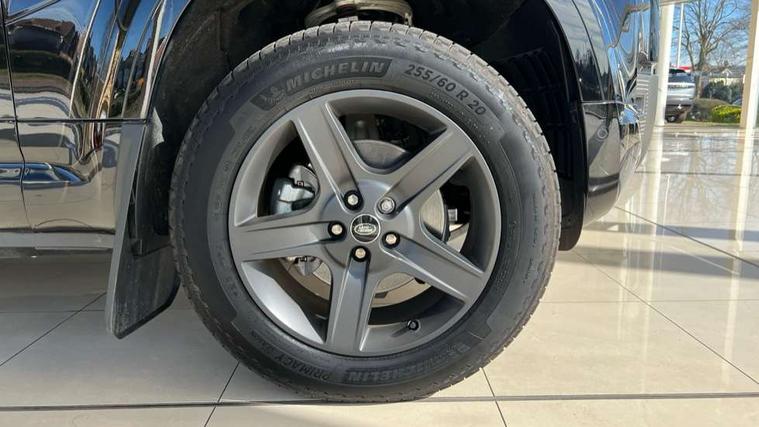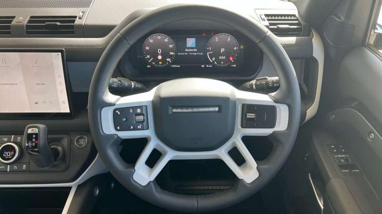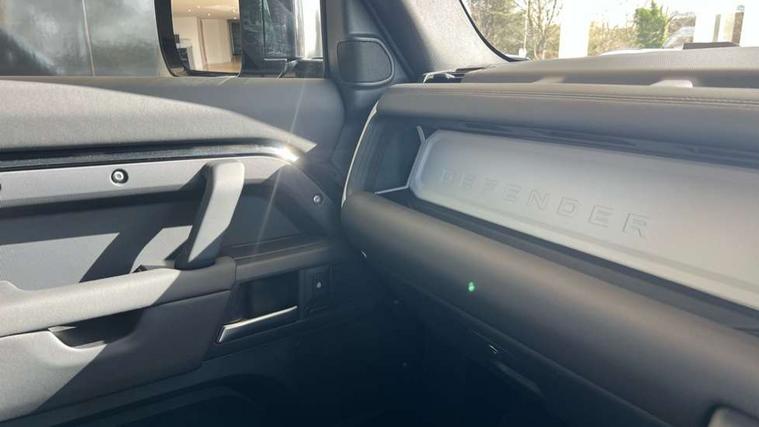 1 x USB-C (power only) & 1 x USB-C (power & data) in Row 1, 2 x USB-C in Row 2, 11.4" touchscreen, 360 degree parking aid, 3D Surround Camera with 360 View, 180 Rear View, Front Traffic Detection, Forward Vehicle Guidance, Tow Hitch Assist and clear sight Ground View, Adaptive cruise control, Android Auto, Apple CarPlay, Blind spot assist, Bluetooth system, Brake pad wear indicator, Clear exit monitor, Connected navigation pro, Driver condition monitor, Electric power assisted steering (EPAS), Interactive driver display, Lane keep assist, Push button start, Rear collision monitor, Rear traffic monitor, Traffic sign recognition with adaptive speed limiter, Trip computer, Wireless device charging, 8 speed automatic transmission, All wheel drive system, Twin speed transfer box, DAB Radio (Digital Audio Broadcasting), Meridian 400w sound audio system with 11 speakers and subwoofer, Pivi pro connected, Automatic headlight levelling, Automatic headlights, Black exposed rear recovery eyes, Body coloured bonnet, Centre high mounted stop light, Electric heated/power fold door mirrors with approach lights and auto dimming driver side, Electric windows with one touch open/close and anti-trap, Follow me home lighting, Heated rear window with timer, Heated windscreen, Illuminated metal treadplates with brand name script, LED tail lights, Panoramic rear side glass, Privacy glass, Puddle lights, Rain sensing windscreen wipers, Rear fog lights, Rear wiper, Side hinged tailgate, Standard tail door, Trailer stability assist, X-Dynamic badge, 12V power socket in loadspace, 3 seat bench in 2nd row, Alpine lights, Configurable cabin lighting, Durable rubber cabin flooring, Durable rubber loadspace flooring, Flat load space floor tray, Footwell lights, Front head restraints, Loadspace cover, Loadspace Hook, Multifunction steering wheel, Overhead stowage for sunglasses, Rear headrests, Rear ISOFIX, Rear reading lights, Single front passenger seat, Standard seat configuration, Storage glovebox, Sunvisors with illuminated vanity mirrors, Twin front cupholders, Non-smoker package, Online pack with data plan - Defender, 5 x 3 point seatbelts, ABS, Brake hold function, Cornering brake control (CBC), Customer configurable autolock, Driver and passenger airbags, DSC - Dynamic Stability Control, EBD - Electronic brakeforce distribution, Electric parking brake (EPB), Emergency brake assist, Emergency braking, ESP + traction control, Front airbags with passenger seat occupant detector, HDC - Hill descent control, Hill launch assist, Low traction launch, Remote for (e-Call, Optimised assistance call, InControl app, Climate, beep and flash and door), RSC - Roll stability control, Seat belt reminder, TPMS (Tyre pressure monitoring system), Alarm, Immobiliser, Intrusion sensor, Keyless entry, Locking wheel nuts, Secure tracker pro,