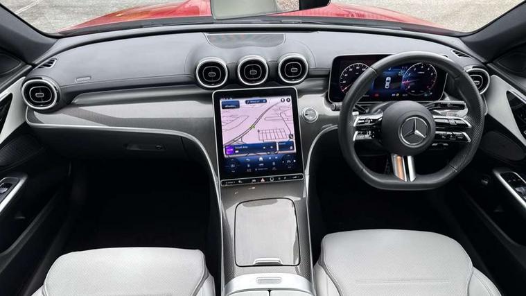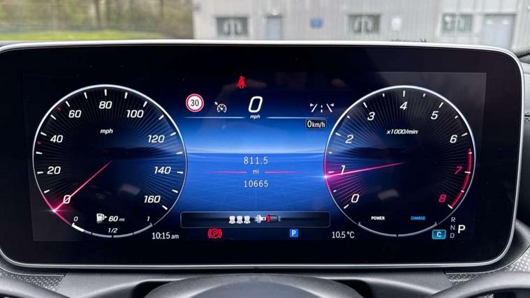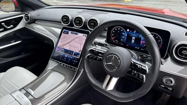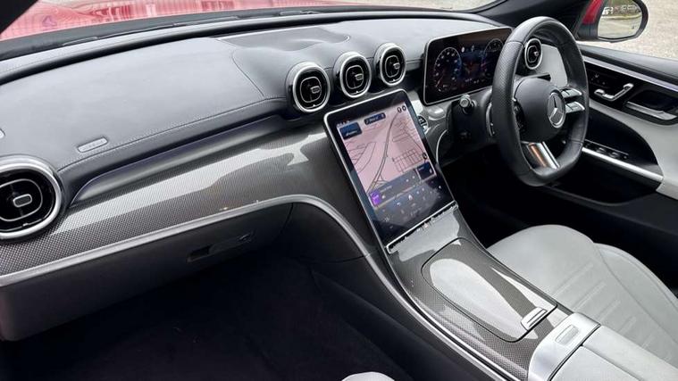 11.9" high resolution multimedia colour display, 12.3" digital instrument cluster display, Active blind spot assist, Active brake assist plus, Active lane keeping assist, AMG DYNAMIC SELECT with a choice of driving modes (Slippery, Comfort, Sport, Sport+, Individual), Attention assist, Cruise control with speedtronic variable speed limiter, E-call, Extended MBUX functions, Finger print sensor, Fluorescent jacket for driver, MBUX augmented reality for navigation, MBUX navigation premium, MBUX voice control activated by keywords "Hey Mercedes", Mercedes connect me, Mercedes me remote services, Outside temperature gauge, Pre-installation for digital key transfer, Remote boot release, Service indicator (ASSYST), Smartphone integration, Speed limit assist, Sports direct steer speed sensitive steering, Status display for rear seat belts in instrument cluster, Traffic sign assist, Wireless charging system for mobile devices, 66l fuel tank with increased capacity, 9G TRONIC 9 speed automatic transmission, Agility control sports suspension and lowered by 15 mm, Petrol Particulate Filter, Sporty engine sound system, DAB Digital radio, MBUX multimedia system, Adaptive brake lights, Adaptive high beam assist plus, AMG body styling front apron, rear apron and side skirts, AMG front bumper with sporty air intakes and chrome elements, AMG rear bumper with high gloss chrome elements, AMG side skirts in vehicle colour, B-pillar trim in glossy black, Body coloured bumpers, Body coloured door mirrors, Chrome beltline trim, Daytime running lights, Digital light LED headlamps, Electric windows with one touch opening/closing and obstruction sensors, Electrically adjustable and heated door mirrors, Green tinted glass, Heat insulating dark tinted glass, Illuminated front door sill panels, LED Indicators, LED tail lights, LED third brake light, Noise acoustic glass, Powerdomes on bonnet, Privacy glass, Radiator diamond grille with integrated Mercedes Benz star and louvre silver with chrome pins, Radio aerial integrated into rear window, Rain sensor with automatic windscreen wiper activation, Rear boot, Rear side wing doors, Two visible exhaust pipes integrated into rear bumper, 3 seat bench in 2nd row, 3 spoke flattened bottom AMG multifunction steering wheel in black nappa leather with chrome inserts and perforated leather in grip area, 40:20:40 split folding rear bench seat, AMG sports seats, Artico man-made leather upholstery, Audio and onboard settings control on multifunction steering wheel, Auto Mercedes-Benz child seat recognition sensor, Black air vents with silver chrome elements, Black floor mats with AMG lettering, Black roof liner, Door trim elements high gloss black with silver chrome surroundings and switches, Double cupholder in centre console, Electrically height/reach adjustable steering column, Folding rear seat backrest, Front and rear head restraints, Front centre armrest with storage compartment, Gearshift paddles on steering wheel, Heated front seats, Illuminated door sills with Mercedes Benz lettering, Illuminated glove compartment stowage, Interior lighting - 64 colour Ambient lighting, Overhead control unit in high gloss black, Rear top tether child seat ISOFIX attachment, Single front passenger seat, Sports pedals with stainless steel surfaces and rubber studs, Sunvisors with illuminated vanity mirrors, THERMATIC 2 zone automatic climate control, Interior lighting package - C Class, Memory package - C Class, Mirror pack - C Class, Parking package with 360 degree camera - C Class, Seat comfort pack - C Class, Stowage space pack - C Class, USB package - C Class, USB package plus - C Class, 3 rear 3 point seatbelts, Active bonnet pedestrian safety measure which detects an impact and raises bonnet, Adaptive brake system with HOLD function and brake drying in the wet, Anti-lock braking system (ABS), Black seat belts, Brake calipers with Mercedes-Benz lettering + perforated front brake discs, Child proof door locks, Drivers knee airbag, Drivers pelvis airbag, Dual stage driver/passenger airbags, Electric parking brake, Electronic Stability Programme (ESP), Front centre airbag between driver and front passenger seats, Front side airbags, Larger brake discs on front axle, Rear seatbelt warning indicator, Sports braking system, Tyre pressure monitoring system, Warning triangle and first aid kit, Window airbags for driver, front passenger and rear passenger, Central locking with interior switch, automatic locking and crash sensor with emergency opening function, Chrome surround in electric key, Dashcam, Keyless Go, URBAN GUARD vehicle protection (Thatcham Category 1) consisting of break-in, anti-theft alarm system (ATA), interior monitoring and tow-away protection, Artico man-made leather dashboard with contrast stitching, Centre console trim in metal weave, 19" AMG multi spoke light alloy wheels painted himalayas grey with high sheen finish, Noise reduced tyre with foam absorber, Summer tyres, TIREFIT with tyre inflation compressor,