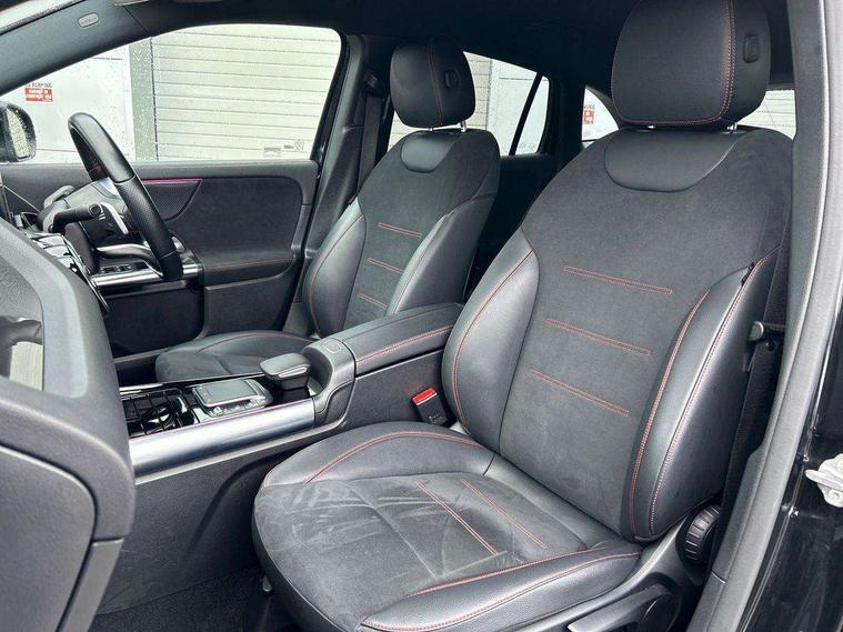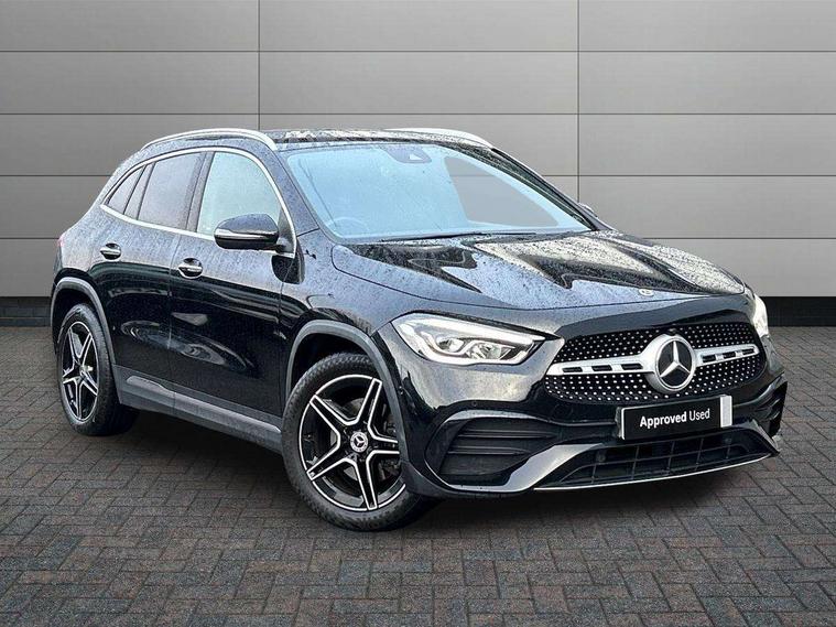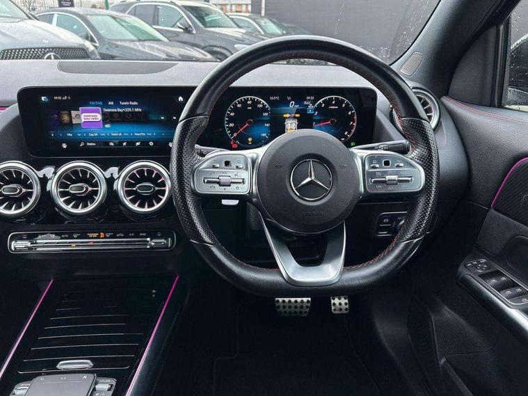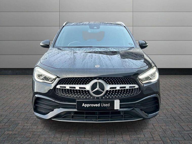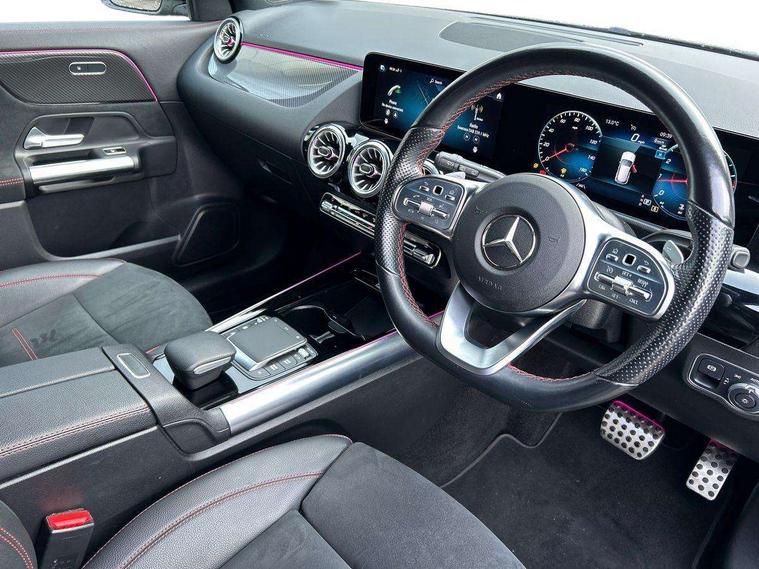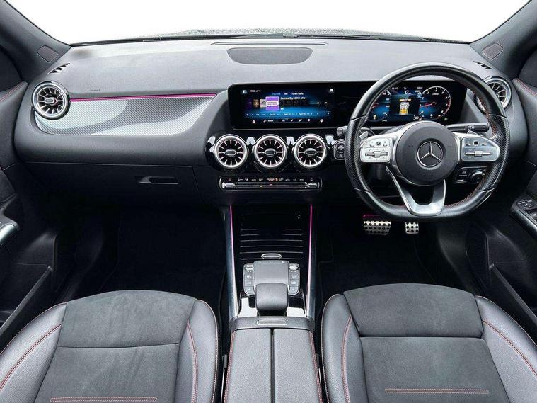 10.25 inch touchscreen central media display, 10.25" Digital instrument cluster display screen, Active lane keeping assist, Attention assist, Cruise control + speed limiter, Direct steering, DYNAMIC SELECT with a choice of driving modes (ECO, Comfort, Sport and Individual), ECO start/stop function, Fluid level warning indicator for fuel, oil, coolant and washer fluid, Hard-disk navigation, Hey Mercedes Voice activation, Lamp failure indicator, Mercedes me connect including emergency call system, accident recovery, breakdown and maintenance management, Mercedes me remote services, Multi function trip computer, Outside temperature gauge, Owners manual and service booklet in English, Pre-installation of private car share, Radio aerial integrated into front and rear windshields, Service indicator (ASSYST), Smartphone integration with Apple CarPlay and Android auto, Speed limit assist, Status display for rear seat belts in instrument cluster, Lowered comfort suspension, Rear axle multi-link, 2 USB ports (type C) in rear stowage compartment and one in front of center console, Bluetooth connectivity including audio streaming, DAB Digital radio, MBUX multimedia system, Media interface, Mercedes-Benz (225w) sound system with 10 speakers, Adaptive brake lights, Aerial for GPS, Aluminium roof rails, AMG front and rear apron, AMG specific/dual flow exhaust pipes in chrome (non-functional), Automatic headlamp activation, Beltline strips and weather strip in chrome, Black grained claddings with chrome parts, Body colour bumpers, Body colour door mirrors, Body coloured door handles with chrome insert for keyless entry, Car wash function, Dark privacy glass from B-pillar backwards, Electric front windows, Electric rear windows, Electrically adjustable and heated door mirrors with integrated LED indicators, Heated glass rear windscreen + timer control, Heated windscreen wash system, Interior mirror with black reading lamps and frameless, LED high performance headlamps with integrated LED daytime running lights, LED tail lights in two piece design, LED third brake light, Matt titanium grey front and rear apron trim, Pre-installation for trailer coupling, Rain sensor windscreen wipers, Rear fog lights, Rear side wing doors, Rear wiper, Roof spoiler, Single lamella raditor grille with chrome dotted diamond grille and inlay, 12V power socket in centre console, 3 seat bench in 2nd row, 3 spoke multifunction sports steering wheel in nappa leather with flattened bottom and perforated grip area, 40:20:40 split folding rear seat backrests, Adjustable head restraints, Air conditioning - Two zone thermotronic luxury automatic climate control with display, Ambient lighting in front headrests, AMG floor mats with AMG lettering in front, Artico man-made leather/Microfibre Dinamica upholstery with red contrast stitching, Auto Mercedes-Benz child seat recognition sensor, Black roof lining, Brushed door pulls in silver chrome, Courtesy light in boot, Front centre armrest with stowage, Galvanished gear shift paddles on steering wheel, Heated front seats, illuminated door sills with changeable cover, Illuminated glovebox, Interior lighting - 64 colour Ambient lighting, Leather trimmed gearknob, Luggage net on driver/front passenger seat backrest, Manually height and reach adjustable steering column, Multi-gesture touchpad control on center console, Single front passenger seat, Sports pedals in brushed stainless steel with black rubber studs, Sports seats, Stowage compartment in centre console, Stowage compartment with retractable cover, Sunvisors with illuminated vanity mirrors, Twin front cup holders, Two outer rear seat isofix and top tether child seat fixing points, AMG body styling pack - GLA, Comfort seat pack - GLA Class, Interior lighting with light and sight pack - GLA, Load compartment pack - GLA, Mirror pack - GLA Class, Parking pack - GLA, 3 rear 3 point seatbelts, ABS with Brake Assist, Active bonnet pedestrain safety measure which detects an impact and raises bonnet by 65mm, Active brake assist includes forward collision warning system with autonomous braking, Adaptive brake assist with hold function and hill start assist, Bonnet with power domes, Brake pad wear warning indicator, Childproof locks manually operated for rear doors and electrically operated for rear power windows, Crash responsive emergency lighting, Driver and passenger head and side airbags, Drivers knee airbag, Dual stage driver/passenger airbags, Electronic parking brake, ESP curve dynamic assist, ESP with ASR, Front and rear seatbelt reminder, Front brake callipers with Mercedes Benz logo lettering on front, Front brake discs internally ventilated and perforated, Front passenger seat occupancy sensor, Tyre pressure monitoring system, Warning triangle and first aid kit, Window airbags, Alarm system with immobiliser and interior protection -Thatcham category 1, Keyless Go starting function, Remote central locking and crash sensor with emergency opening function, Urban guard vehicle protection, Vehicle key with decorative surround in chrome, Carbon structure trim, Chrome air vent surrounds, 19" AMG 5 twin spoke light alloy wheels aerodynamically optimised painted in tantalite grey with a high sheen finish, Summer tyres, Tirefit tyre sealant kit,