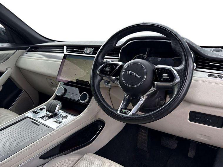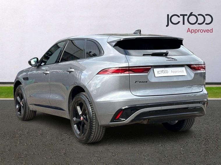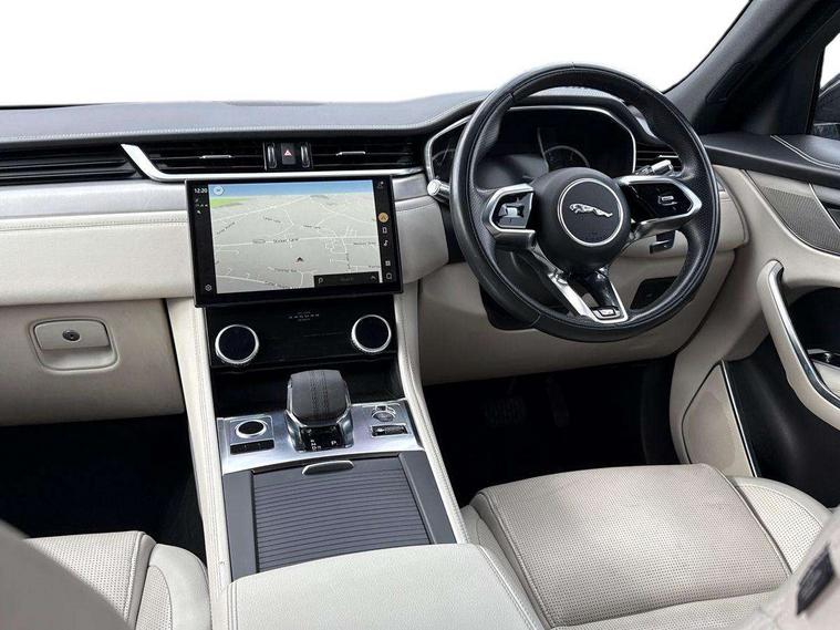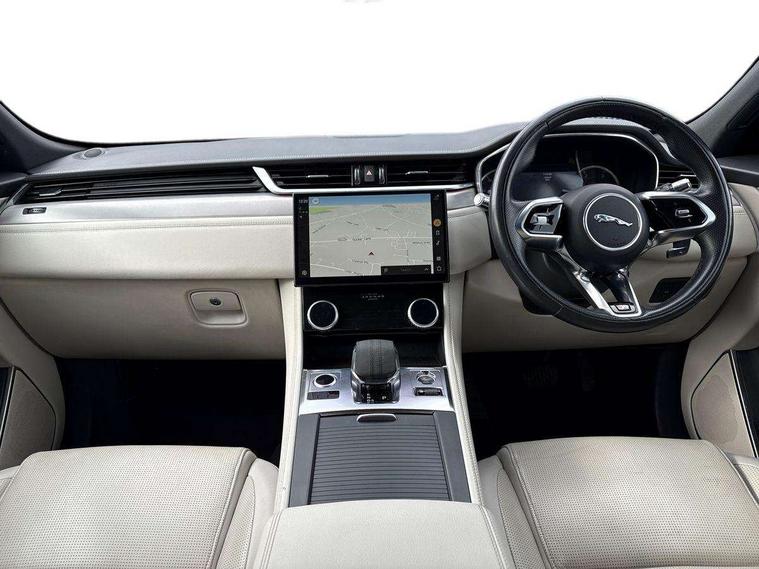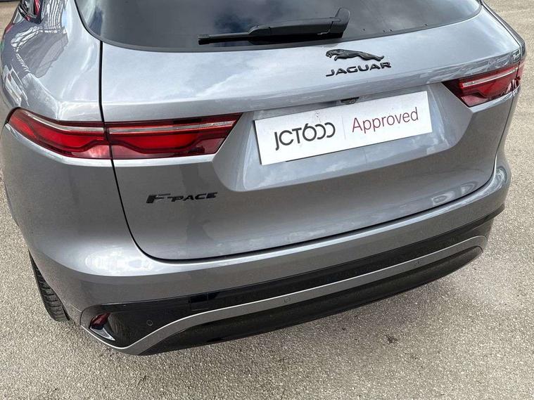 11.4" touchscreen, Android Auto, Apple car play, Bluetooth connectivity, Driver alert system, Driver condition monitor, eCall emergency call system, Eco driving style assistant, Electric power assisted steering, InControl remote, Jaguar Toggle shift selector, Lane departure warning system, Lane keep assist, Outside temperature gauge, Personalisation profile management, Pivi pro connected navigation system with app interface and media storage, Pro services and wifi hotspot, Push button starter, Service interval indicator, Speed proportional steering, Start up sequence with movement in dials and lighting, Traffic sign recognition with adaptive speed limiter, Trip computer, Voice control system, 8 speed automatic transmission, All terrain progress control, All Wheel Drive (AWD), Open differential with torque vectoring by braking, AM/FM radio, Bluetooth streaming, DAB Radio (Digital Audio Broadcasting), Dynamic volume control, InControl apps, InControl protect, iPod integration, 3 flash lane change indicators, Approach Illumination, Auto dimming rear view mirror, Automatic headlights, Body colour door mirrors, Electric windows with one touch open/close and anti trap, F-Pace and R Dynamic badge, Green tinted glass, Heated front windscreen + heated washer jets, Heated rear window with timer, Jaguar script and leaper, LED High level third brake light, LED tail lights, Non acoustic front windscreen, R Dynamic badge on side door, Rain sensor windscreen wipers, Rear fog lights, Rear metal tread plates, Rear side wing doors, Rear wiper, Trailer stability assist, Variable front intermittent wipers, 12V power point front, 3 rear headrests, 3 seat bench in 2nd row, Air distribution speed, Centre armrest console, Centre console with side storage, Deletion loadspace storage rails, Door sill tread plates, Fold flat front seats, Front centre armrest with storage compartment, Front door storage space, Glovebox finisher with jaguar script, Heated steering wheel, Hooks in loadspace, Illuminated glovebox, Interior front door handles with separate locking switches, ISOFIX on outer rear seats, Jaguar sense, Luggage tie downs in loadspace, Mist sensing, Multifunction steering wheel, Overhead lighting console, Overhead stowage for sunglasses, Passive front head restraints, Premium carpet mats, R-Dynamic branded leather steering wheel, Rear air vents, Rear armrest with twin cupholders, Rear centre headrest, Rear door storage space, Reversible boot floor, Satin chrome gearshift paddles, Shopping bag hook, Single front passenger seat, Sunvisors with illuminated vanity mirrors, Twin front cupholders with cover, Online Pack with data plan - F-Pace, 355mm front brakes and 325mm rear brakes, 3x3 point rear seatbelts, ABS, All surface progress control (ASPC), Brake pad warning light, DSC - Dynamic Stability Control, Electric parking brake (EPB), Emergency brake assist, Front airbags with passenger seat occupant detector, Front and rear seatbelt reminder, Front side airbags, Full length side window curtain airbag, Hill launch assist, Power operated child locks, Torque vectoring brake, Traction control, Tyre pressure monitoring system, Immobiliser, Keyless start, Locking wheel nuts, Perimeter alarm, Remote central locking, Valet mode,