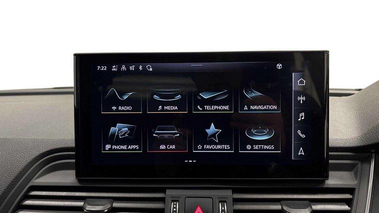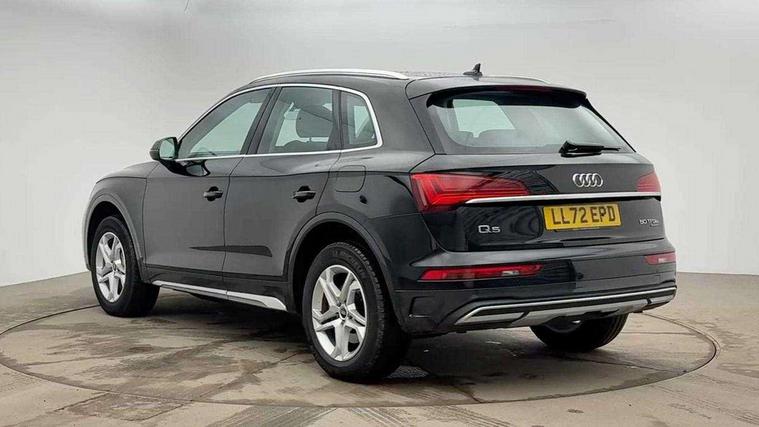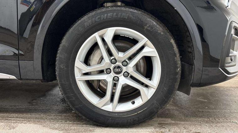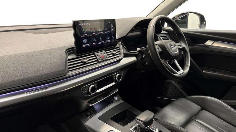 Audi connect safety and service (e-call), Audi connect with Amazon Alexa Integration, Audi drive select, Audi virtual cockpit plus with 12.3" screen and three different layout designs, Audi wireless smartphone interface, Automatic start-stop system with coasting functionality and efficiency programme, Bluetooth interface, Cruise control + speed limiter, Electro - mechanical power assisted steering, MMI navigation plus with 10.1" touch screen, Power tailgate, Reversing camera, Service interval indicator, Voice control system with Audi hotword activation "Hey Audi", 3 pin 10 amp domestic charging cable, 7.4 kW onboard charger, Dynamic suspension, Quattro on demand, Type 2 mode 3 22kW 32 amp charging cable, Type 2 socket for AC charging, 2 x USB charging port with aux input socket, DAB Digital radio, 3rd brake light, Acoustic windscreen, Air inlets in matt titanium black with blades in matt aluminium silver, Aluminium roof rails, Auto dimming door mirrors, Auto dimming rear view mirror, Automatic headlight adjustment, Automatic headlights and windscreen wipers, Body colour bumpers, Body colour door mirrors, Chrome plated exhaust trims, Daytime running lights, Door sills in Selenite silver, Electric adjustable/heated/folding door mirrors, Front and rear electric windows, LED headlights and LED tail lights, Lower bumpers painted in contrast Manhattan grey, Matt selenite silver underbody protection, Matt twilight grey radiator grille with chrome vertical struts, Rear chrome trim strip below lights, Rear diffuser strip in selenite silver, Rear side wing doors, Rear spoiler, Rear wiper, Roof bars, 3 rear headrests, 3 spoke multifunction leather steering wheel with shift paddles, 40:20:40 split folding 3 rear bench seat in 2nd row with rear centre armrest, Comfort front centre armrest, Deluxe 3 zone electronic climate control, Door sills trims with aluminium inlays, Front/rear floor mats, Heated front seats, Height adjustable front head restraints, Height/reach adjustable steering column, ISOFIX child seat mounting and top tether, Luggage compartment cover, Manual seat adjustment with 4-way electric lumbar support, Rear seat bench plus, Silver cloth headlining, Single front passenger seat, Sunvisors with vanity mirrors, Trunk roller cover, Twin leather upholstery + front sports seats, High gloss pack - Q5, LED interior light pack - Q5, 3 point seatbelts on all seats, 6 airbags - Driver, front passenger, curtain and side airbags, Electrically operated child locks on rear doors, Electromechanical parking brake, Electronic stabilisation control including ABS, ASR and EDL, Front passenger airbag deactivation, Hill descent control, Hill hold assist, Multi collision brake assist, Pop-up bonnet for pedestrian protection, Pre sense city, Seat belt force limiter, Seatbelt monitoring, Tyre pressure warning, Warning triangle and first aid kit, Anti theft alarm, Anti-theft wheel bolts, Keyless Go access/ignition system, Remote central locking, Aluminium rhombus inlay, 18" 5 twin spoke dynamic design alloy wheels, Tool kit, Tyre repair kit,