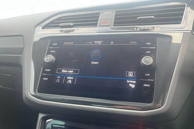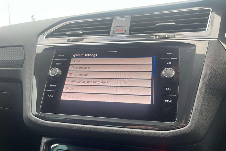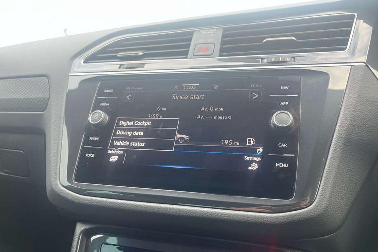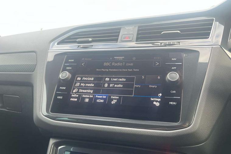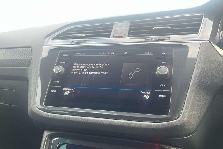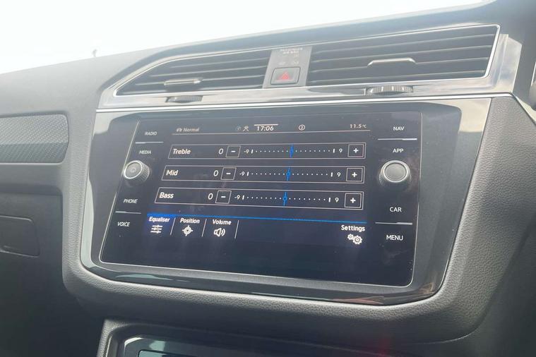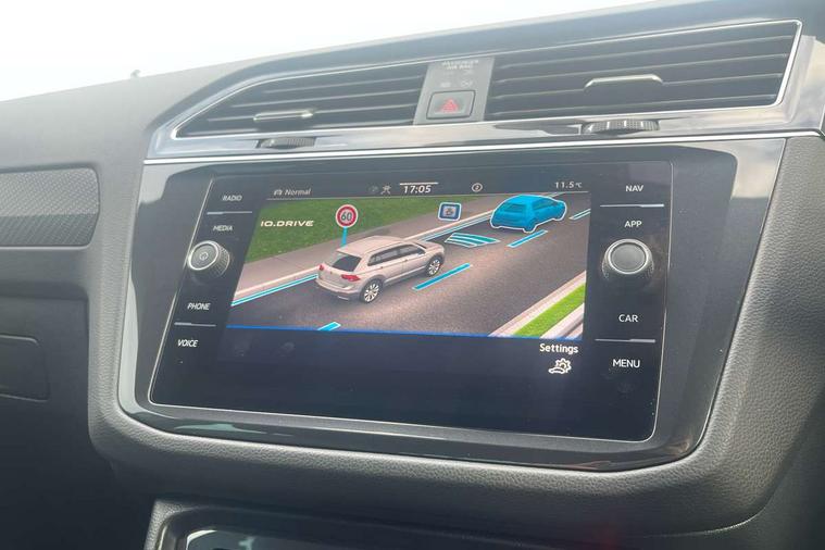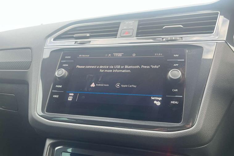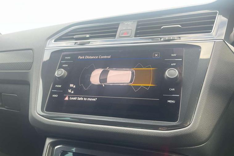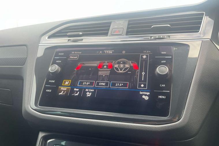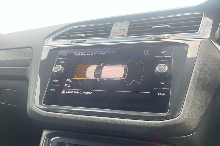 Adaptive cruise control ACC stop and go including speed limiter, App-Connect incl. App-Connect Wireless for Apple CarPlay and Android Auto, Bluetooth phone integration system, Comfort drive travel assist, Digital cockpit pro, Driver alert system, Driver profile selection, Dynamic road sign display, eCall emergency call system, Electromechanical speed sensitive power steering, Emergency assist, Front and rear parking distance sensors, Instrument cluster mph speedometer Great Britain, Lane keeping system Lane Assist, Lights on warning, Multifunction front facing camera, Outside temperature display, Premium multifunction display with multi colour display, Rev counter, Service interval indicator, Speed limit display, Start/stop system with regenerative braking, Trip computer, Warning sound and light for doors and tailgate open, Battery regeneration during braking, Digital radio reception DAB+, Diversity antenna for FM reception, Radio, Auto dimming interior rear view mirror, Automatic headlight control system, Body colored bumpers in R-Line style, Body colored exterior mirror housings, Body colour door handles, Chrome moldings on the side windows, Coming/leaving home lighting function, Dynamic headlight range control, Front and rear electric windows, Heated rear window, High level 3rd brake light, Laminated safety glass windshield, heat and sound insulating, LED rear combination lamps, LED rear number plate lights, License plate carrier in front and rear, Poor weather light and cornering light, Privacy glass for rear side windows and rear window, R Line body kit, R Line side sills, Rain sensor, Rear exhaust tailpipe, Rear fog lamp, Rear side wing doors, Rear spoiler in R style, Rear windscreen washer and wiper with interval delay, Side and rear windows in heat insulating glass, Trailer Stability Programme, Unique R Line badging, Windscreen wipers/ intermittent wipe + 4 position delay, 12V outlet in center console rear and in luggage compartment, 12V outlet in front and tray, 2 LED front reading lights, 2 LED rear reading lights, 3 bench rear seats in 2nd row, 3 rear headrests, Air Care Climatronic 3 zone automatic climate control with enhanced air filter and controls in the rear, Backrest release for left front seat, Black headlining, Brushed stainless steel pedals and footrest, Carpet mats in front and rear with decorative stitching in Gray, Climate control unit rear with touch function, Door and side trim panel in foam film, insert in leatherette, Front footwell illumination, Front scuff plates in aluminum with R-Line logo, Front seats head restraints (x-adjustment), Height/reach adjust steering wheel, Isofix Preparation 2 Rear child seats, Leather gear knob, Rear bench seat asymetrically split folding, longitudinally movable and folding with load-through hatch and center armrest, Remote unlocking for rear seat backrest, Single front passenger seat, Sun visors with illuminated vanity mirrors, Driver assistance pack plus - Tiguan DSG, 3 point seat belt for centre rear seats, 3 point seat belts with seat belt pretensioners for the outer rear seats, Curtain airbags for front and rear passengers, Driver/Front Passenger airbags, Drivers knee airbag, Electronic parking brake with auto hold, Electronic Stability Control with driver steering recommendation, ABS, ASR, EDL, EDTC and trailer stabilization, Front assist with autonomous emergency braking (for Adaptive Cruise Control ACC up to 130 mph), Front disc brakes, Front passenger airbag deactivation, Front side airbags, Height adjustable front 3 point seatbelts + pretensioners, Manual child proof rear door locks, Pedestrian monitoring system, Proactive passenger protection system in combination with front assist, Rear disc brakes, Two tone horn, Warning sound and light for front seat belts if unfastened, Warning triangle, Anti theft alarm system with interior monitoring, backup horn and towing protection, Anti theft wheel bolts, Electronic engine immobiliser, Chrome elements on the mirror switch power window switches and door pulls, Decorative inserts Carbon Gray for dashboard and front door trim panels, Interior door handle in matte chrome, Tool kit,