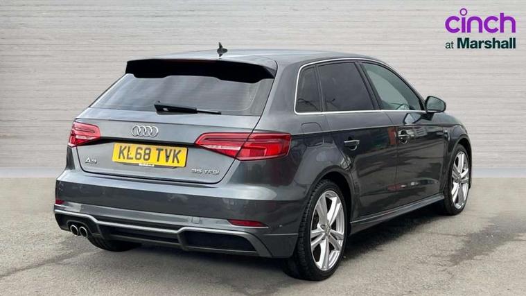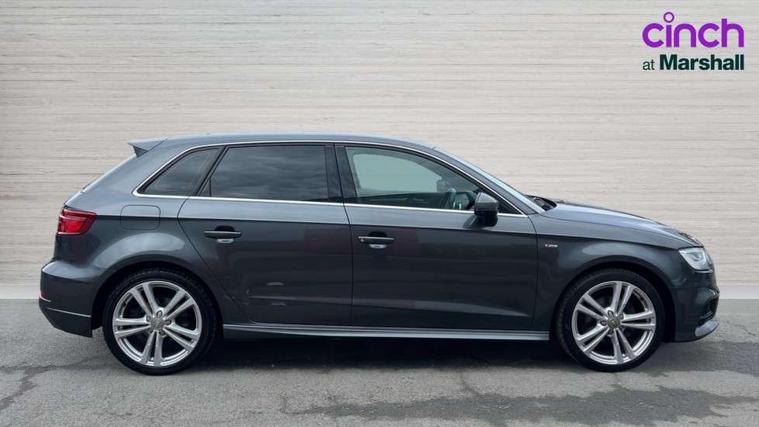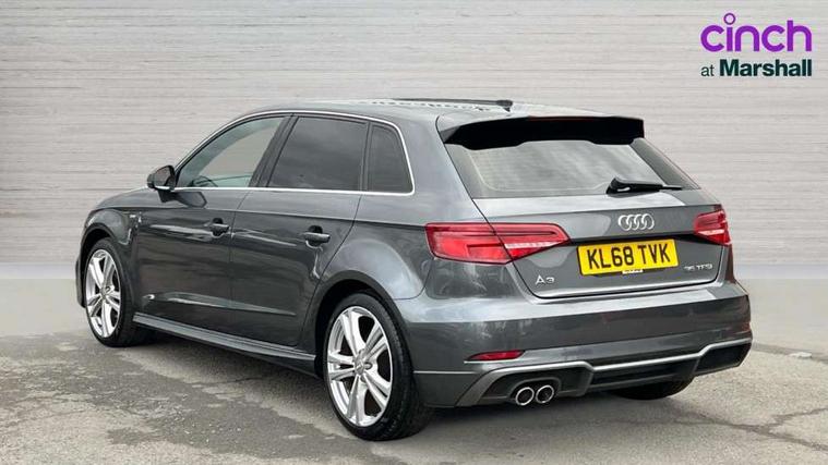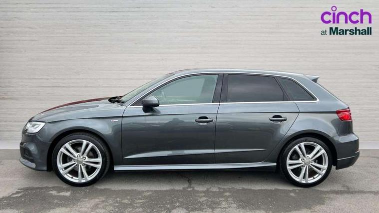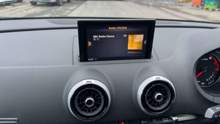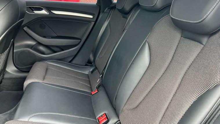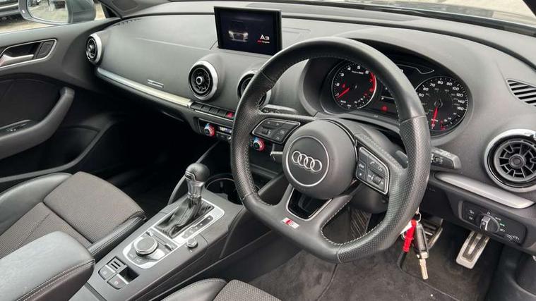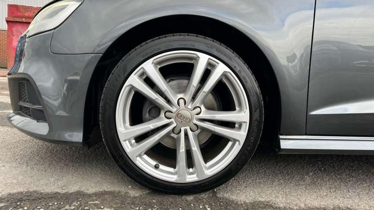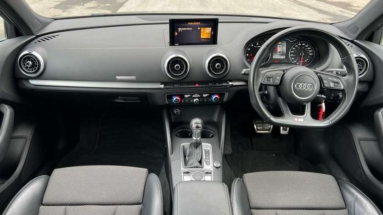 Audi connect, Audi drive select, Audi smartphone interface, Automatic start/stop system, Colour driver's information system display, Electro - mechanical power assisted steering, Mobile telephone preparation - bluetooth interface, SD card based satellite navigation system, Service interval indicator, Speed limit display, Voice control system, Voice recognition for navigation system, 2 USB interfaces and Aux-In jack, Audi music interface, CD player, DAB Digital radio, MMI radio plus with 7" colour MMI screen and MMI controller, Aluminium window trim, Auto dimming rear view mirror with light and rain sensors, Body colour door mirrors, Chrome exhaust tailpipes, Electric front windows, Electric rear windows, Electrically adjustable and heated door mirrors with integrated LED side indicators, Heated windscreen washer jets, LED daytime running lights, Matt black radiator grille, Rear wiper, S line badges on front wings, S Line body styling with front & rear bumpers and side skirts, radiator grille and rear diffuser insert, roof spoiler, Sport specific side air inlet grille and diffuser insert, 3 adjustable rear headrests, 4 lashing points to secure luggage, Adjustable front centre armrest, Black cloth headlining, Dual zone electronic climate control, Front and rear interior lights with delay, Front/rear floor mats, Glovebox light, Height and reach adjustable steering wheel, Illuminated door sill trims with S logo, Isofix child seat preparation for front passenger/outer rear seats inc passenger airbag deactivation, Stainless steel pedals, Storage compartments in doors side trims, centre console and under front drivers seat, LED interior light pack - A3/RS3, Non smoking pack - A3, Storage and luggage pack - A3/RS3, 3 point seatbelts on all seats, ABS/EBD, Active bonnet, Active front headrests, Airbags - front driver/passenger, front & rear side, curtain, drivers knee, ASR, EDL, Electromechanical parking brake, ESC - Electronic Stability Control + traction control, Front passenger airbag deactivation, Hill hold assist, Manual rear child locks, Multi-Collision braking, Seatbelt warning, Tyre pressure warning, Warning triangle and first aid kit, Anti theft alarm, Anti-theft wheel bolts, Remote control central locking, Thatcham category 1 alarm + immobiliser, Aluminium air vent surrounds, Aluminium trim elements, Matt brushed aluminium inlays, Tool kit, Tyre repair kit,