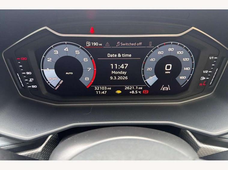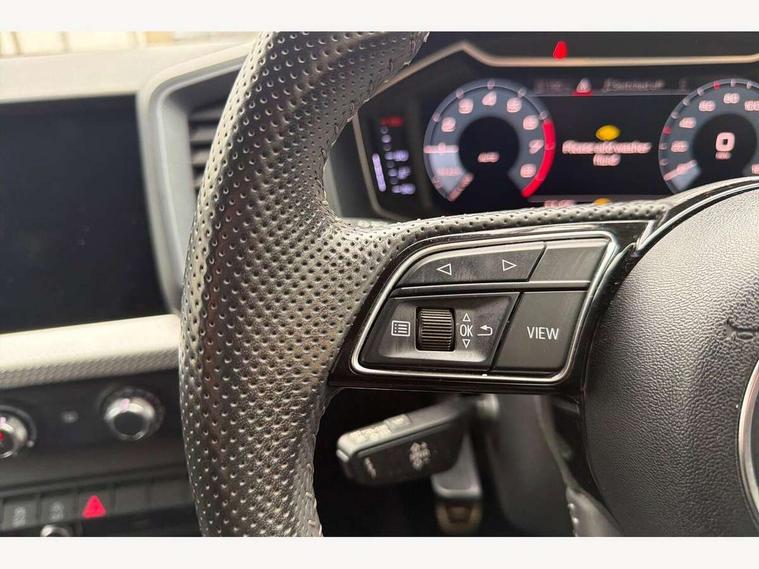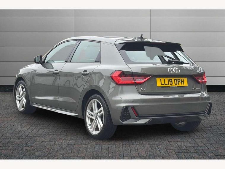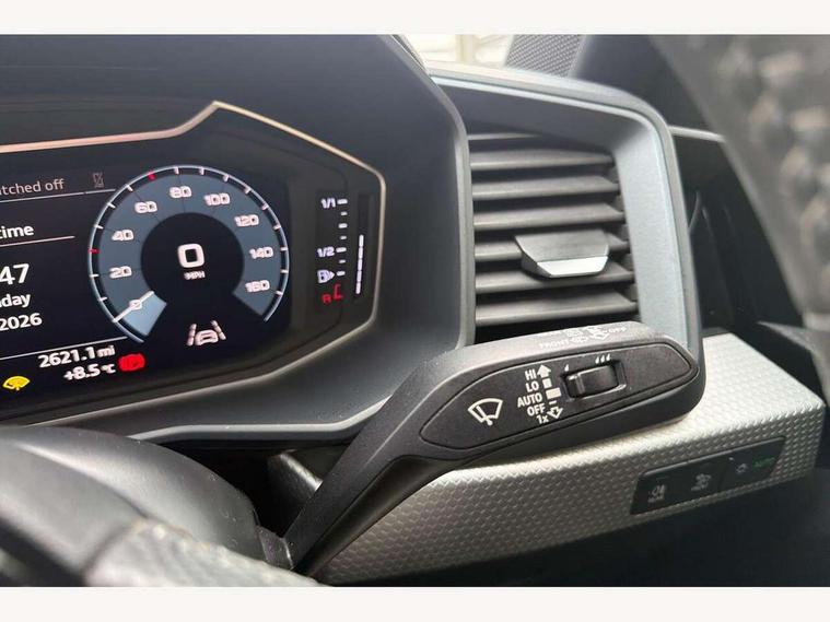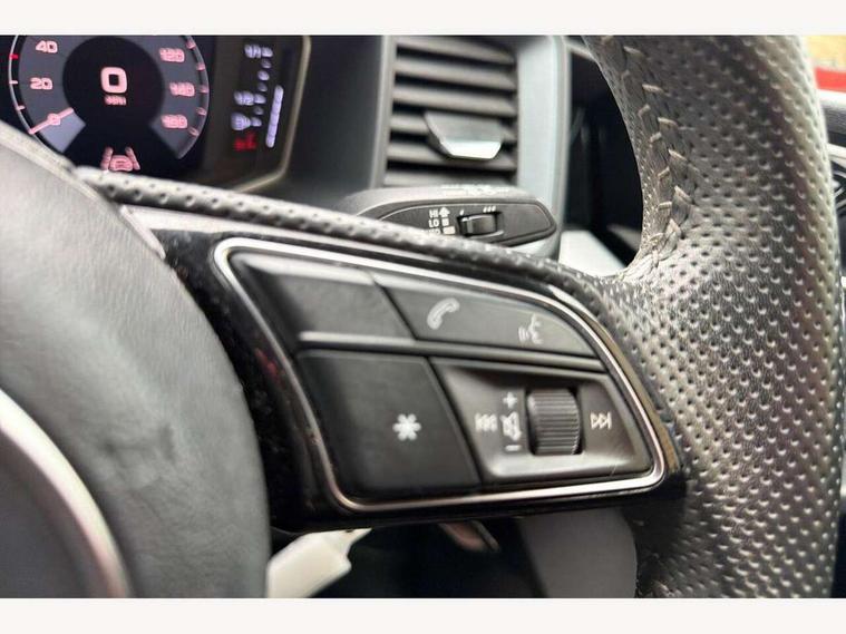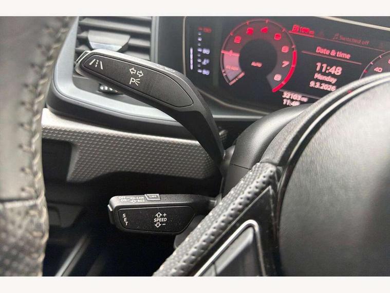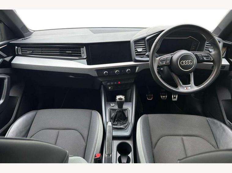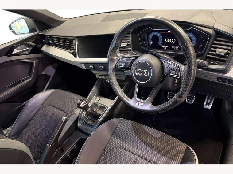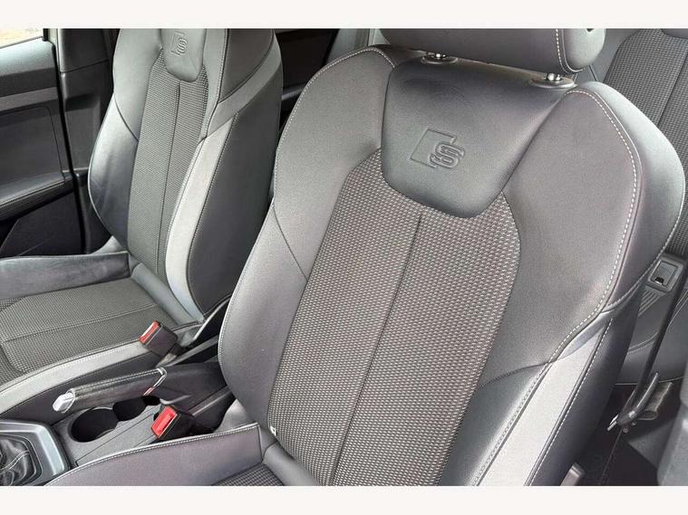 10.25" Digital instrument cluster display screen, Audi connect safety emergency and service including E-call, Audi drive select, Audi smartphone interface, Automatic start/stop system, Bluetooth interface, Driver's information system, Electromechanical power steering, Lane departure warning system, Service interval indicator, Speed limiter, Voice control system, Washer fluid level indicator, Sports suspension, 1 x SDXC card reader, 1 x USB type C and 1 USB type A charging points, Audi music interface, Bluetooth audio streaming, DAB Digital radio, MMI radio plus with 8.8" colour MMI display screen and MMI touch, Auto dimming rear view mirror, Body colour side sill mouldings, Body coloured bumpers, Body coloured door mirrors, Door sills with aluminium inlays and S Line logo, Electric front and rear windows, Front side air inlets in grained matt black and C frame in titanium black, Heat insulating glass windscreen and side windows, Heated rear windscreen, LED headlights with LED rear lights + dynamic rear indicators, Matt aluminium silver tailpipe trim, Matt black radiator grille frame, Matt platinum grey in front spoiler clip and rear diffuser clip, Rain and light sensors, Rear fog lights, Rear wiper, S line badges on front wings, S line exterior bumpers, S line roof spoiler, Side air inlet frames titanium black, Side front spoiler lips in grained matt black, 12V socket in centre console with two cup holders, 3 rear seats, Black cloth headlining, Driver and passenger seat with manual height adjust with forward and backwards adjustment, Front and rear black floor mats with contrast stitching in fine silver, Front head restraints, Height and reach adjustable steering wheel, ISOFIX child seat mounting in front passenger and rear outer seats, Leather gear knob with aluminium trim, Leatherette handbrake grip, Luggage compartment light with front and rear reading lights, Lumbar adjustment for front seats, Rear head restraints, Split folding rear seats, Stainless steel pedals, 3x3 point rear seatbelts, Audi pre-sense front with pedestrain and cyclist recognition, Brake assist function, Driver and front passenger airbag with front side and head airbags, Electronic Stability Control including ABS, EBD, ASR and EDL, Front and rear seatbelt reminder, Front passenger airbag deactivation switch, Hill hold assist, Seatbelt height adjustment for front seats, Seatbelt monitoring, Tyre pressure warning light, Warning triangle and first aid kit, Anti theft alarm, Anti theft wheel bolts and loose wheel warning, Immobiliser, Remote central locking with 2 remote folding keys, Aluminium trim for control switches, air vents and digital instrument cluster, Silver grey inlays polygon structure in diamond paint finish, Structured grey accent areas including air vents, door handle recesses and centre console in quartz paint finish,