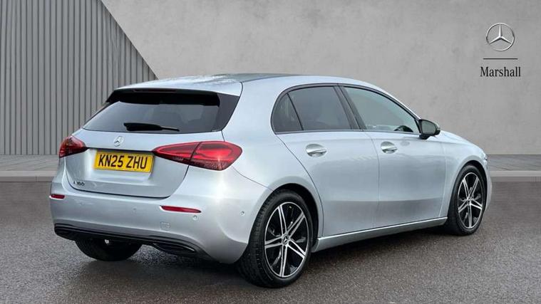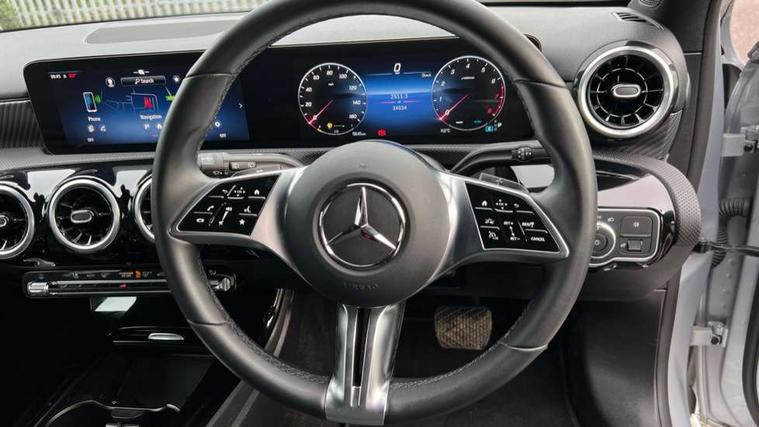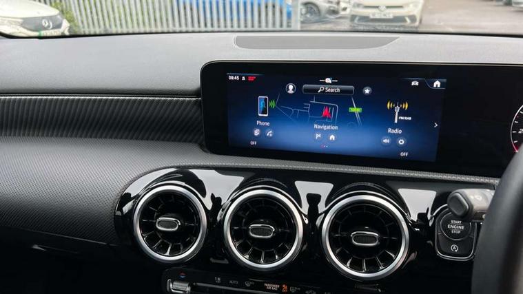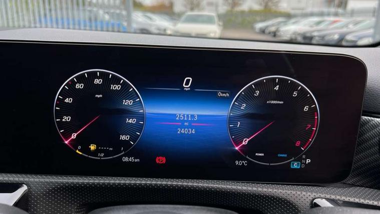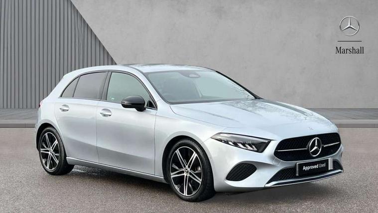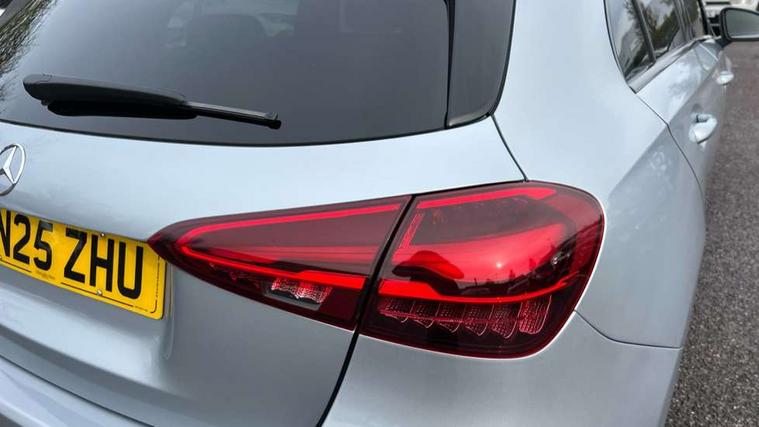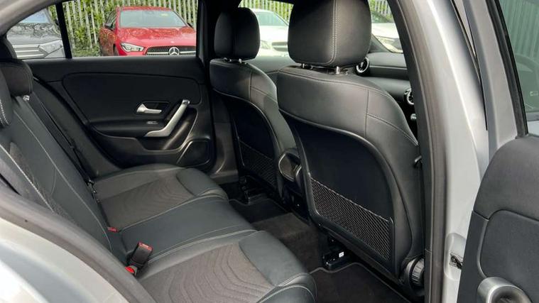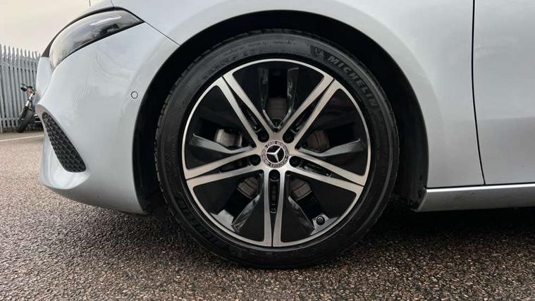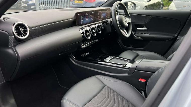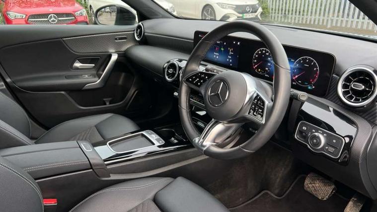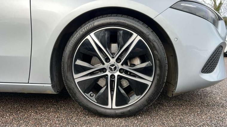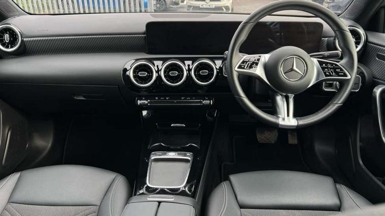 10.25 inch touchscreen central media display, 10.25" Digital instrument cluster display screen, Attention assist, Brake pad wear indicator warning light, Car wash mode, Cruise control + speed limiter, Direct steering, Direction indicators with lane change function, Dual bluetooth interfaces, DYNAMIC SELECT with a choice of driving modes (ECO, Comfort, Sport and Individual), ECO start/stop function, Engine start/stop button, Fluid level warning indicator for fuel, oil, coolant and washer fluid, Fluorescent jacket for driver, Hard-disk navigation, Hey Mercedes Voice activation, Lamp failure indicator, Lane keeping system, Mercedes me connect including emergency call system, accident recovery, breakdown and maintenance management, Mercedes me remote services, Outside temperature gauge, Owners manual in English, Pre-installation of private car share, Preinstallation for Mercedes Benz link, Remote boot closing, Service indicator (ASSYST), Smartphone integration with Apple CarPlay and Android auto, Speed limit assist, Speed sensitive power steering, Tailgate, Trip computer in multifunction display with current consumption indicator, Lowered comfort suspension, DAB Digital radio, MBUX multimedia system, Mercedes Benz sound system (100 W) with 6 speakers, 4 Electric Front and Rear windows, Adaptive brake lights, Body colour bumpers, Body colour door handles with chrome inserts, Body colour side skirt, Chrome beltline strips, Diamond radiator grille with pins in fine star pattern, Electric adjustable and heated door mirrors with integrated LED side indicators, Exhaust system with 2 visible tailpipe trim elements and rear apron, Headlamp assist automatic headlamp activation, Heated glass rear windscreen + timer control, LED High level third brake light, LED High Performance headlamps including integral LED daytime running lamps and adaptive highbeam assist, LED tail lamp, Privacy glass, Radio aerial, Rain sensing windscreen wipers with two sensitivity settings, Rear fog lights, Rear side wing doors, Rear windscreen wiper, 3 seat bench in 2nd row, 3 spoke ARTICO man-made leather multifunction sports steering wheel, 4 way lumbar support, 40:20:40 split folding rear seats, Air conditioning - One zone THERMATIC automatic climate control with automatically controlled air distribution, Artico man-made leather/Bertrix fabric upholstery, Automatic child seat recognition sensor, Black air vents with surround in silver chrome, Black roof lining, Front centre armrest with stowage, Front comfort seats with adjustable head restraints, Front door sills with Mercedes Benz lettering, Front seat backs luggage nets, Gearshift paddles on steering wheel, Heated front seats, Height/reach adjustable steering column, Interior mirror with reading lamps in black and frameless, Rear armrest with 2 cupholders, Rear head restraints, Seat occupancy sensor for front passenger seat, Single front passenger seat, Stowage compartment in centre console with retractable cover, Sunvisors with illuminated vanity mirrors, Twin front cupholders, Velour floor mats, Light and sight package - A Class, Mirror package - A Class, Night pack - A Class, Parking pack with 180 degree view - A Class, Seat comfort pack - A Class, USB pack plus - A Class, 3 rear 3 point seatbelts, ABS with Brake Assist, Active bonnet, Active brake assist includes forward collision warning system with autonomous braking, Adaptive brake assist with hold function and hill start assist, Black seatbelts, Bonnet with power domes, Childproof locks manually operated for rear doors and electrically operated for rear power windows, Crash responsive emergency lighting, Driver and passenger head and side airbags, Drivers knee airbag, Dual stage driver/passenger airbags, Electronic parking brake, ESP curve dynamic assist, ESP with ASR, Front and rear seatbelt reminder, ISOFIX and top tether child seat fixing points in two outer rear seats, Tyre pressure monitoring system, Warning triangle and first aid kit, Window airbags, Alarm system/interior protection/immobiliser, Guard 360 degree vehicle protection, Keyless entry lock/unlock, Keyless Go, Remote central locking and crash sensor with emergency opening function, Dark carbon fibre interior trim, 18" 5 twin spoke light alloy wheels aerodynamically optimised painted in black with a high sheen finish, Summer tyres, Tirefit sealant kit,