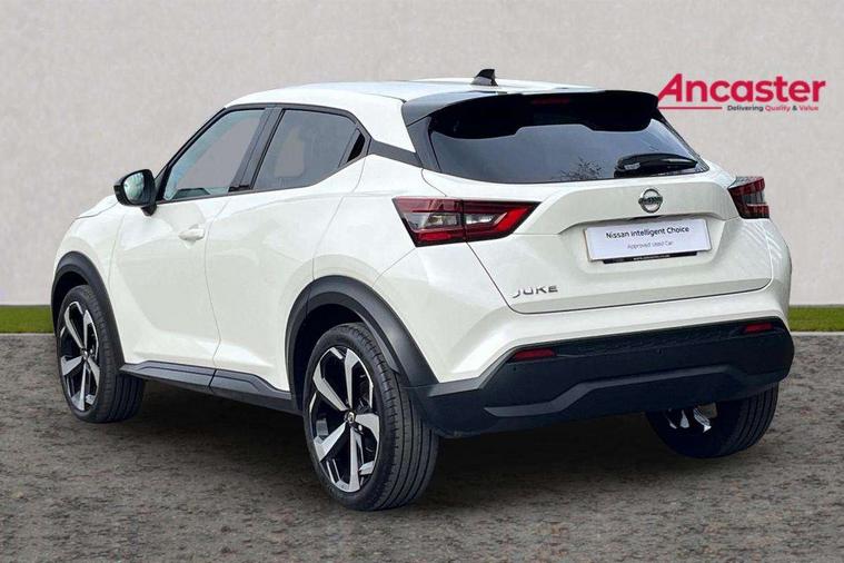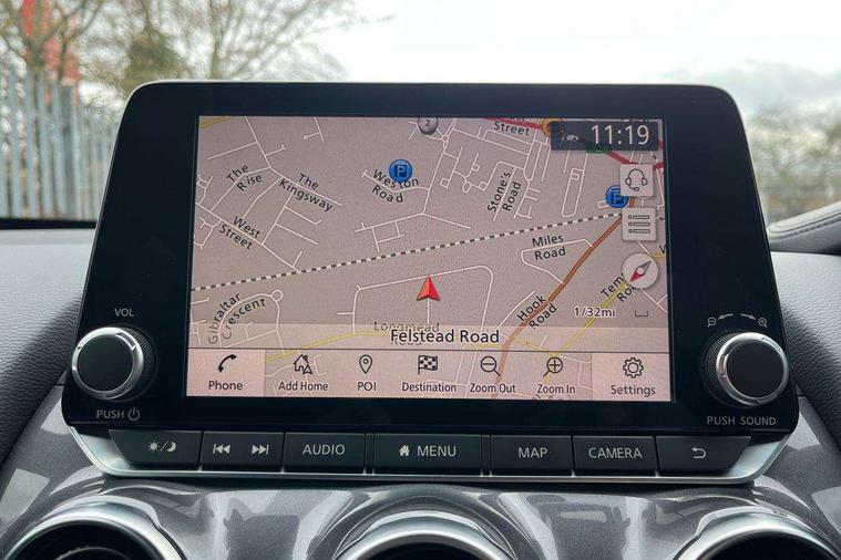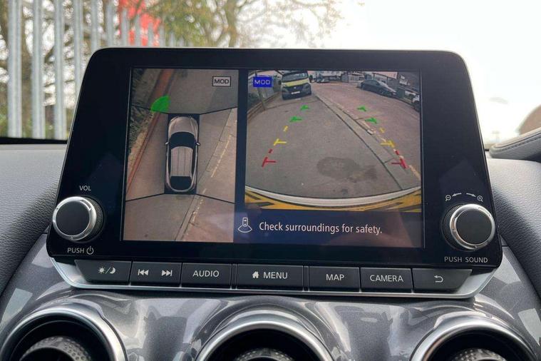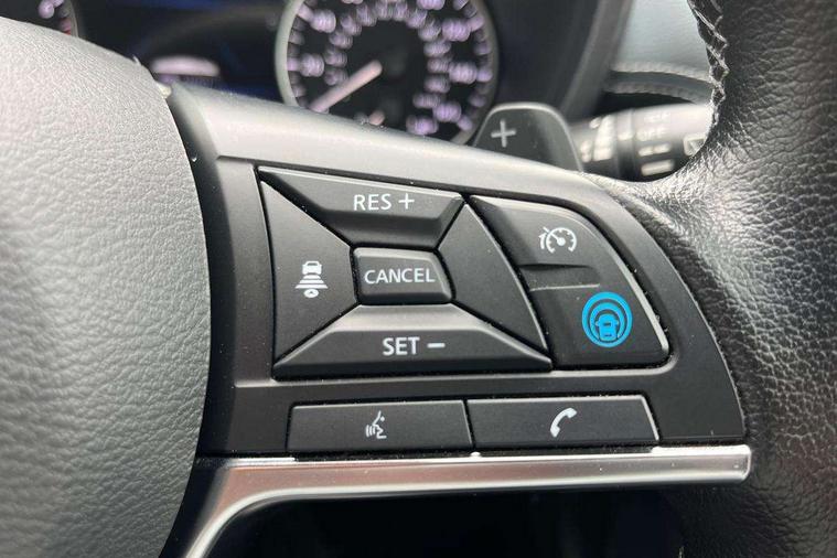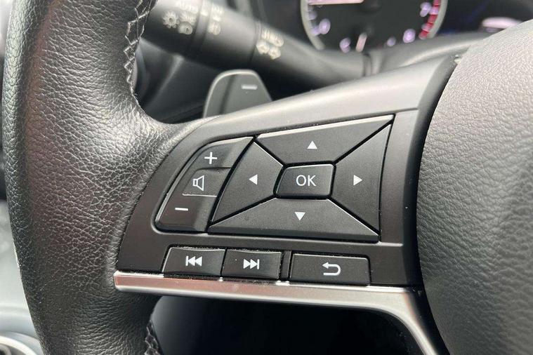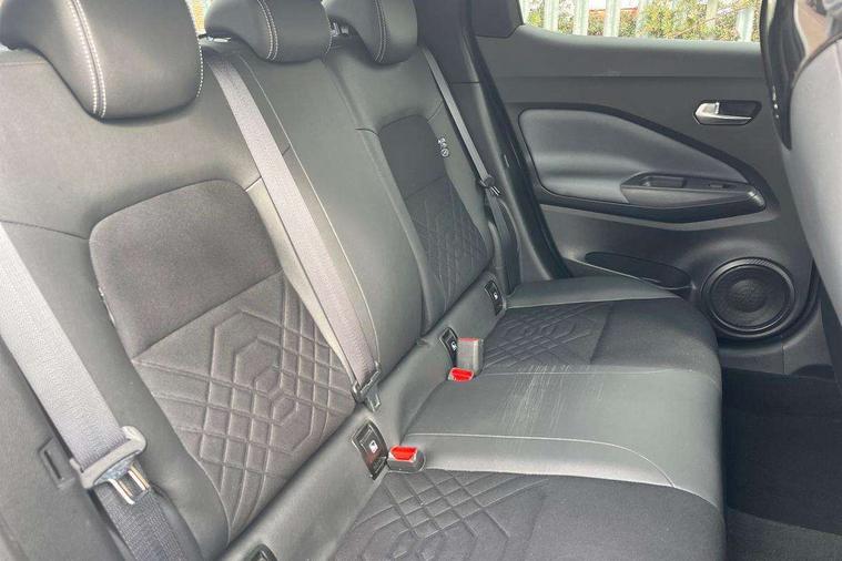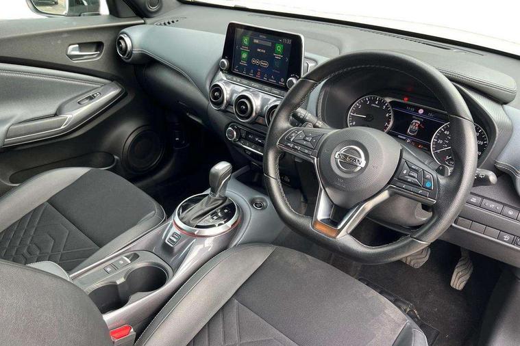 7" full colour TFT screen combimeter, Apple CarPlay and Google Android auto, Drive modes select (Eco, normal and sport), eCall emergency call system, Emergency and breakdown call, Front parking sensor, Idle start/stop system, Intelligent lane intervention, Lane departure warning system, Nissan connect 8" touch screen entertainment system, Nissan connect nav with TomTom traffic, Nissan connect services and Wifi connection, Outside temperature sensor, Power Steering, Rear parking sensor, Traffic sign recognition, Trip computer, Voice recognition, Gasoline particulate filter, Bluetooth system, USB, Aux-in and 12V socket, Bose personal plus audio system with 8 speakers(4 speakers and 2 headrest speaker for driver and passenger seats), Bose personal sound stage control, DAB Digital radio, Rear console USB port, Auto dimming interior rear view mirror, Auto headlights, Automatic hazard signal with emergency stop signal, Body colour bumpers, Body colour door handles, Electrically adjustable door mirrors with integrated indicators, Follow me home headlights, Front and rear electric window with one touch driver window, Heated and auto folding door mirrors, High beam assist, LED daytime running lights, LED front fog lights, LED headlamps, LED rear fog lamp, LED rear lamps, Rain sensor windscreen wipers, Rear privacy glass, Rear side wing doors, Rear wiper, Thermaclear heated windscreen, Three blink turn signal, 3 height adjustable rear headrests, 3 seat bench in 2nd row, 60/40 split folding rear seat, Automatic climate control, Card holder on driver sunvisor, Cloth/Synthetic leather upholstery, Door ambient lighting, Driver and passenger sliding and reclining seats, Driver seat back pocket, Driver side rear coat hanger, Driver/passenger sunvisors and vanity mirrors, Front and rear cabin lights, Front armrest, Front door pockets with bottle holders, Front head restraints, Front passenger isofix child seat anchorage point, Front/rear passenger grab handles, Gear console ambient circle lighting, Grey synthetic leather kneepad, Heated front seats, Height adjustable driver's seat, Height adjustable passenger seat, Internal chrome door handles, Leather gearshift knob, Leather steering wheel, Luggage board, Luggage space lighting, Monoform sporty seats, Multifunction steering wheel, Passenger seat back pocket, Rear door bottle holders, Single front passenger seat, Steering wheel mounted gearshift paddles, Telescopic steering wheel adjustment, Two cupholders in front centre console, Two rear isofix child seat anchorage points with top tether, Welcome light and console tray ambient lighting, ProPilot pack - Juke, ABS with EBD and brake assist, Active ride control, Active Trace Control, Driver and passenger airbags, Driver and passenger side airbags, Electric handbrake with auto hold function, Electronic Stability Programme (ESP), Front and rear curtain airbags, Height adjustable seatbelts, Hill start assist, Intelligent emergency braking with pedestrian and cyclist recognition, Rear door child safety locks, Seatbelt reminder for driver/front passenger and rear seats, Single tone horn, Three 3 point rear seatbelts, Traction control, Tyre pressure monitoring system, VDC Dynamic Vehicle Control, Ventilated rear brake discs, Alarm, Immobiliser, Intelligent Key with push button starter, Remote central locking,