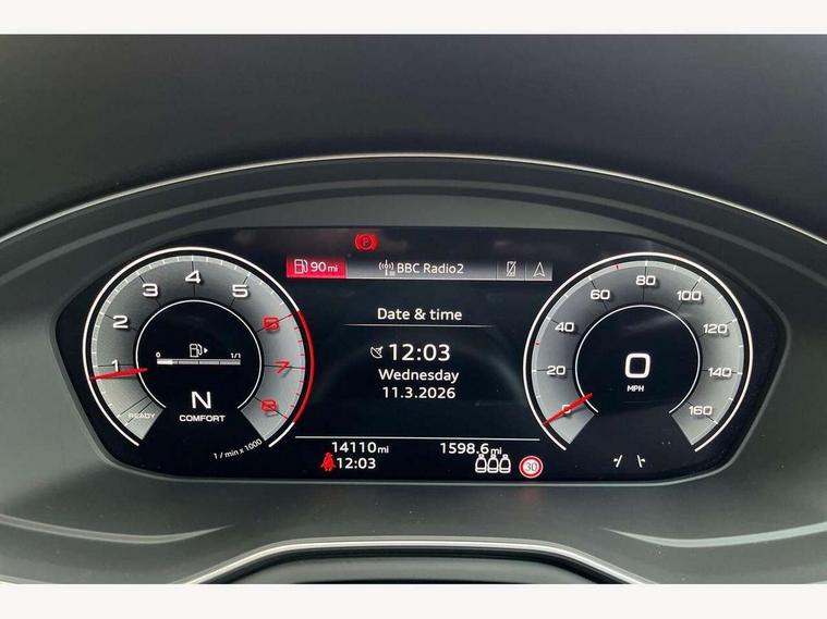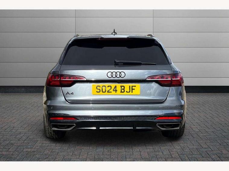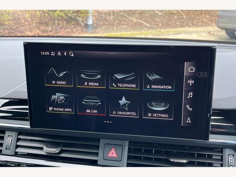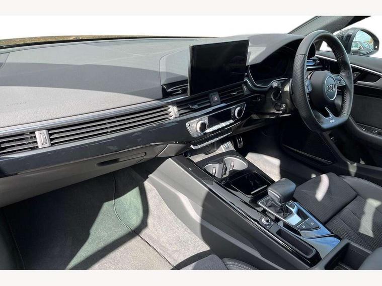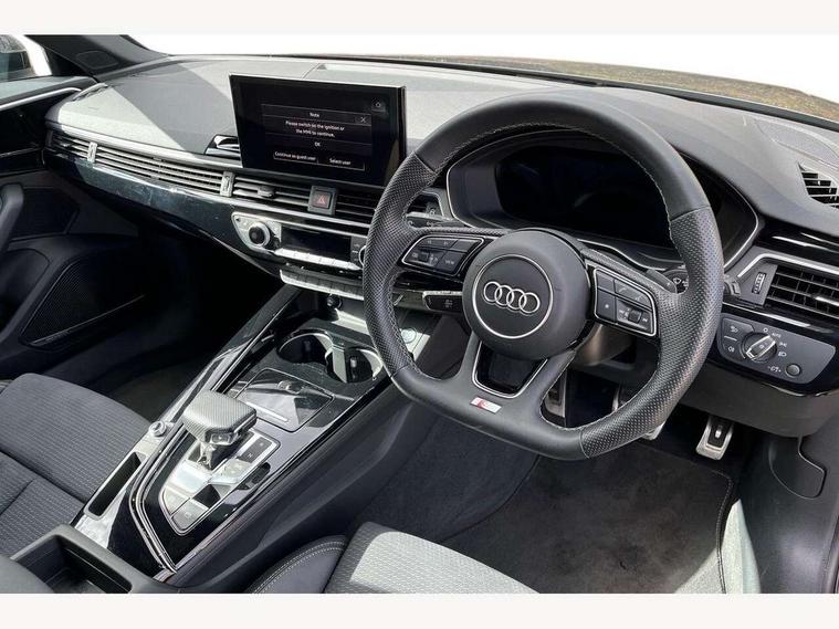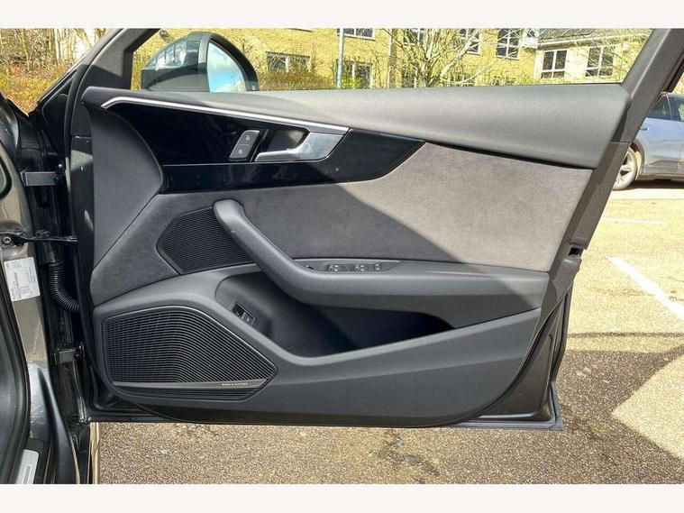 Audi connect safety and service (e-call), Audi drive select, Audi smartphone interface, Audi virtual cockpit, Automatic start-stop system with coasting functionality and efficiency programme, Bluetooth interface, Camera based traffic sign recognition, Electromechanical power steering, Email, calendar and text messages displayed via MMI, Front and rear parking sensors, Lane departure warning, MMI Navigation plus with MMI touch includes 10.1" high resolution colour MMI display, 3D map, Power operated tailgate, Rear view camera, Voice control system, 54 litre fuel tank, Sports suspension lowered by 23mm, 2 USB charging ports, 8 passive loudspeakers, DAB digital radio reception, Audi beam uses LEDs to project the audi logo onto the ground as you exit your A4, Auto dimming rear view mirror, Black Audi rings and black badging (with removed engine badging), Body colour door handles, Body colour front spoiler lip, Body colour side sill trim, Electric adjustable/heated/folding door mirrors with auto dimming, Exhaust tailpipes in dark chrome, Grained matt black side air inlets with matt aluminium silver inlay, High beam assistant, High gloss black B pillar trims and triangular rear door trim, LED headlights with LED rear lights + dynamic rear indicators + headlight adjustment and high beam, turning light + LED daytime running lights, LED third brake light, Privacy glass, Rain and light sensors, Rear diffuser in matt black with trim strip in matt aluminium silver, Rear side wing doors, Rear wiper, RS4 rear spoiler in body colour, S Line roof edge spoiler, Sport front and rear bumpers with side skirts, Variable intermittent front wash/wipe, Windscreen with acoustic glazing, 4 way electric lumbar support for driver and front passenger, 40/20/40 split folding 3 rear seat bench in 3 parts with rear centre armrest, Black carpets, Black cloth headlining, Black perforated leather gearknob, Contrast stitching on seats, steering wheel and gear lever gaiter, Deluxe 3 zone electronic climate control, Electric load area cover, Front and rear head restraints, Front centre armrest, Heated front seats, Illuminated door sill trims with S logo, ISOFIX child seat mounting and top tether, Manual seat adjustment, Single front passenger seat, Stainless steel pedals and foot rest, Tool kit, Black styling pack - A4 Avant, LED Interior light pack - A4/S4, 3 rear seatbelts, 6 airbags - Driver, front passenger, curtain and side windows, Attention and drowsiness assist, Electronic Stabilisation Control (ESC) including ABS, ASR and EDL, Hill hold assist, Multi collision brake assist, Pop-up bonnet for pedestrian protection, Pre sense city, Rear door child safety locks, Seatbelt monitoring, Warning triangle and first aid kit, Anti theft alarm, Anti theft wheel bolts, Central locking, Keyless Go, Piano black finish inlay, Tyre repair kit,