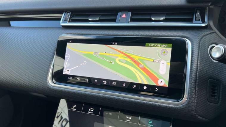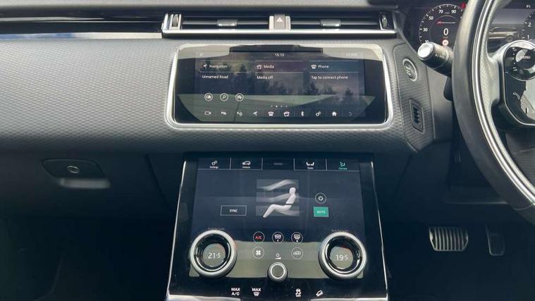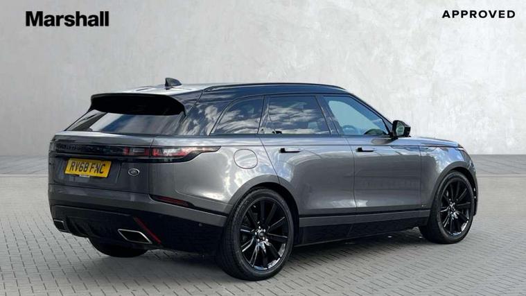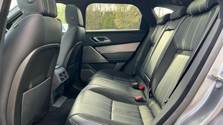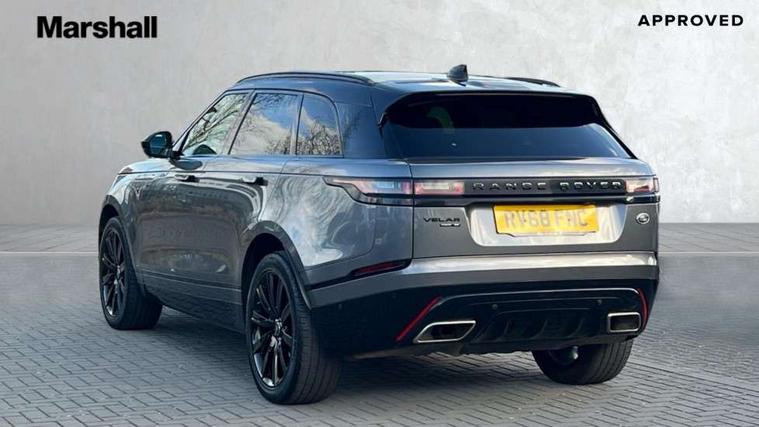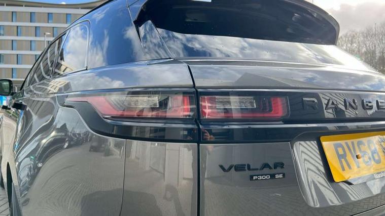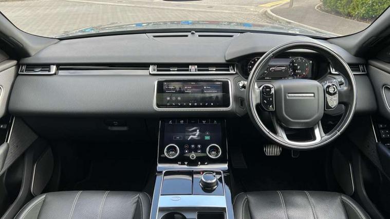 360 degree Park Distance Control, Bluetooth system, Driver condition monitor, Electric power assisted steering, Gesture tailgate, InControl remote, InControl Touch navigation pro, Interactive Driver display instrument cluster, Land Rover InControl apps, Lane keep assist, Park Assist - Parallel Park/Parking Exit/Perpendicular park, Pro services and wifi hotspot, Rear cross traffic alert, Service indicator, Speed proportional steering, Traffic sign recognition with adaptive speed limiter, Trip computer, Voice control system, Torque vectoring differential, DAB Digital radio, Steering wheel mounted controls, Acoustic windscreen, Adaptive front lighting system, Auto dim internal rear view mirror, Automatic headlamp levelling, Automatic headlights, Body coloured bumpers, Boot lid spoiler, Cornering light, Electric front/rear windows/one touch operation, Flush deployable exterior door handles, Follow me home headlights, Heated rear window with timer, Heated windscreen, R Dynamic badge, Rain sensor windscreen wipers, Rear fog lights, Rear wiper, SE badge, Trailer stability assist, Velar badge, 40:20:40 split folding rear seats, Adjustable front armrest, Bright finish pedals, Driver and passenger illuminated vanity mirror, Front and rear head restraints, Isofix system on outer rear seats, Loadspace cover, 350mm front brakes, 3x3 point rear seatbelts, ABS + traction control, Cornering brake control, Curtain airbags, Door side intrusion beams, Driver airbag, DSC - Dynamic Stability Control, Electronic brake force distribution, Electronic parking brake, Emergency brake assist, ESP, Front and rear seatbelt reminder, Hill launch assist, Low friction launch, Passenger airbag, Power child locks, Rear airbags, Roll stability control, Side airbags, Tyre pressure monitoring system, Immobiliser, Keyless entry, Perimetric alarm, Remote central locking,