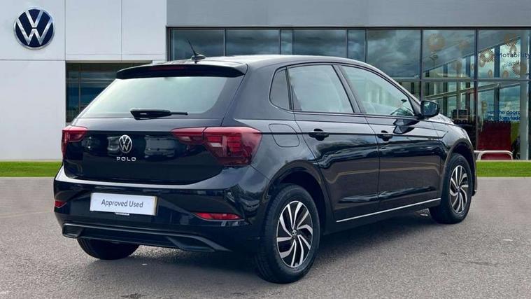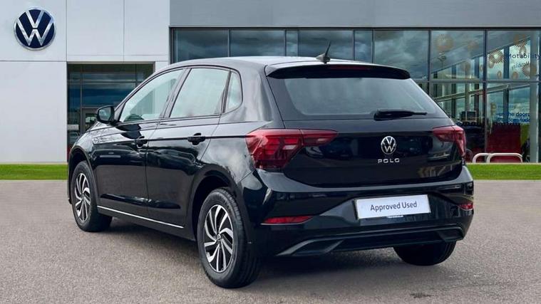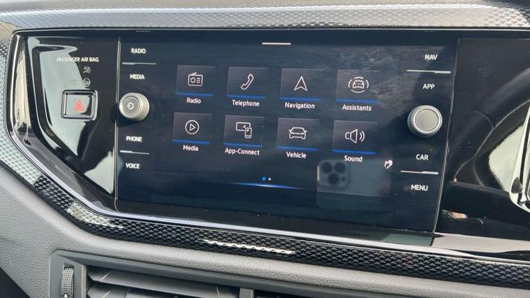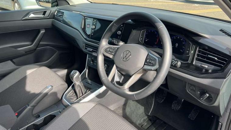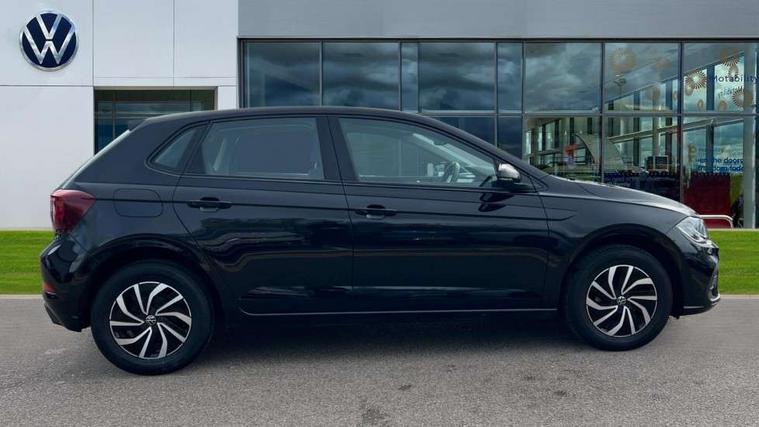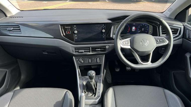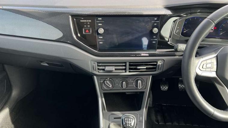 Adaptive cruise control without follow-to-stop and speed limiter, Bluetooth mobile phone interface, Driver alert system, Emergency call service, Front assist system, Power assisted speed sensitive steering, Preparation for We connect and We connect plus, Speedo and rev counter, electronic odometer, trip, service interval display and fuel gauge, Standard rear axle, Travel Assist - Lane keeping system and traffic jam assist, Travel assist including emergency assist, Trip computer, Warning signal and warning light for front and rear seatbelts not fastened, Washer fluid level indicator, Wireless app connect, Front wheel drive, Rear shock absorpion, Start-stop system with battery regeneration (recuperation - energy recovery during braking), DAB Digital radio, Diversity antenna for FM reception, Front and rear 6 speakers, Automatic dimming interior rear view mirror, Body colour bumpers, Body colour door handles, Body colour door mirrors, Electric front windows, Heat insulating darkened glass in side and rear windows, Heat insulating glass windscreen, Power folding adjustable/heated exterior mirrors and front passenger exterior mirror lowering function, Rain sensor, Rear electric windows, Rear fog light, Rear side wing doors, Rear windscreen washer and wiper with interval delay, Third brake light, 12V power socket in centre console, 2 front and 2 rear reading lights, 2 USB-C ports in the front, 2 USB-C charging sockets on the center console in the rear, 3 rear head restraints, 60/40 split folding rear seat and rear seat bench not split, Ceramique headliner, Chrome plated radiator grille inserts, air vent surrounds and light switch surrounds, Door and side trim panel, Driver and front passenger seat height adjustment, Driver/passenger sunvisors with illuminated vanity mirrors, Front centre armrest, Front seat backrest storage pockets, Front standard seats, Handbrake lever handle in leather, Hartley/Thomas cloth upholstery, Isofix child seat preparation easy-fit (for two outer rear seats, and front passenger seat) compatible with I-size, Leather trimmed gear knob, Luggage compartment cover, Luggage compartment floor, Luggage compartment lighting, Multifunction steering wheel, Single front passenger seat, Standard pedal cluster, Light and vision pack - Polo, 3 point height adj front seatbelts + pretensioners, 3x3 point rear seatbelts, ABS, Driver and front passenger airbag with front passenger airbag deactivation, Drivers and front passengers safety optimised head restraints, ESC (Electronic stability control) + EDL (Electronic Differntial lock) and ASR (Traction control), Extended and predictive pedestrian/ cyclist protection, Front curtain and side airbags with center airbag, Front disc brakes, Hill hold control, Manual child lock in rear doors, Rear drum brakes, Single tone horn, Tyre pressure loss indicator, Alarm with interior protection, Anti-theft alarm system with interior monitoring, backup horn, and towing protection, Anti-theft wheel bolts, Electronic engine immobiliser, Lava stone black gloss/matt decorative inserts in dash and front door panels, Low rolling resistance tyres,
