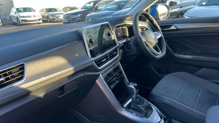 10.25" Digital cockpit pro, Advanced driver attention and drowsiness monitor, Emergency call service, Lane keeping system Lane Assist, Mobile phone interface, Modified key software - reduce switch off time for key status change to Long no motion, Online services, Park assist including front and rear parking sensors, Power assisted speed sensitive steering, Service interval indicator, Tailgate/trunk lid release from outside, Think blue trainer driver tips and journey analysis, Warning sound and light for front seatbelts unfastened, Wireless app connect, Battery regeneration during braking, Start/stop function with battery regeneration, DAB Digital radio, Diversity antenna for FM reception, Front and rear 6 speakers, Music playback - MP3, WMA and AAC files, Premium USB cable in choice of either Apple or Android smartphone compatibility, SD card slot, Simultaneous pairing of 2 compatible mobile devices, Title and cover art display, We Connect and We Connect Plus functionality, Auto dimming interior rear view mirror, Automatic hazard lights activation under emergency braking, Automatic headlight control with LED separate daytime running lights with coming/leaving home function, Body colour sports bumpers with silver metallic underbody fascia, Body coloured exterior mirror housings and door handles, Dynamic headlight range control with self adjusting whilst driving, Electrically adjustable and heated door mirrors, Extended roof spoiler, Exterior mirrors aspherical on driver side, convex on front passenger side, External USB type C socket and charging sockets, Front windscreen wiper with intermittent wipe and 4 position delay, Heated rear window, LED 3rd brake light, LED rear combination lamps, LED rear number plate lights, Light mode for poor weather, rain, fog or snow, Power windows with comfort operation and circuit breaker, Privacy glass for rear side windows and rear window, Rain sensor, Rear exhaust tailpipe, Rear fog light on one side and reversing lights on both sides, Rear side wing doors, Rear wash/wipe with intermittent wipe setting, Remote electrically foldable door mirrors, puddle lights and reverse activated passenger's door mirror, 12V power socket in centre console, 3 rear head restraints, 3 seat bench in 2nd row, 4 load lashing points in luggage compartment, Air care climatronic air conditoning system with active combination filter and 2-zone temperature control, Chrome plated radiator grille inserts, air vent surrounds and light switch surrounds, Door and side trim panel with leatherette insert, Drawer under drivers seat, Front + rear carpet mats, Front centre armrest, Front comfort sports seats, Front cupholders x 2, Front footwell illumination, Front seat back storage pockets, Glove compartment door with light, Instrument lighting, white adjustable panel illumination, Interior ambient lighting and surround lighting, Interior light delay, Isofix child seat preparation, Leather gearshift handle, LED interior light with switch off delay/dimmer and 2 front/rear LED reading lights, Load-through provision with cup holder when folded down ('Unsplit rear seat bench, split folding backrest, with centre armrest), Luggage compartment lighting, Non-folding front passenger seat backrest, Single front passenger seat, Storage compartment in left and right luggage area, Storage compartment in rear doors, Storage compartments in driver and front passenger doors, Sunvisors with illuminated vanity mirrors, Variable boot floor, height adjustable and removable, Driver assistance pack without proactive passenger protection - T-Roc, 3 point height adj front seatbelts + pretensioners, 3 point seatbelts in outer rear with ECE label, ABS, Child locks on rear doors, City emergency braking and pedestrian monitoring, Driver and front passenger airbag with front passenger airbag deactivation, Driver and front passenger safety-optimised head restraints, Drivers seatbelt reminder, Electronic parking brake, Electronic Stability Control (ESC) inc EDL (Electronic Differential Lock) and ASR (Traction Control), Front and rear passengers curtain airbag system including front side airbags, Predictive pedestrian protection, Rear disc brakes, Two tone horn, Tyre pressure loss indicator, Volkswagen roadside assistance, Deep iron grey decorative inserts in dashboard, centre console and front door trim panels, Trims for alloy wheels,