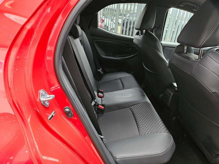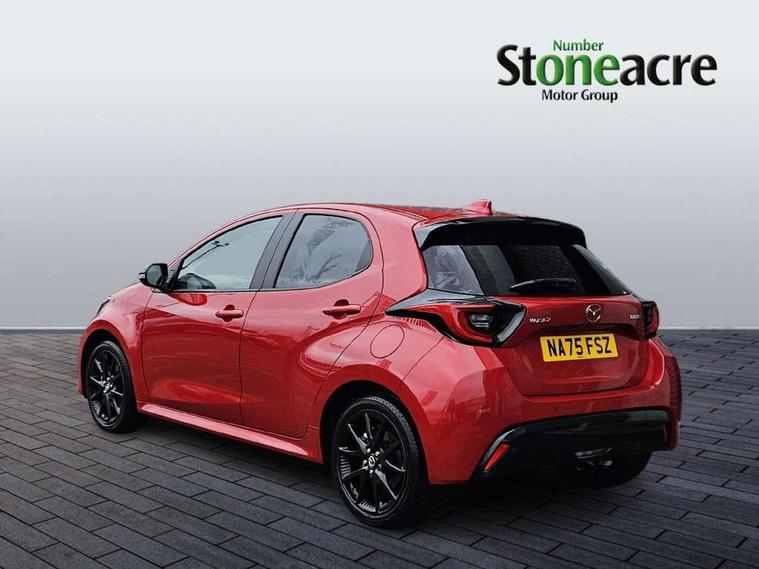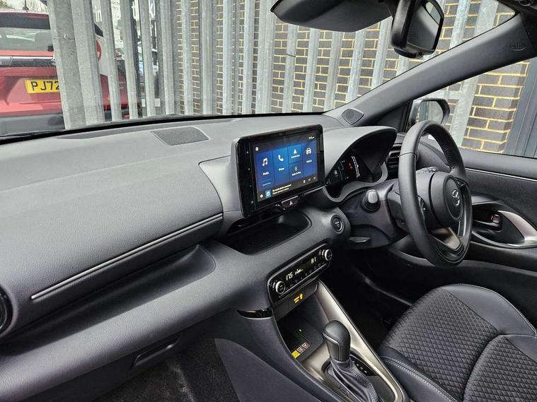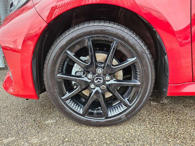 7" Digital instrument cluster with speedometer and hybrid system indicator, Adjustable speed limiter, Drive mode selector (Eco, Normal and Power), Driver attention alert system, Dynamic radar cruise control, E-call with GPS, EV drive mode, Front and rear parking sensors, Integrated bluetooth, Lane tracing assist includes Lane centering, Lane departure alert, Steering assist and Vehicle sway warning, Multi-information display, PAS, Push button start and stop, Qi wireless charging, Rear cross traffic alert with auto braking, Reversing camera, Road sign assist - RSA, Service indicator, Tailgate, Trip computer, Wireless Apple CarPlay and wired Android Auto, i-stop, 6 speaker audio system and 9" colour screen centre display, DAB Digital radio, Steering wheel mounted audio/bluetooth controls, USB type C port, Auto dimming rear view mirror, Auto folding door mirrors, Automatic high beam - AHB, Body coloured front bumper, Body coloured rear bumper with gloss black lower mouldings, Coming home function, Dusk sensing headlights, Front and rear electric windows, Gloss black electric adjustable/heated door mirrors, Gloss black front grille, Gloss black rear roof spoiler, Hybrid badge, LED front fog lights, LED headlights with manual headlight levelling and LED daytime running lights, LED rear combination light with LED turn signals, LED third brake light, Mazda unique tailgate garnish, Piano black lower window garnish, Privacy glass in rear side and rear windows, Rain sensing front wipers with adjustable sensitivity and speed, Rear side wing doors, Rear wash wiper, Shark fin antenna, Welcome lighting, 12V power outlet, 3 seat bench in 2nd row, 60/40 split fold down rear seats, Ambient lighting, Black roof lining in pillar and ceiling, Cloth/Synthetic leather upholstery, Driver, front passenger and two rear door storage, Driver, Front passenger and two rear grab handles with coathooks, Drivers seat manual slide recline and height adjustment, Drivers/front passengers with covered vanity mirrors and light, Dual zone climate control, Front centre armrest with console storage, Front head restraints, Front passenger seat manual slide, recline and height adjust, Front sport seats, Glovebox, Interior courtesy light with LED illumination, ISOFIX child seat anchorage points attached on outer rear seats, Leather handbrake, Leather wrapped gearshift, Leather wrapped steering wheel with telescopic and tilt adjustment, Luggage compartment light, Seatback pocket at rear of the front passenger seat, Single front passenger seat, Three height adjustable rear head restraints, 2x3 point front seatbelts with pre-tensioners, 3 point seatbelts on all rear seats, Airbags - driver and front passenger, Anti-lock braking system (ABS), Blind spot monitoring with rear cross parking support brake function, Collision mitigation braking system, Driver and passenger central airbags, Dynamic stability control + Traction control, Electronic parking brake with auto-hold and auto-disengage function, Emergency brake light signal (EBS), ESP, Front and rear curtain airbags, Front passenger airbag cut-off switch, Front side airbags, Hill start assist control (HAC), Manual child lock in rear doors, Pre-crash safety system - PCS, Rear parking support brake, Regenerative braking system, Seatbelt reminder audible warning, Tyre pressure monitoring system, Deadlocking system, Remote central locking, Smart keyless entry, Thatcham approved immobiliser and alarm, 17" Alloy wheels, Emergency tyre repair kit,