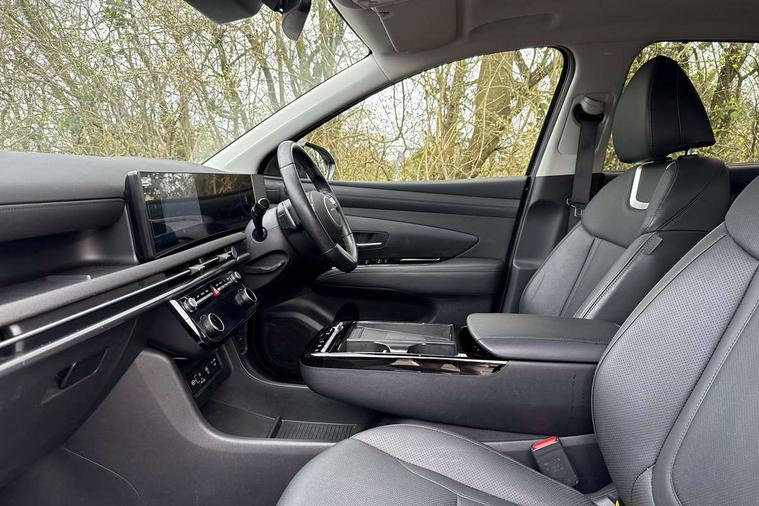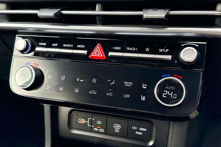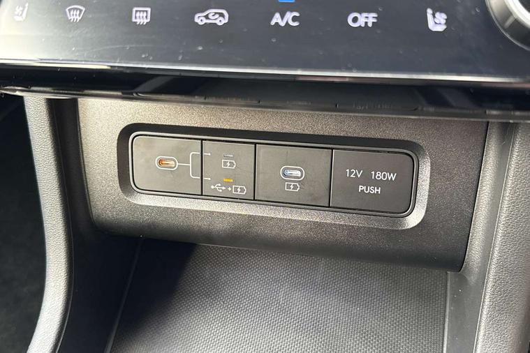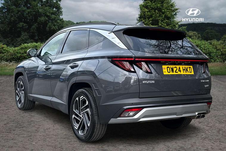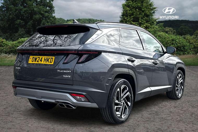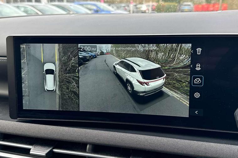 12.3" LCD display with driver's supervision instrument cluster, 12.3" widescreen navigation with bluelink and mapcare, Blind spot view monitor, Bluetooth system, Cruise control - smart adaptive speed control with stop and go function, Digital clock, Drive mode selector, Driver attention warning, E-call, Emergency stop signalling system, Forward Collision Avoidance Assist (FCA) - Car, Pedestrian and Cycle, Forward Collision Avoidance Assist Junction Turning (FCAJX), Front and rear parking sensors, Front, rear and side parking distance warning, Highway Driving Assist (HDA), Hyundai road side assistance, Intelligent speed limit assist, Lane follow assist, Lane keep assist, Over the air updates(OTA), Parking collision avoidance assist (PCA), PAS, Rear camera and guidance parking system, Rev counter, Smart power tailgate, Surround view monitor, Tailgate open warning light, Trip computer, Trip odometer, Voice recognition, Water temperature gauge, Windscreen washer fluid sensor and warning indicator, Wireless Apple CarPlay/Android Auto, Wireless phone charging pad, 2 front and 2 rear USB-C ports, DAB Digital radio, Krell premium audio system with 8 speakers and subwoofer, Steering wheel mounted audio/phone controls, Adjustable intermittent front windscreen wipers with aero wiper blade, Auto dimming rear view mirror, Automatic defog system, Automatic headlights with dusk sensor, Automatic windscreen wipers with rain sensor, Black wheel arches, Body colour bumpers, Body colour door mirrors with integrated indicators, Body colour exterior door handles, Electric tilt/slide panoramic sunroof, Electrically adjustable, heated and power folding door mirrors, Follow me home headlights, Front and rear electric windows with anti-trap mechanism and one touch control, Front fog lights, LED 3rd brake light, LED daytime running lights, LED rear lights, Matrix LED headlights, Positioning Lights - LED, Privacy glass - Rear windows and tailgate, Rear side wing doors, Rear wash/wipe with intermittent wipe setting, Roof rails, Tinted glass with windscreen shade band, Trailer stability assist, 12V power outlets in front console and luggage compartment, 3 seat bench in 2nd row, 40/20/40 split folding rear seat, 64 colours interior ambient lighting, Adjustable head restraints (Up and down), Cupholders in rear armrest, Door courtesy lights, Driver and passenger sunvisors with illuminated LED vanity mirrors, Driver's seat electric adjustments, Driver's seat memory, Front and rear door pockets, Front armrest with storage box, Front centre console and door bottle holders, Front passenger's seat electric adjustments, Heated front seats, Heated rear seats, Heated steering wheel, Height/reach adjustable steering column, Illuminated/air conditioned glove compartment, ISOFIX child seat anchorage points attached on outer rear seats, Leather upholstery, Leather wrapped steering wheel and gear knob, Luggage compartment lighting, Luggage cover, Luggage hooks, Luggage net, Map and reading lights, Rear seat remote folding function, Rear side window sunblind, Reclining rear seats, Retractable load cover, Single front passenger seat, Sunglasses holder, Three zone climate control, Touch sensitive climate controls with temperature dials, TUCSON branded metal door scuff plate, Underfloor boot compartment, Ventilated front seats, Trailer wiring package - Tucson, 3x3 point rear seatbelts, Active bonnet, Airbag - Front, front side, curtain and centre front airbags, Anti-lock brake system (ABS), Brake assist function, Childproof rear door locks, Curtain airbag roll over sensor, Downhill brake control, Electric parking brake, Electronic stability control, Front and rear seatbelt reminder, Front passenger airbag deactivation switch, Front seatbelt pretensioners, Hill start assist control (HAC), Multi-Collision braking, Outer rear seatbelt height adjustment, Seatbelt height adjustment for front seats, Traction control, Tyre pressure monitoring system with individual tyre pressure display - TPMS, Vehicle stability management, Deadlocks, Immobiliser, Locking wheel nuts, Remote control central locking, Smart key with keyless entry and engine start/stop button, Speed sensitive auto door locking, Thatcham category 1 alarm, 19" Alloy wheels, Tyre repair kit,
