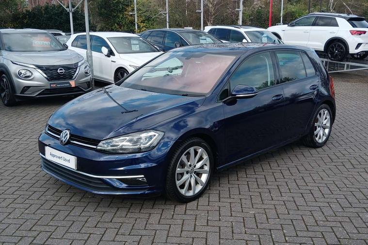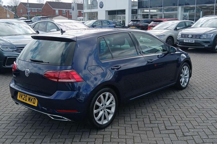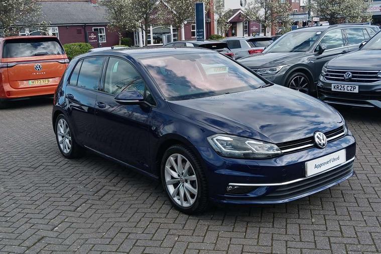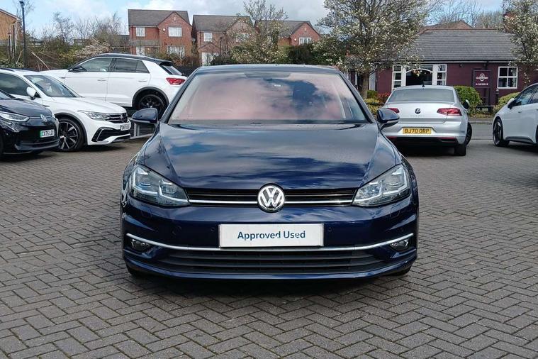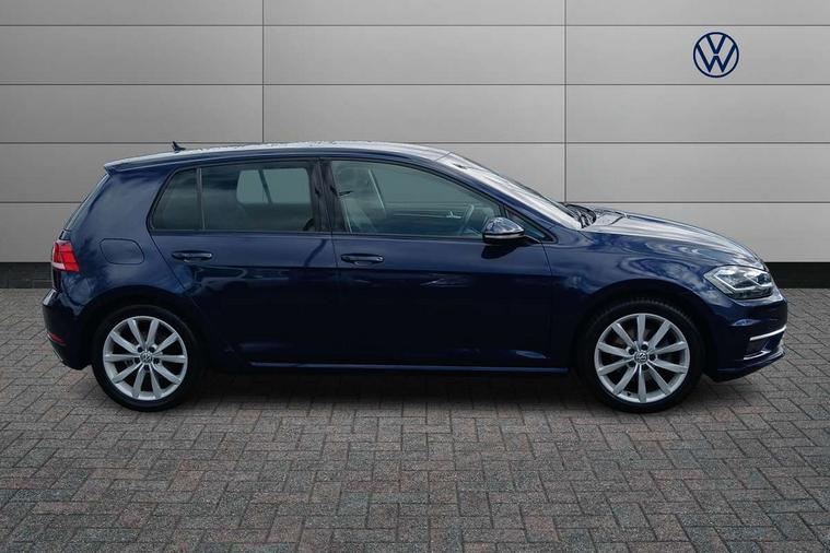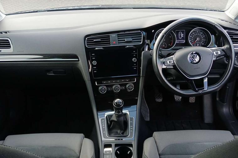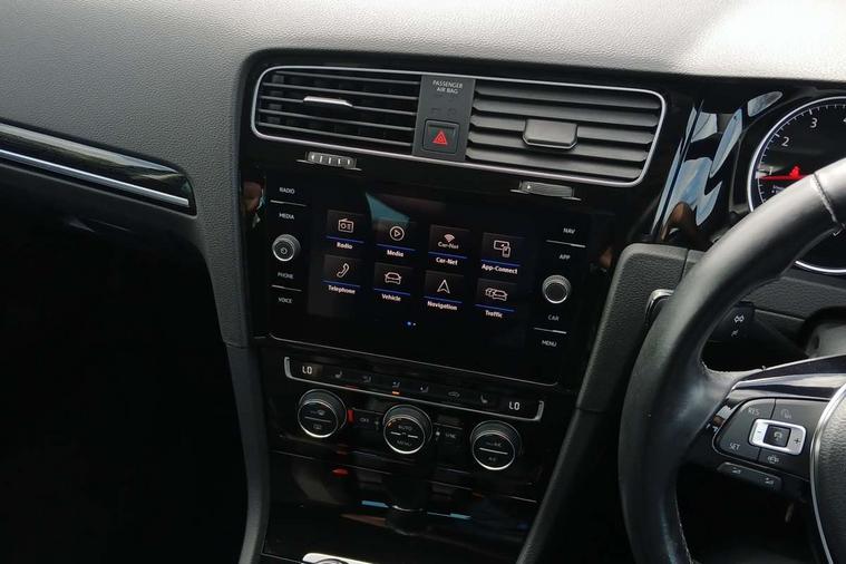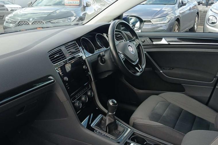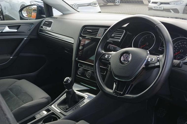 'Lights On' Reminder warning buzzer, ACC - Adaptive cruise control with front assist, forward collision warning, distance monitoring, city emergency brake and speed limiter, Bluetooth telephone and audio connection for compatible devices, Brake pad wear indicator warning light, Driver alert system, Driving Mode Selection with four preset modes - Eco, normal, sport or individual modes, Multifunction computer with visual gear change recommendation for fuel consumption, Power assisted speed sensitive electro-mechanical steering, Push tank flap, Speed limit display, Speedo, rev counter, electronic odometer, trip, service interval display, exterior temperature and fuel gauge, Stop/start system, Think blue trainer driver tips and journey analysis, Warning buzzer and light for front seatbelts unfastened, Battery regeneration during braking, XDS electronic differential lock, Composition media system, DAB Digital radio receiver, Driver Personalisation profile selection, MP3/WMA compatability, Multi device interface (MDI) via USB connection, Premium USB cable in choice of either Apple or Android smartphone compatibility, SMS Functionality, Title and cover art display, USB and SD card connectivity, Volkswagen media control, Black front air intake and radiator grille with chrome insert, Black rear diffuser, Body colour bumpers, Body colour door handles, Body colour door mirrors with integrated indicators, Chrome trimmed front air intake surrounds, Dusk sensor + automatic driving lights, Electric front windows, Electric rear windows, Electrically adjustable and heated door mirrors, Fully galvanised body, Heated rear windscreen, High level 3rd brake light incorporating LED Technology, LED front fog lights with static cornering light function, Range adjustable headlights via infotainment system with LED daytime running lights, Rear fog lamp, Rear number plate lights incorporating LED technology, Rear tinted glass 65% light absorbing from B pillar backwards, Rear window aerial, Rear window wash/wipe with intermittent wipe, Reflectors in all doors, Tailgate with integrated rear roof spoiler, Windscreen wipers/ intermittent wipe + 4 position delay, 12V socket in luggage compartment, 3 rear headrests, 4 load lashing points in luggage compartment, 60/40 split folding rear seat backrest, Bag hook in luggage compartment x 2, Climate control - 2 zone electronic air conditioning with automatic air recirculation and allergy filter, Cooled glovebox, Cover for storage compartment in centre, Dust/pollen filter, Front + rear carpet mats, Front centre armrest with storage compartment and two rear air vents, Front seat back storage pockets, Grab handles front x 2, rear x 2 with integrated coat hooks, Height and reach adjustable steering wheel, Illuminated vanity mirrors, Instrument lighting white adjustable panel illumination, Interior light delay, Isofix preparation for 2 rear child seats, Load through provision with rear centre armrest and cupholders x2, Luggage compartment lighting, Overhead storage box, Pearl grey headlining, Storage box in luggage compartment, Storage compartment in roof console with cover, Storage compartments in centre console, Storage compartments in front doors, Storage compartments in rear doors, Stowable luggage compartment cover, Sun visors, Variable boot floor, height adjustable and removable, Ambient lighting pack - Golf, Convenience Pack - Golf, Mirror pack - Golf, Winter pack - Golf, 3 rear three point seatbelts, Airbags - Driver's and front passenger's, curtain airbag, Driver's knee, front side impact and passenger's airbag deactivation switch, Anti-lock Braking System (ABS) with Hydraulic Brake Assist (HBA), Automatic post collision braking system, Child locks on rear doors, Driver/Passenger optimised head restraints, Electronic parking brake with auto hold, Electronic stability control (ESC) including Electronic differential lock (EDL) and ASR (Traction control) with deactivation via infotainment system, Front ventilated disc brakes and rear disc brakes, Pre crash preventive occupant protection, Three point height adjustable front seatbelts with tensioners, Tyre pressure loss indicator, Alarm with interior protection and deactivation via infotainment system, Electronic engine immobiliser, Chrome plated air vent surround, Chrome plated electric mirror adjustment switch surround, Chrome-plated light switch surround, Piano black decorative inserts in centre console, Tumbler decorative inserts, Steel space saver spare wheel,