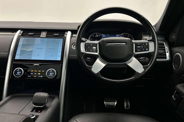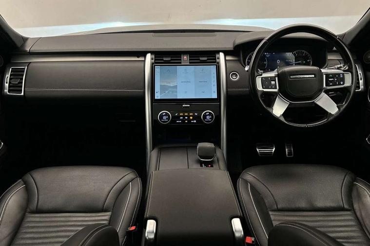 11.4" touchscreen, 3D surround camera, Adaptive cruise control, Android Auto, Apple car play, Blind spot assist, Driver condition monitor, Electric power assisted steering (EPAS), Emergency services call system, Front and rear parking aid, Lane keep assist, Power inner tailgate, Push button start, Rear collision monitor, Rear traffic monitor, Remote, Remote boot release, Service interval indicator, Speed proportional steering, Sportshift selector, Stop/start system, Traffic sign recognition with adaptive speed limiter, Trip computer, Wade Sensing, Adaptive dynamics, Dynamic stability control, Electronic air suspension, Front axle open differential, Digital Audio Broadcast radio-DAB, Dynamic volume control, Meridian surround sound system - 14 speaker + subwoofer, 18 channel amplifier, 700W, Pivi pro connected, USB/aux input socket, Acoustic laminated windscreen, Animated directional indicators, Auto dimming interior rear view mirror, Automatic headlight levelling, Automatic headlights, Body colour bumpers, Body colour door handles, Centre high mounted stop light, D300 badge, Electric heated/power fold memory door mirrors with approach lights and auto dimming driver side, Electric windows with one touch open/close and anti-trap, Heated rear window, Heated windscreen, LED darkend tail lights, Matrix LED headlights with signature DRL, Metal treadplates with R-Dynamic branding, Narvik black Discovery script, Privacy glass, Puddle lights, Rain sensing windscreen wipers, Rear fog lights, Rear side wing doors, Rear wash/wipe, Trailer stability assist, Variable intermittent wiper, 12V power sockets, 12V USB charging socket in loadspace, 2 seat bench in 3rd row, 3 seat bench in 2nd row, Central hinged twin lidded storage, Ebony morzine headlining, Electric adjustable steering column, First and second row door bins, Footwell lights, Front and rear 12V with front USB, Front passenger seat isofix location point, In-facia storage, Isofix child seat preparation for front passenger seat, Loadspace cover, Loadspace Hook, Loadspace light, Lockable glovebox, Lower centre console storage, Luggage tie downs in loadspace, Multi function steering wheel, Overhead lighting console, Premium cabin lighting, Premium carpet mats, Rear ISOFIX, Shopping bag hook, Single front passenger seat, Storage glovebox, Sunvisors with illuminated vanity mirrors, Third row storage, Twin front cupholders with cover, USB with 12V socket in centre console, Online pack with data plan - Discovery, R-Dynamic black exterior pack - Discovery, 3x3 point rear seatbelts, Anti-lock braking system (ABS), Brake pre-fill technology, Cornering brake control, Curtain airbags, Customer configurable autolock, Driver and passenger airbags, EBD - Electronic brakeforce distribution, Electronic traction control, Emergency brake assist, Emergency braking, ESP, Front side airbags, Gradient acceleration control, Hill descent control, Hill launch assist, Power operated child locks, Rear airbags, Roll stability control, Seat belt reminder, Torque vectoring brake, Tyre pressure monitoring system, Immobiliser, Intrusion sensor, Keyless entry, Locking wheel nuts, Remote central locking, All terrain tyres,