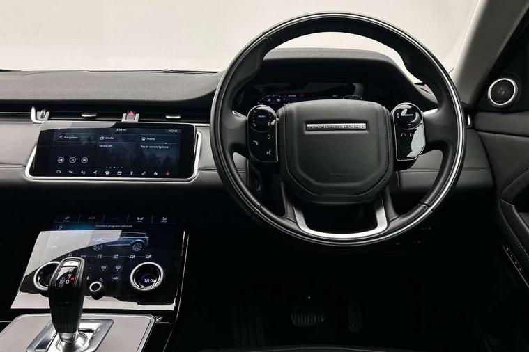 360 degree parking aid, Adaptive cruise control, Android Auto, Apple car play, Blind spot assist, Bluetooth connectivity, Brake pad wear indicator warning light, Clear exit monitor, Driver condition monitor, Duo touch pro, Electronic power assisted steering (EPAS), InControl remote, Interactive Driver display instrument cluster, Land Rover InControl apps, Lane keep assist, Navigation pro system, Park assist - Parallel, perpendicular and parking exit, Powered gesture tailgate/boot lid, Pro services and wifi hotspot, Push button starter, Rear traffic monitor, Smart settings, Traffic sign recognition with adaptive speed limiter, Voice control system, All terrain progress control, Efficient Driveline, Passive suspension, Terrain Response 2 Auto, Digital Audio Broadcast radio-DAB, Steering wheel mounted controls, Automatic headlight levelling, ClearSight interior rear view mirror, Electric windows with one touch open/close and anti trap, Evoque badge, Flush deployable exterior door handles, Heated rear window with timer, Heated washer jets, Heated windscreen, Power fold, auto-dimming, heated door mirrors with memory and approach lights, Rain sensing windscreen wipers, Rear fog lights, Tailgate spoiler, 40:20:40 split folding rear seats, Isofix system on outer rear seats, Overhead lighting console, Overhead stowage for sunglasses, Passive front head restraints, Rear air vents, Rear centre headrest, Sunvisors with illuminated vanity mirrors, Twin front cupholders with cover, Twin sliding front centre armrest, Two zone climate control, Anti-lock braking system (ABS), Customer configurable autolock, DSC - Dynamic Stability Control, Electronic brake force distribution, Electronic parking brake, Electronic traction control, Front and rear seatbelt reminder, High speed emergency braking, Hill descent control, Hill launch assist, Low traction launch, Power operated child locks, Roll stability control, Six airbags - Driver and passenger airbags/driver knee airbag/front side airbag and curtain airbags, Torque vectoring brake, Tyre pressure monitoring system, Alarm, Immobiliser, Intrusion sensor, Keyless entry, Locking wheel nuts,