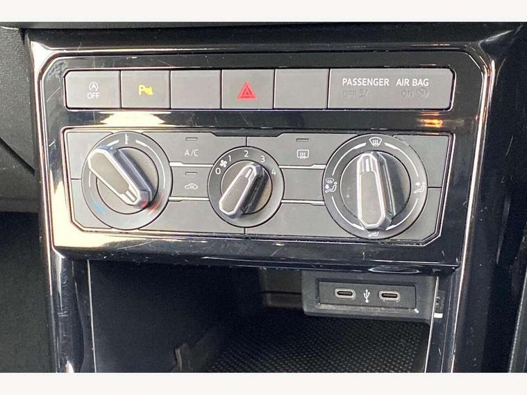 'Lights On' Reminder warning buzzer, Adaptive cruise control including front assist, forward collision warning, autonomous emergency braking, speed limiter, Blind spot monitoring, Bluetooth telephone and audio connection for compatible devices, Car information display, Digital cockpit, Driver alert system, eCall emergency call system, Lane assist, Low washer fluid warning light, Multifunction computer with visual gear change recommendation for fuel consumption, Operating permit alteration, Power assisted speed sensitive steering, Speedo, rev counter, electronic odometer, trip, service interval display, exterior temperature and fuel gauge, Stop/start system, Warning sound and light for doors and tailgate open, Warning sound and light for front seatbelts unfastened, We Connect Go Dongle, Wireless Car net app connect with Apple CarPlay, combined functionality of Apple CarPlay/Android Auto and MirrorLink, Battery regeneration during braking, Misfuel prevention device, 2x USB connection with USB charging sockets and in rear centre console, DAB Digital radio receiver, Diversity antenna for FM reception, Multi device interface (MDI) with USB connection, Music playback - MP3, WMA and AAC files, Premium USB cable for Apple or Android smartphone compatibility, Simultaneous pairing of 2 compatible mobile devices, Title and cover art display, Automatic hazard lights activation under emergency braking, Black door mirrors, Black roof rails, Body colour door handles, Body coloured bumpers, Dusk sensor + automatic driving lights, Electrically foldable, adjustable and heated door mirrors with reverse activated kerb view adjustment on passenger's side, Front and rear electric windows, Front fog lights with static cornering function, Galvanised body, Heated rear window, LED third brake light, Lower door sills and door pillars in black, Radiator grille with high gloss surface and chrome strip, Rear fog light on one side, reversing light on both sides, Rear lights incorporating LED technology, Rear side wing doors, Rear tinted glass 65% approx light absorbing from B pillar backwards, Rear window aerial, Rear windscreen washer and wiper with interval delay, Reflectors in all doors, Tailgate with integrated roof spoiler, Windscreen wipers/ intermittent wipe + 4 position delay, 12V Accessory socket in centre console, 3 rear head restraints and 3 rear three point seat belts with ECE label, 3 seat bench in 2nd row, 60/40 split folding rear seat backrest, Comfort front sport seats, Diag cloth upholstery, Drawer under drivers seat, Driver and front passenger sunvisor with vanity mirror, Driver's sunvisor with ticket holder, Dust and pollen filter, Front + rear carpet mats, Front and rear reading lights X 2, Front centre armrest with storage compartment, Front seat back storage pockets, Front seats with adjustable lumbar support, Glovebox, Heating and fresh air system with 4 stage blower, Height/reach adjust steering wheel, Instrument lighting white adjustable panel illumination, Interior light with delay, Isofix child seat preparation for 2 rear child seats, Luggage compartment cover, Luggage compartment lighting, Manual air conditioning, Moveable and foldable Rear bench seat, Single front passenger seat, Storage compartment in drivers and front passengers door, Three spoke multi-function leather trimmed steering wheel and gearknob, Variable boot floor, Anti-lock Braking System (ABS) with Hydraulic Brake Assist (HBA), Automatic post collision braking system, Driver and front passenger safety-optimised head restraints, Drivers and Front Passengers airbags with front passengers airbag deactivation switch, ESC with EDL, ASR, EDTC and trailer stabilisation function, Front and rear curtain airbags, Front disc brakes and rear drum brakes, Front seat side impact airbags, Height-adjustable front three-point seat belts with tensioners, Hill start assist, Pre crash preventive occupant protection, Rear door child safety locks, Rigid safety cell with front and rear crumple zones, Single torn horn, Tyre pressure loss indicator, Volkswagen roadside assistance, Alarm with interior protection and deactivation via infotainment system, Child security locks in rear doors, Electronic engine immobiliser, Remote tailgate unlocking using key fob, Decorative inserts transition high gloss black/platnium grey, 17" Manila black diamond turned surface alloy wheels + anti theft wheel bolts, Breakdown kit,