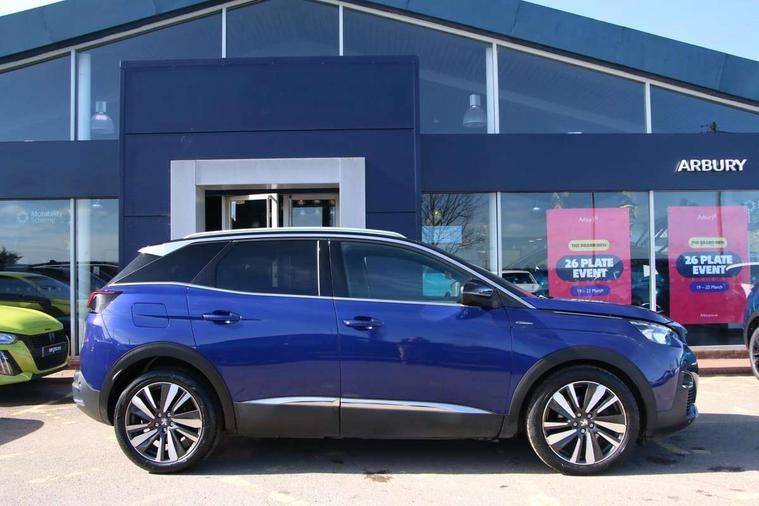 'Lights On' Reminder warning buzzer, 3D connected navigation + voice control + Peugeot connect SOS and assistance, Bluetooth telephone facility, Digital clock, Exterior temperature indicator with ice warning, Front and rear parking sensors, Lane departure warning system, Mirror screen with mirror link, apple carplay and android auto, Multi function trip computer, PEUGEOT i-Cockpit with 8.0" capacitive touchscreen in centre console, PEUGEOT i-Cockpit with amplify (choice of two configurable interior ambiences), PEUGEOT i-Cockpit with compact sports steering wheel, PEUGEOT i-Cockpit with configurable 12.3" Head-up digital instrument panel, Smartphone charging plate, Speed limit recognition and recommendation, Sports button, Dynamic stability control and electronic anti-skid system, DAB Digital radio, Steering column mounted multifunction controls, USB socket, 2 X Rear number plate lights, Aluminium longitudinal roof bars, Automatic hazard light activation upon heavy brake application, Automatic triggered rear windscreen wiper in reverse gear, Black and chrome front wing trim, Black bumper protection plate, Body colour door handles, Body colour rear spoiler with stainless steel edging trim, Body coloured bumpers, Body protectors (bottom of front and rear bumpers + wheel arches + protection at bottom of doors) in black, Chrome bumper inserts, Chrome front fog light trim, Chrome radiator grille and surround, Chrome rear bumper facia, Chrome side window trim, Dark tinted rear side windows + tailgate window, Door mirror mounted LED Peugeot lion approach lights, Electric operated/heated door mirrors, Front windscreen wiper with magic wash cleaning system, Full LED headlights with LED fog lights with static cornering function, sports front bumper and grille, Gloss black finish B and C pillar, Gloss black rear cluster connecting strip, Gloss black windscreen surround, GT Line emblem in satin copper, Headlights left on audible warning, Heated rear windscreen with integrated antenna, LED daytime running lights, LED sequential scrolling front indicators, LED side indicator lights integrated into door mirrors, Lion grey front bumper scuff plate, Nera black door mirrors, One touch electric front/rear windows with pinch protection, Power folding door mirrors with blind spot detection indicator and auto dipping function in reverse gear, Radiator grille in chrome edge trim with chequered design and black 'PEUGEOT' lettering, Rear LED Peugeot signature 'Claw Effect' lights, Sports front bumper, Stainless steel roof arches, Twin exhaust tailpipe, 1/3 to 2/3 split folding rear seats, 12V Sockets in dashboard, rear cabin and load area, 2 cupholders in front centre console, 2 rear reading spotlights, 2x Rear coat hooks, 3x Isofix child seat fittings in the front passenger and outer rear seats, 4 Grab handles retractable and damped, 4 Lashing eyes in boot, Aikinite stitching in armrest, gear lever and dashboard facia, Blue ambient lighting for connecting zone, Blue ambient lighting to front door panels, central storage and cupholders, Blue ambient lighting to head up instrument panel, Centre front armrest with butterfly wing opening and illuminated storage compartment, Driver and front passenger seat height adjustment, Driver seat manual adjustment, Dual zone automatic climate control, Electric power steering with reach and rake adjustable steering column, Fixing rings 4 in load compartment, Flocked front door pocket interior with blue ambient lighting, Flocked glovebox interior, Fold flat front passenger seat with picnic table, Footwell illumination, Front headrests, Front interior light with 2 reading spotlights and rear interior light with timer, Front seat back map pockets, Gear shift indicator, Height adjustable headrests, Illuminated glovebox, Illuminated vanity mirrors, LED interior lighting in storage spaces and load area, Mistral floor mats with Aikinite contrast stitching, Mistral full grain perforated leather steering wheel with aikinite stitch detail and satin chrome 'GT Line' emblem, Rear armrest with ski flap and two cup holders, Rear centre console ventilation system, Rear headrests, Reclining front seats, Roof LED interior lighting, Roof lining - Mistral black, Satin chrome dashboard trim, Satin chrome digital instrument panel and touchscreen trim, Satin chrome front door panel recess trim, Satin chrome gear lever, Satin chrome interior door handles, Satin chrome scorpion's tail and toggle switch trim, Seatbelt not fastened audible and visual alert for front seats, Seatbelt unfastened on the move audible and visual alert for front and rear seats, Stainless Steel Scuff Plates, Two position boot floor, Safety pack - 3008, Safety Plus Pack - 3008, Visibility pack - 3008, 3x Rear three-point retractable seatbelts with force limiters in the outer rear seats, Adaptive driver and front passenger airbags with passenger airbag deactivation function, Anti-lock braking system with electronic braking distribution and emergency braking assistance, Auto city emergency braking, Driver and front passenger side airbags, Driver SMART airbag, Electric child locking functionality on rear windows and doors, Electric parking brake, ESP with ASR, Front and rear curtain airbags, Front optimised safety headrests and 3 x rear retractable headrests with height adjustable, Front passenger SMART airbag with deactivate switch, Front three point retractable seatbelts with pre tensioners and force limiters, Front ventilated disc brakes and rear disc brakes, Height adjustable front seatbelts, Hill start assist, Tyre pressure sensor, Anti theft alarm, Automatic door lock/re-lock after 30 seconds, Central locking button on dash, Deadlocks, Electronic immobiliser, Locking wheel bolts, Remote control central locking with two plip keys, Brumeo fabric Dashboard, front and rear door panel finish, Satin chrome dash trim, Satin chrome instrument dial surrounds,