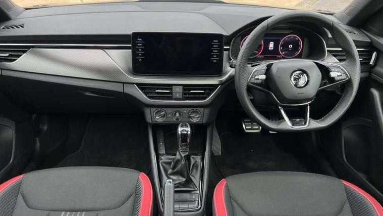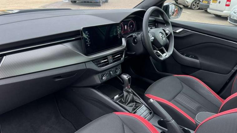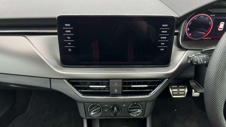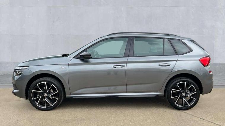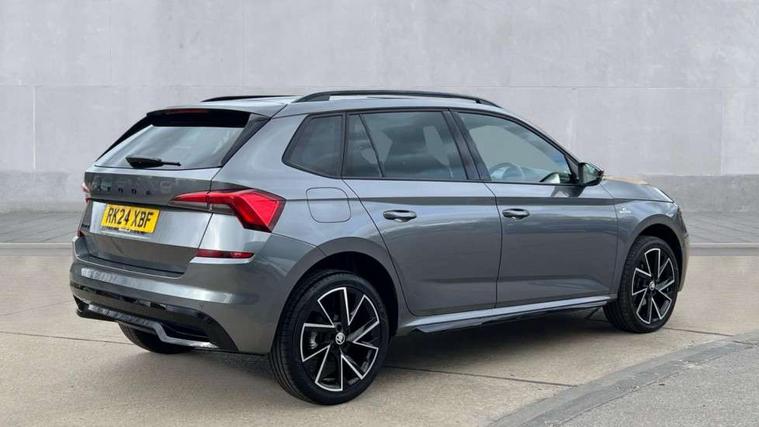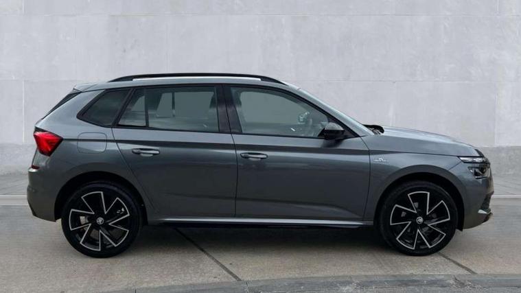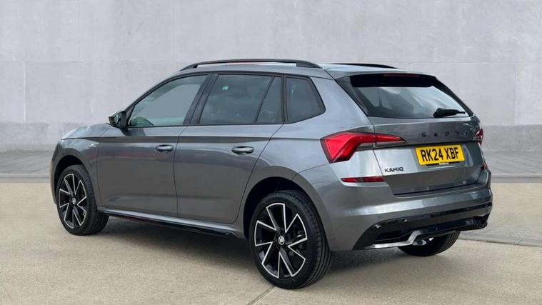 Amundsen satellite navigation with 9.2" glass colour touchscreen display, web radio, voice control and traffic sign recognition, Bluetooth system, E-call, Front assist system, Gesture control, PAS, Service indicator, Speed limiter, Wireless Smartlink for Apple CarPlay (wired for Android Auto), 8 Speakers, Auxiliary input socket, DAB Digital radio, Black door mirrors, Black radiator grille, Black rear diffuser, Body colour bumpers, Body colour door handles, Body colour roof spoiler, Boot lettering in black, Chrome grille surround, Dimming rear view mirror with black surround, Electrically adjustable and heated door mirrors, Fixed panoramic sunroof with black roof rails, Front and rear electric windows, Front sport bumper, Full LED headlights with adaptive front light system, cornering function, fog lights and dynamic indicators, Headlight range control, Heated rear window, High functionality rear led lights with dynamic indicators, KAMIQ Door sills, LED daytime running lights, LED third brake light, Light sensors, Monte carlo plaque, Privacy glass, Rain sensor, Rear fog lights, Rear side wing doors, Rear wiper, 12V Accessory socket in centre console, 3 seat bench in 2nd row, Aluminium pedals, Black ceiling for black/beige interior, Black roof lining, Chrome inner door handles, Cloth upholstery, Front head restraints, Glove compartment with illumination, Ice scraper, Isofix child seat fittings on outer rear seats, ISOFIX on front passenger seat, Leather gear lever, Manual lumbar support for front seats, Rake/reach adjustable steering wheel, Reading lights, Single front passenger seat, Sports seats, Sun visors with illumination on front passenger, Textile floor mats, Third rear headrest, Top tether for front passenger seat, Umbrella in driver's door, 3x3 point rear seatbelts, Airbags - driver and front passenger, ESP, Front passenger airbag deactivation switch, Front side airbags with curtain airbags, Hill hold control, Manual parking brake, Manual rear child locks, One tone horn, Rear disc brakes, Seatbelt reminder for driver an co-driver, Traction control, Tyre pressure monitor, Anti-theft alarm system with interior monitoring, backup horn, towing protection and remote central locking with SAFE system, Anti-theft wheel bolts, Electronic engine immobilizer, Chrome air vent surrounds, 18" Vega alloy wheels in black,