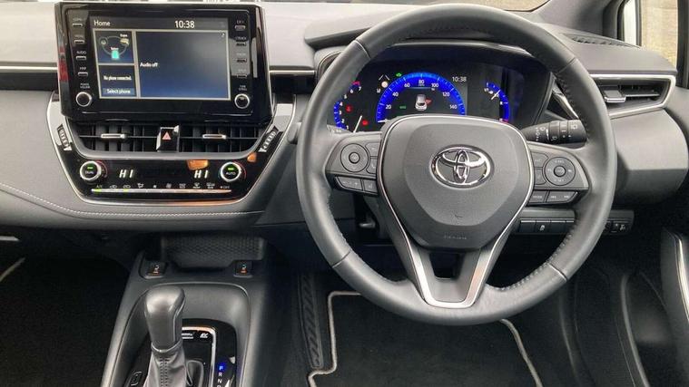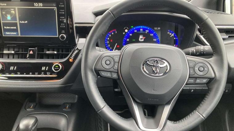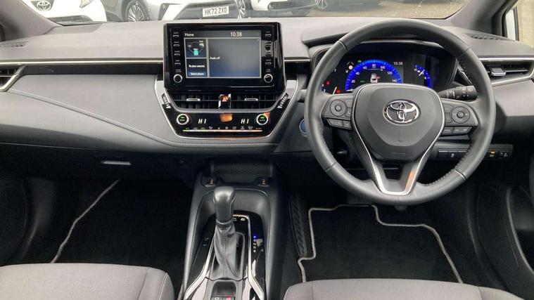 7" Multi information display screen, Bluetooth telephone connectivity, Connected car functionality upgrade, tracker, remote status and e-care, Dynamic radar cruise control (with RSA) including switch on steering wheel, E-call, Electrically assisted power steering, EV drive indicator, Lane Departure Alert (LDA) switch on steering wheel, Memory on adjustable speed limiter, Push button start, Reversing camera, Smartphone integration with Apple CarPlay and Android auto, Gasoline particulate filter, Vehicle Stability Control (VSC), 6 speakers, 8" Touchscreen with MM19 Multimedia system and voice recognition, AM/FM radio, DAB Digital radio, USB and Aux in connectors + 12V front outlet, Anti-jam protection on power windows, Auto up and down function on all power windows, Automatic headlights with high beam assist, Black metallic surround on lower front grille, Black toyota logo in front, Black window frames, Body colour rear spoiler, Body coloured bumpers, Body coloured door mirrors, Body coloured outside door handles, Follow me home headlights, LED daytime running lights, LED front fog lights, LED Headlights, LED High mounted stop light, Manual day/night rear view mirror, Power adjustable heated door mirrors, Power front windows, Power rear windows, Rain sensor, Rear side wing doors, Rear window defogger, Rear window wiper, Shark fin antenna, Time adjustment on intermittent wiper, Turning signal integrated indicators in door mirrors, Unique lower skirt, Unique side rocker with black insert, UV-filter on driver and passenger windows, 3 rear headrests, 3 seat bench in 2nd row, 3 spoke leather steering wheel + gear knob, 60/40 split folding rear seat, Adjustable speed limiter switch on steering wheel, Audio, multimedia and telephone switches on steering wheel, Boot light, Centre room light, Clean air filter, Driver and front passenger personal light, Driver and passenger assist grip, Driver and passenger sun visor with mirror and light, Dual zone automatic air conditioning with ECO mode switch, Fabric armrests, Front and rear cup and bottle holders, Front door pockets, Front head restraints, Front passenger seat, Heated driver and front passenger seats, Illuminated entry system in room lamp, ISOFIX seat fixing (2 fixings on rear outer seats), Leather gear shift with satin chrome on gear shift console, Manual height adjustable for driver and front passenger seat, Parcel shelf, Passenger seat back pocket, Pollen filter, Power adjustable lumbar support on driver seat, Power window switches with satin chrome inserts, Quilted fabric upholstery with grey stitches seats, Rear armrest with 2 cupholders, Rear passenger coat hooks (2), Satin chrome inside door handles, Shopping bag hooks in luggage compartment, Sliding armrest on centre console box, Slow opening glovebox with lights, Tilt/telescopic steering column, Voice recognition switch on steering wheel, Whiplash Injury Lessening (WIL) feature (active headrest) for seats, Toyota safety sense 2 pack - Corolla, 3x3 point rear seatbelts, Adjustable driver and front passenger seat belt extender to top anchor point, Anti lock braking system + Electronic brake force distribution, Brake assist function, Child locks on rear doors, Downhill Assist Control (DAC), Electronic parking brake, Emergency brake light signal (EBS), Front passenger airbag on/off switch, Front seatbelt reminder, HAC - Hill start assist control, Rear seat belt reminder, Seatbelt pretensioners and force limiters, Supplemental restraint system (SRS) 7 airbags - dual driver, dual side curtain, side impact and driver knee airbags, Traction control, Tyre pressure warning system, Acoustic vehicle alert system (AVAS), Alarm with motion sensor and immobilizer, Remote central locking + deadlocks, Satin chrome dash trim, Soft touch texture on upper dashboard, Unique wheel finish with red wheel cap,