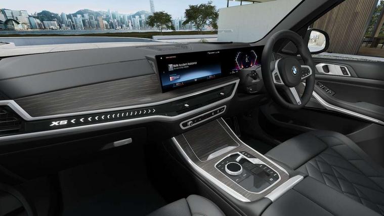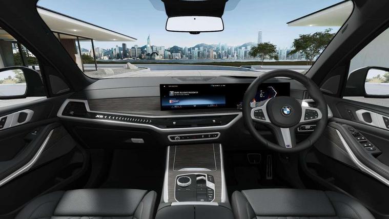 Attentiveness assist, Automatic tailgate operation, BMW ConnectedDrive online services, BMW live cockpit + with curved 12.3 instrument cluster/14.9 central display, nav/Tuner with diversity reception, RDS/4GLTE/remote software upgrade, BMW Recovery system, BMW Teleservices, Condition based service, Cruise control with brake assist, eCall emergency call system, Enhanced bluetooth with wireless charging, Integrated owner's handbook, PAS, Speed limiter, Wi-Fi hotspot, Drive performance control with ECO PRO comfort + sport mode, Eight speed steptronic sport automatic transmission and gearshift paddles on the steering wheel, Adaptive LED Headlights, Front and rear electric windows, High beam assistant, High gloss black shadow line roof rails, LED daytime running lights, Rain sensor, Rear side wing doors, Third brake light in rear spoiler, Variable intermittent rear wash/wipe, 12V - Power sockets with 2x centre console and 1x luggage compartment, 3 seat bench in 2nd row, Entry sills illuminated BMW inscription front and rear, Foldable rear centre armrest with 2 cupholders and storage compartment, Front and rear side armrest integrated into door trim, Grab handles in 1st and 2nd row of seats with Integrated in headliner, at rear with coat hooks, plastic, Headrests for all seats, Luggage compartment separating net, Lumbar support with height and depth adjustment in backrest, Single front passenger seat, Sunvisors with illuminated vanity mirrors and ticket pocket, Three spoke sport M leather steering wheel, Velour floormats, Ambient light interior pack - X5, Driving assistant pack with radar based driver assistance system - X5, Expanded exterior mirror pack - X5/X5 M, M aerodynamics pack - X5, Parking assistant pack - X5, 3 rear seatbelts, Active protection, Airbags - driver/front passenger, rear and side, first and second row seats head airbags, front passenger seat airbag deactivation + knee airbag, Anti-lock braking system (ABS), Automatic Stability Control (ASC), Brake energy regeneration, Cornering brake control (CBC), Crash sensor activating central locking release, hazard warning lights, fuel cut off, interior lighting + activation of safety battery terminal clamp, DSC - Dynamic Stability Control, Dynamic Traction Control - DTC, Electromechanical parking brake with automatic drive away release and auto hold function, Electronic brake force distribution, Hill start assistant, M Sport blue painted brake calipers with 'M' designation, Mechanical child proof lock on rear doors, Tyre pressure monitoring system, Tyre pressure sensors, Ventilated front and rear disc brakes, Warning triangle and first aid kit, Alarm system, Closing system with central locking, Comfort access system, Locking wheel bolts,