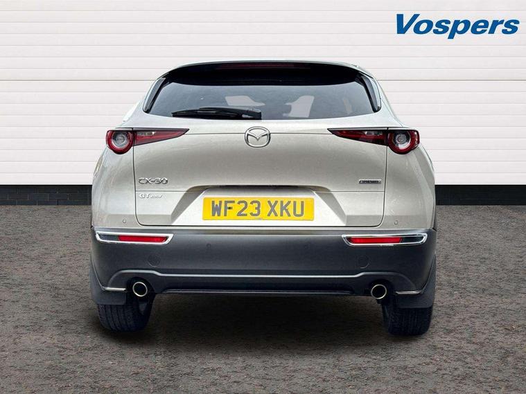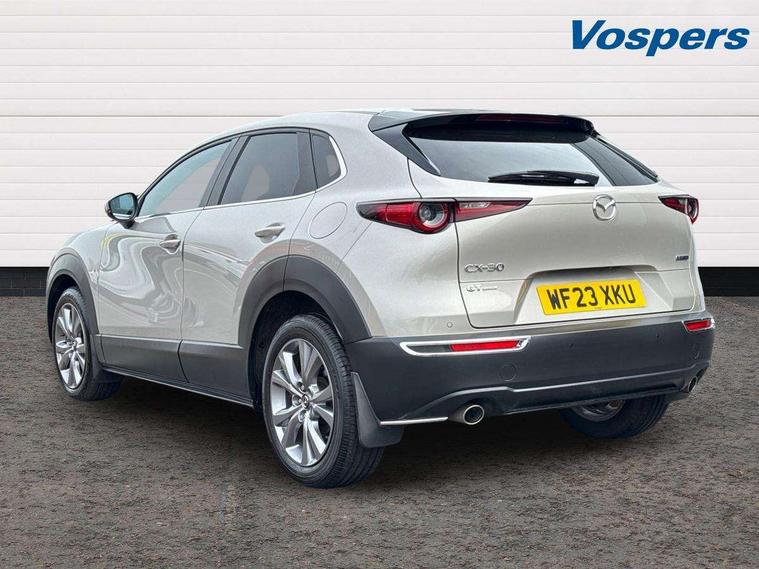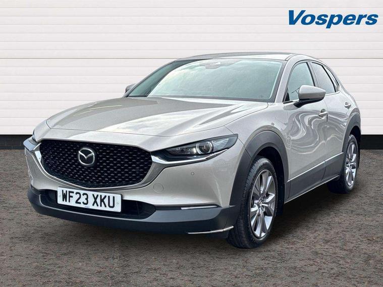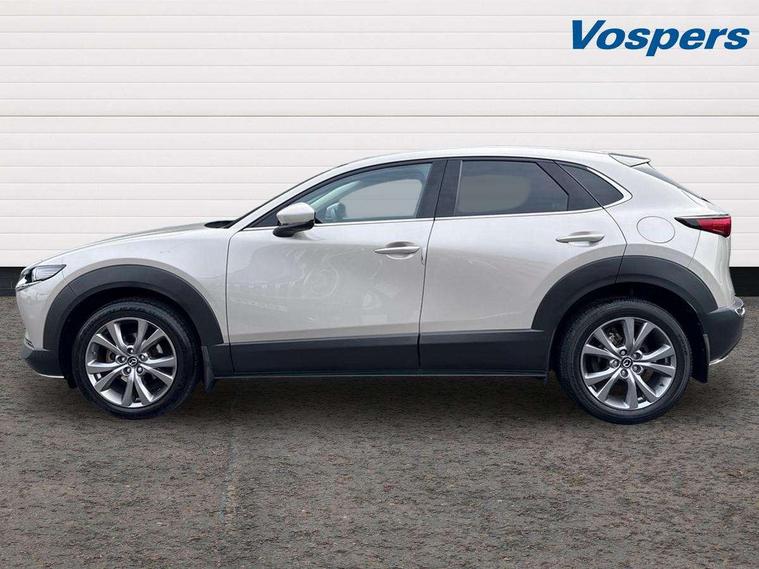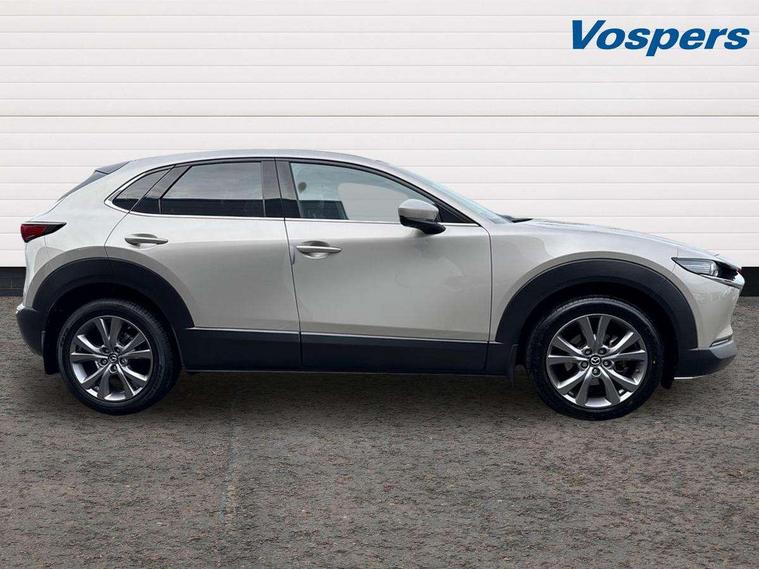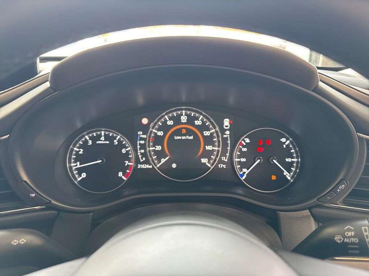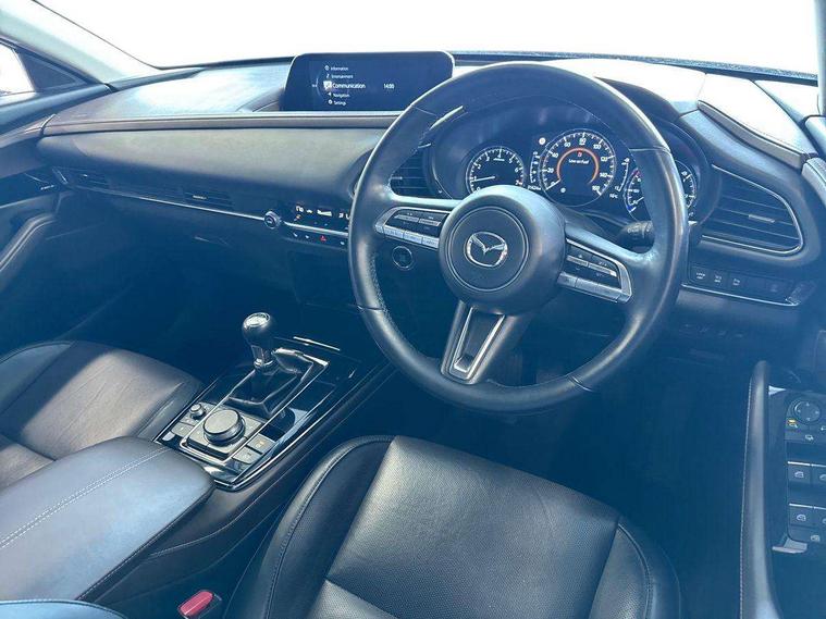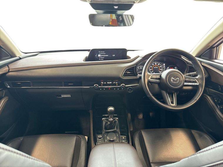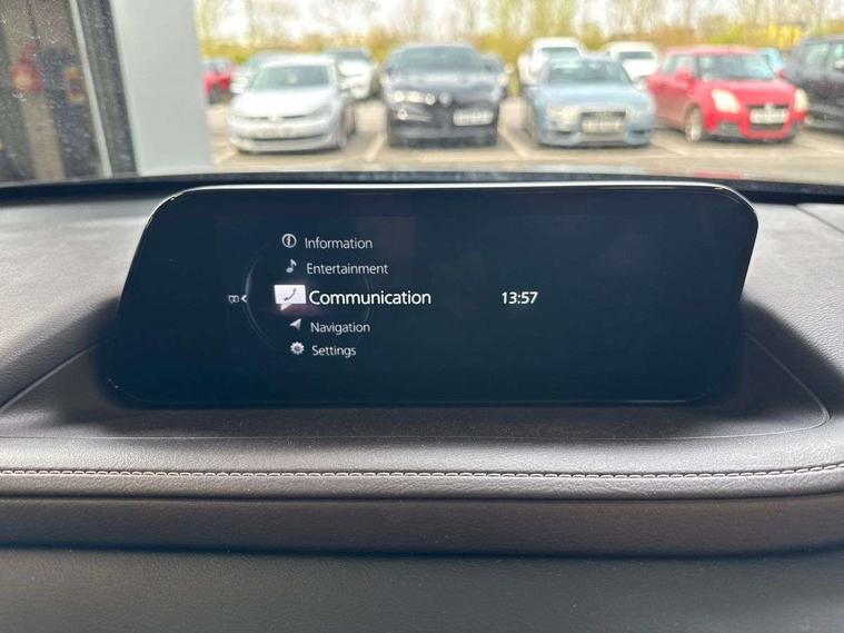 7" TFT Colour driver instrument panel display, 8.8" Colour centre touch screen display with Mazda Connect infotainment, Adaptive cruise control (Mazda radar cruise control), Apple car play/Android Auto, Blind spot monitoring with rear cross traffic alert, Driver attention alert system, E-call with GPS, Emergency stop signalling system, Engine start/stop button, Front and rear parking sensors, Integrated bluetooth, Integrated Mazda navigation system, Intelligent speed assist, Lane keep assist system (LAS) with Lane departure warning system (LDWS), Mazda connected services, PAS, Power lift gate, Reversing camera, Service indicator, Tailgate, Traffic sign recognition, Trip computer, Windscreen projected colour active driving display (HUD), Cylinder Deactivation, i-stop, 2 USB charging ports in front inner central armrest, AM/FM and DAB radio, Bose surround sound system with 12 Speaker, Bose center point, Bass match and audio pilot technology, Multimedia Commander including separate volume dial, Steering wheel mounted audio/bluetooth controls, Auto dimming driver's door mirror, Auto headlight levelling, B-pillar and C-pillar garnishes in piano black finish, Body coloured, electrically adjustable, heated auto power folding door mirrors with integrated indicators, Chrome finish signature wing in front grille, Coming/leaving home lighting function, Door mirrors with adjustable memory and tilt-down function when reversing, Dual chrome exhaust, Dusk sensing headlights, Electric front/rear windows with one touch auto up/down, Frameless auto dimming interior rear view mirror, Front kodo turn signal, Gloss black front grille, Gloss black rear roof spoiler, High beam assist, LED Headlights, LED signature daytime running lights, Privacy glass (rear side windows and rear screen), Rain sensing front wipers with adjustable speed and intermittent wipe, Rear fog lights, Rear side wing doors, Rear wiper, Signature LED rear combination lights, Third brake light, 12V power outlet in centre console, 3 seat bench in 2nd row, 60/40 split fold down rear seats, Chrome horn pad ring, Chrome interior trim accents with steering wheel centre bezel, surround of engine start / stop button and glove box handle, Dashboard, door cards and front centre armrest in rich brown leather, Driver and front passenger visors with covered vanity mirror and driver ticket holder, Driver's seat, power tilt, slide, recline, height and lumbar adjustment, Driver, front passenger and two rear door storage, Driver, Front passenger and two rear grab handles with coathooks, Dual zone climate control air conditioning with rear air vents, Folding rear centre armrest with two cup holders, Front and rear (x3) head restraints, Front and rear LED lighting, Front armrest, Front centre storage with two cupholders with lid, Front passenger seatback pockets, Front passengers seat manual slide, recline and height adjustment, Gear shift indicator, Glovebox illumination, Heated front seats with 3 stage setting, Heated steering wheel, ISOFIX child seat anchorage points attached on outer rear seats, Leather upholstery with interior accents, Leather wrapped gear shift knob, Leather wrapped steering wheel with telescopic and tilt adjustment, LED luggage compartment lighting, Light roof headlining and pillars, Rear armrest inner material in cloth, Roof mounted sunglasses holder, Single front passenger seat, 3 point ELR front seat belts x2 with pretensioners, 3 point ELR rear seat belts, Anti-lock braking system (ABS), Drivers knee airbag, DSC - Dynamic Stability Control, Electronic parking brake with auto disengage function and auto hold function, Front and rear curtain airbags, Front dual stage driver and single stage front passenger airbags, Front passenger airbag cut-off switch, Front side airbags, Front smart city brake support, G-Vectoring control plus, Hill launch assist, Manual child lock in rear doors, Mild Hybrid system with regenerative braking, Seatbelt reminder for driver/front passenger and rear seats, Traction control system (TCS), Tyre pressure monitoring system (TPMS), Remote central locking with deadlocking and automatic door lock when driving, Smart keyless entry, Thatcham accredited alarm and immobiliser, Dark vinyl door panel inserts, 18" Silver alloy wheels, Emergency tyre repair kit,