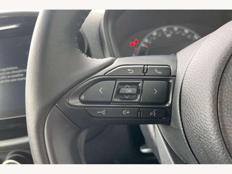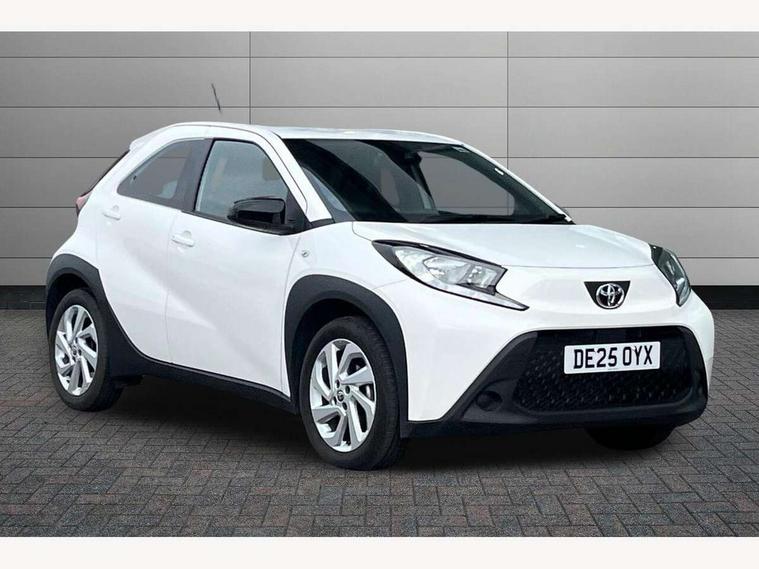 4.2" TFT colour screen, Adjustable speed limiter, Analogue speedometer, Bluetooth connectivity, Digital tachograph, Driver attention alert system, eCall emergency call system, ECO-driving indicator, Electric power steering, Intersection turn assist, Key reminder warning, Noise reduction kit, Pre collision system with emergency steering assist, Reversing camera with static guide lines, Smart phone integration with Apple car play/Android Auto, Speed limit display, Start and stop, Vehicle Stability Control (VSC), 4 speakers, 9" HD multimedia display touch screen with Toyota smart connect, DAB digital audio broadcast, USB connector, Auto headlights, Automatic headlights cut-off, Bicycle towing hook, Black lower front grille, Black rear bumper, Black side protection mouldings, Black upper front grille, Black wheel arch mouldings, Body colour door handles, Body coloured front bumper, Boot door scuff plate, Electric heated door mirrors, Follow me home headlights, Front power windows, Gloss black door mirrors, Headlight cut-off reminder, LED daytime running lights, LED front light guide, LED High mounted stop lamp, Manual day/night rear view mirror, Manual headlight levelling, Pagoda roof, Power adjustable door mirrors, Power back door, Projector halogen headlights, Rain sensor, Rear combination lights LED bulb type, Rear side wing doors, Rear windscreen defogger, Rear windscreen wiper, Short antenna, Variable intermittent windscreen wipers, 12v power outlet - front, 2 seat bench in 2nd row, 3 spoke leather steering wheel, 50/50 split folding rear seat, Adhesive roof headlining, Adjustable speed limiter switch on steering wheel, Audio and telephone switches on steering wheel, Black insert on steering wheel, Boot light, Centre room light, Chrome interior door handles, Chrome surround on air conditioning buttons, Clean air filter, Fabric upholstery, Floor mats, Front and rear cup holders, Front head rest deco art, Front head restraints, Gear shift indicator, Height adjustable driver seat, Intelligent adaptive cruise control switch on steering wheel, ISOFIX child restraint system on rear seats, Lane departure alert switch on steering wheel, Leather gearshift knob, Light grey roof lining, Manual air conditioning, Manual tilt steering wheel, Manually reclining and sliding driver seat, Manually reclining and sliding front passenger seat, Multimedia switches on steering wheel, Pollen filter, Rear door pockets, Rear head restraints, Resin console box storage, Satin silver insert on gear shift knob, Silver stitching on gear shift knob, Single compartment glovebox with lights, Single front passenger seat, Soft tonneau cover, Sun visors with mirror on driver and passenger side, Voice recognition switch on steering wheel, Toyota safety sense pack - Aygo X, Anti lock braking system + Electronic brake force distribution, Child safety door lock, Emergency brake light signal (EBS), Hill start assist control (HAC), Passenger airbag on/off switch, Seat belt reminder for front and rear seats, Supplement restraints system (SRS) - 6 airbags, Traction control, Tyre pressure warning system, Immobiliser, Remote power door locks, Black air vent surround, Black wheel centre caps, Tyre repair kit,