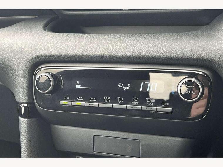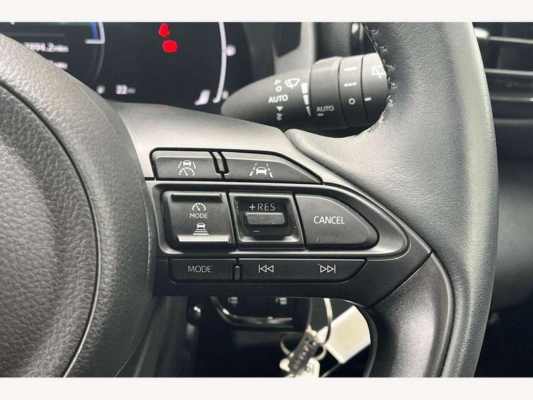 7" Digital Combimeter, Adaptive cruise control, Adjustable speed limit with speed warning, Bluetooth connectivity, Colour binocular inspired displays with digital speedometer, E-call, Electric power steering, Hybrid energy display, Lane trace assist, Multi information display switches on steering wheel, Pre-collision system (PCS), Reversing camera, Smartphone integration with Apple CarPlay and Android auto, Tailgate, Voice recognition, Vehicle Stability Control (VSC), 4 speakers, 9" Multimedia touch display, Toyota Touch 3 system with DAB radio, USB connection, Acoustic windscreen glass, Auto high beam assist, Auto windscreen wipers, Automatic headlights, Body coloured door mirrors, Electric adjustable heated door mirrors, Follow me home headlights, Front auto power windows with anti jam protection, LED daytime running lights, LED front fog lights, LED front light guide, LED Headlights, LED High mounted stop lamp, LED Indicators, LED rear light guide, Manual headlight levelling, Painted chequered front grille, Rain sensor, Rear auto power windows with anti jam protection, Rear privacy glass, Rear roof spoiler, Rear side wing doors, Rear wiper, Shark fin antenna, Turning signal integrated indicators in door mirrors, Variable front intermittent wipers, 3 adjustable rear headrests, 3 seat bench in 2nd row, 3 spoke leather steering wheel, 60/40 split folding rear seat, Active headrests, Adjustable boot height, Auto air conditioning, Coat hooks in rear grab handles, Cup holders (2 front & door), Data Communication Module (DCM) connected services, Fabric upholstery, Front armrest, Glovebox, Grey roof lining, Height adjustable driver's seat, Isofix seat fixing, Leather gearshift, Pollen filter, Shopping bag hooks, Single front passenger seat, Tilt/telescopic steering column, 3 point seatbelts on all rear seats, ABS+EBD+Brake assist, Electronic parking brake, Emergency brake light system (EBS), Front passenger airbag on/off switch, Front seatbelt reminder, Hill start assist control (HAC), Rear child proof door locks, Rear seat belt reminder, Supplemental Restraint System (SRS) 8 airbags: Driver & passenger's airbags, dual side curtain airbags, side impact airbags, front centre airbag, Toyota Safety Sense 3 with over the air updates, Tyre pressure warning system, 2x Master key, Alarm/immobiliser, Remote powered central double locking doors, Soft touch instrument panel, Space saver spare wheel,