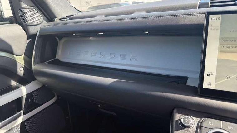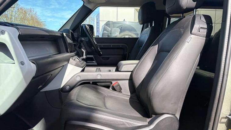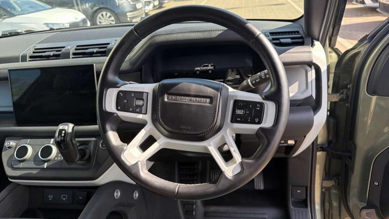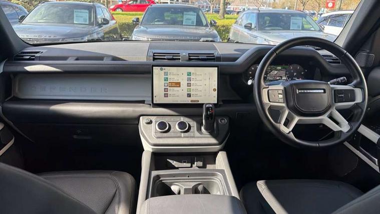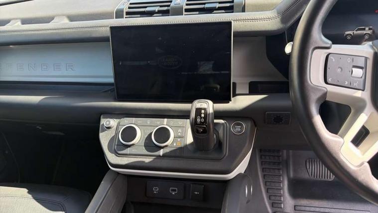 11.4" touchscreen, 360 degree parking aid, 3D Surround Camera with 360 View, 180 Rear View, Front Traffic Detection, Forward Vehicle Guidance, Tow Hitch Assist and clear sight Ground View, Adaptive cruise control, Android Auto, Apple CarPlay, Assisted tailgate with soft close, Blind spot assist, Bluetooth system, Brake pad wear indicator, Clear exit monitor, Connected navigation pro, Driver condition monitor, Electric power assisted steering (EPAS), Interactive driver display, Lane keep assist, Push button start, Rear collision monitor, Rear traffic monitor, Traffic sign recognition with adaptive speed limiter, Trip computer, Wade Sensing, 8 speed automatic transmission, All wheel drive system, Twin speed transfer box, DAB Radio (Digital Audio Broadcasting), Pivi pro connected, Auto dimming interior rear view mirror, Automatic headlight levelling, Automatic headlights, Centre high mounted stop light, Electric heated/power fold door mirrors with approach lights and auto dimming driver side, Electric windows with one touch open/close and anti-trap, Follow me home lighting, Front fog lights, Heated rear window with timer, Heated windscreen, LED tail lights, Panoramic rear side glass, Puddle lights, Rain sensing windscreen wipers, Rear fog lights, Rear wiper, Side hinged tailgate, Standard treadplates, Trailer stability assist, 12V power socket in loadspace, 14 way heated and cooled electric front seats with driver memory and 4 way manual headrests, 3 seat bench in 2nd row, Alpine lights, Configurable cabin lighting, Durable rubber cabin flooring, Durable rubber loadspace flooring, Electric reach + rake adjustable steering column, Extended leather upgrade, Footwell lights, Heated steering wheel, Loadspace cover, Loadspace Hook, Manual Tip & Slide front passenger seat, Multifunction steering wheel, Overhead stowage for sunglasses, Premium cabin lighting, Rear headrests, Rear ISOFIX, Rear reading lights, Removable Loadspace storage tray, Row 2 seats with forward folding seat base, Single front passenger seat, Standard seat configuration, Storage glovebox, Sunvisors with illuminated vanity mirrors, Online pack with data plan - Defender, 5 x 3 point seatbelts, ABS, Brake hold function, Cornering brake control (CBC), Customer configurable autolock, DSC - Dynamic Stability Control, EBD - Electronic brakeforce distribution, Electric parking brake (EPB), Emergency brake assist, Emergency braking, ESP + traction control, Front airbags with passenger seat occupant detector, HDC - Hill descent control, Hill launch assist, Low traction launch, Remote for (e-Call, Optimised assistance call, InControl app, Climate, beep and flash and door), RSC - Roll stability control, Seat belt reminder, TPMS (Tyre pressure monitoring system), Alarm, Immobiliser, Intrusion sensor, Keyless entry, Locking wheel nuts,