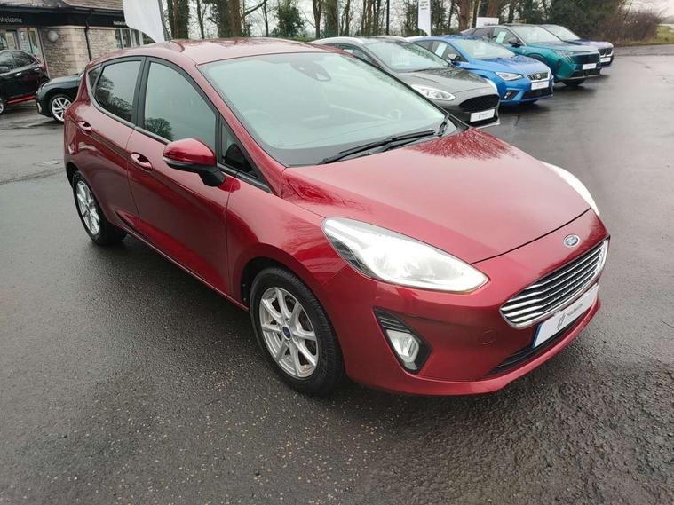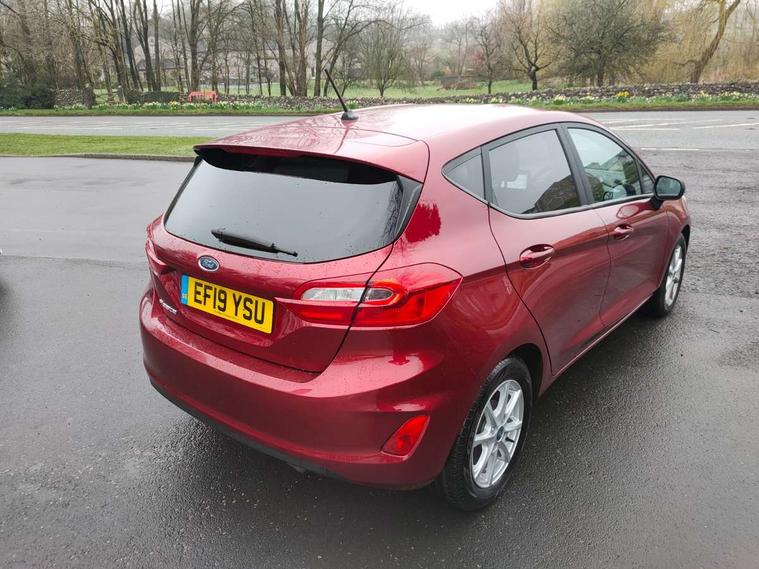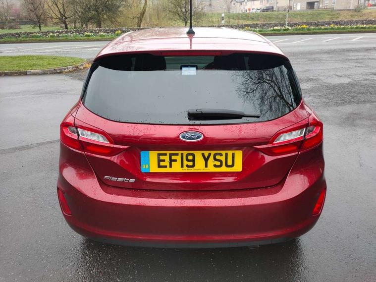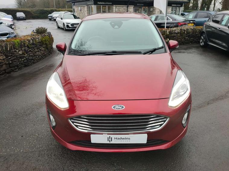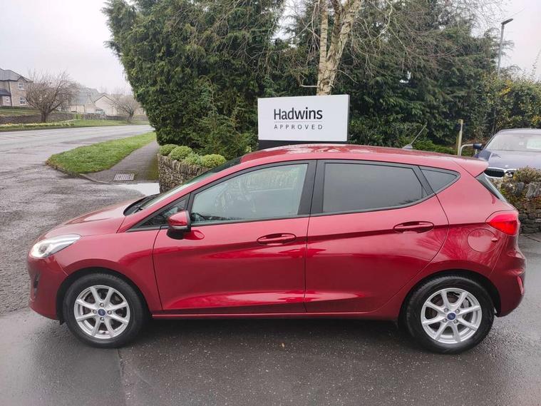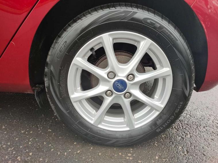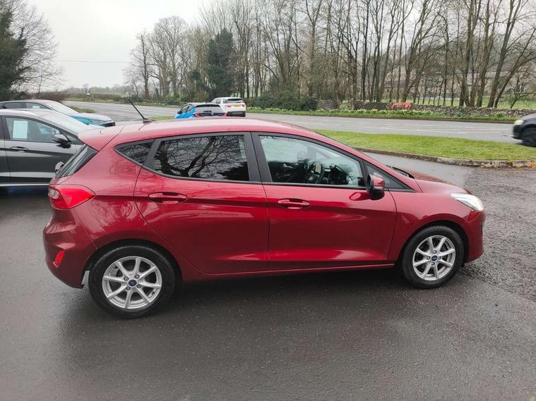Bluetooth system, Electric power steering, Ford easy fuel, Trip computer, 2 USB ports, Auxiliary input socket, DAB Digital radio, Steering wheel mounted controls, Automatic headlights, Body colour bumpers, Body colour door handles, Body colour electric adjustable heated door mirrors with integral indicators, Body colour rear spoiler, Chrome beltline trim, Cornering front fog lights, Electric front windows/one touch facility, Halogen projector style headlights with static cornering lights + LED daytime running lights, Quickclear heated windscreen, Rear wiper, Tinted glass, Upper front grille chrome surround, 12V Accessory socket in centre console, 3 spoke leather trimmed steering wheel with audio control, 60/40 split folding rear seat, Adjustable head restraints, Boot carpet, Chrome inner door handles, Cloth upholstery, Footwell illumination, Front map reading lights, Front seat and rear pockets, Height adjustable driver's seat, Illuminated glovebox, Leather gear knob, Leather trimmed handbrake handle, Load area light, Luxury woven headliner, Manual air conditioning, Overhead console with sunglasses holder, Pollen filter, Rake/reach adjustable steering wheel, Rear centre head restraint, NCAP Pack - Fiesta, 3 point seatbelts on all rear seats, ABS+EBA, Curtain airbags, Driver and passenger airbags, Drivers knee airbag, Electronic stability control with hill start assist, Front passenger airbag deactivation, Front side airbags, Seatbelt warning, Tyre pressure monitoring system, MyKey system, Remote central locking & engine immobiliser, Thatcham Cat.1 alarm,