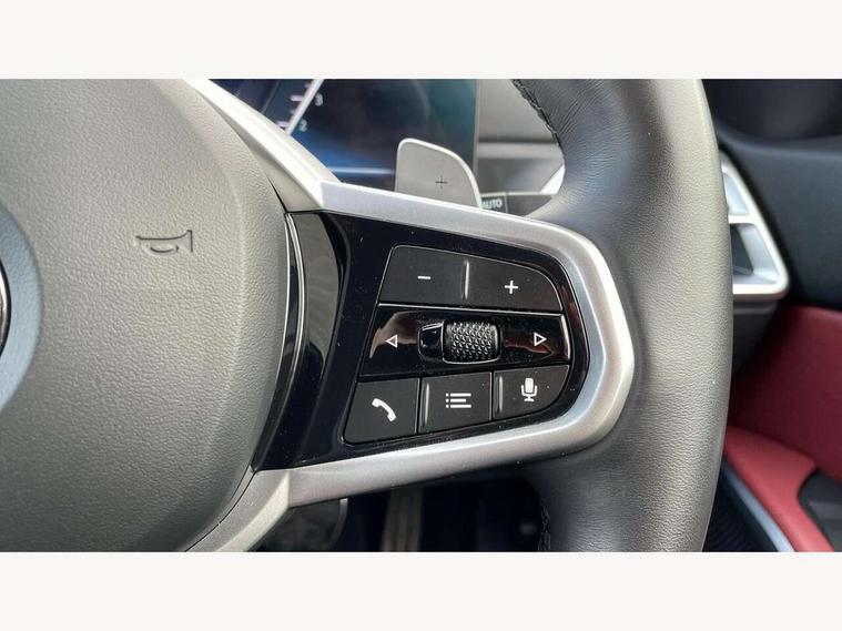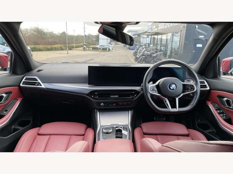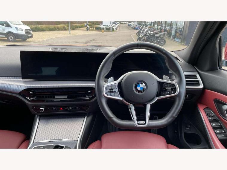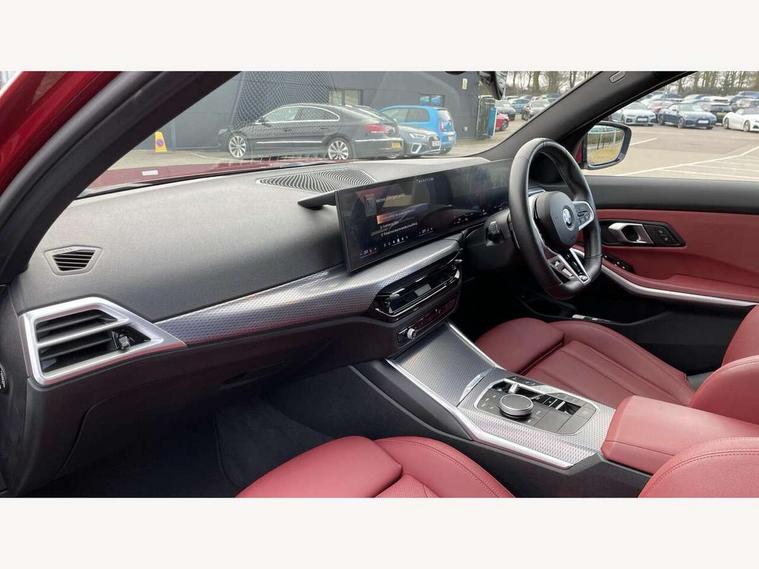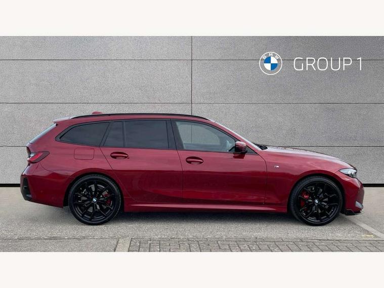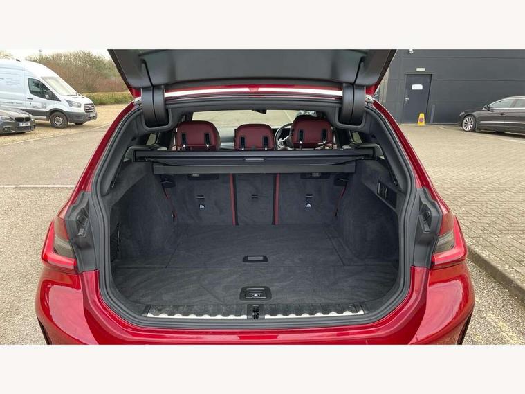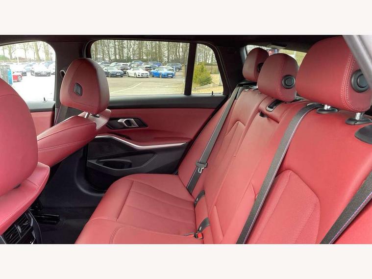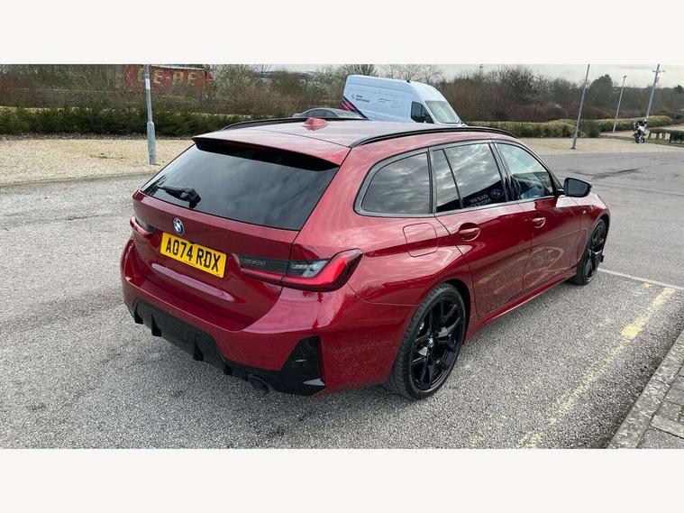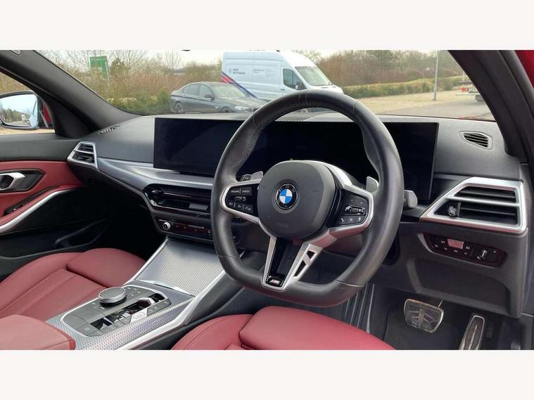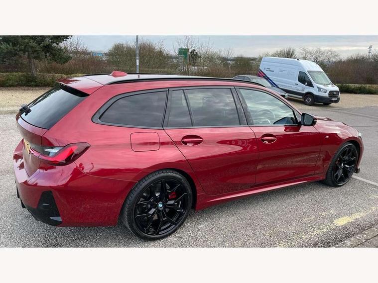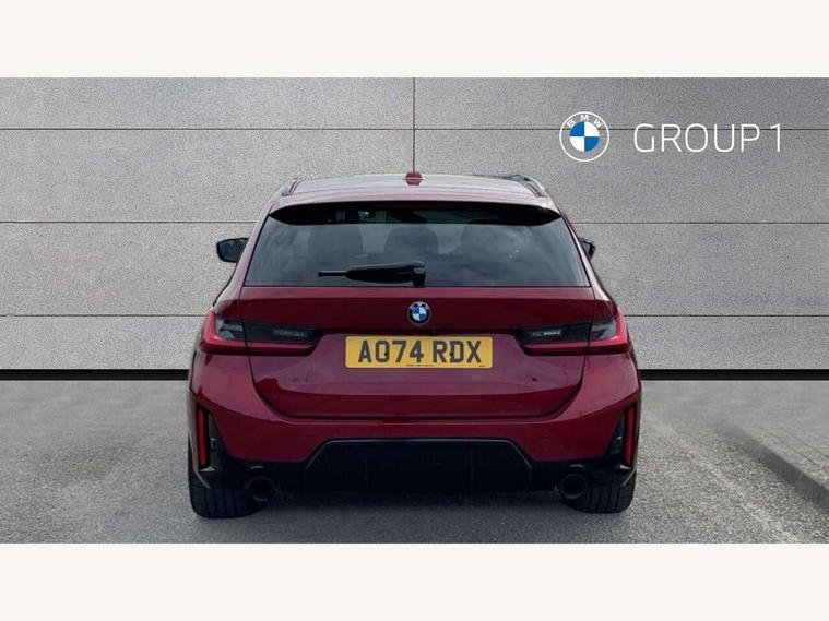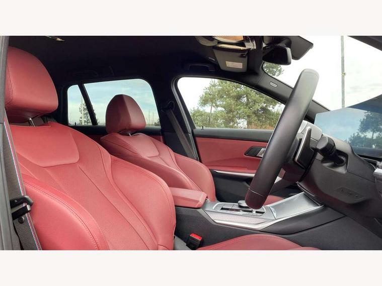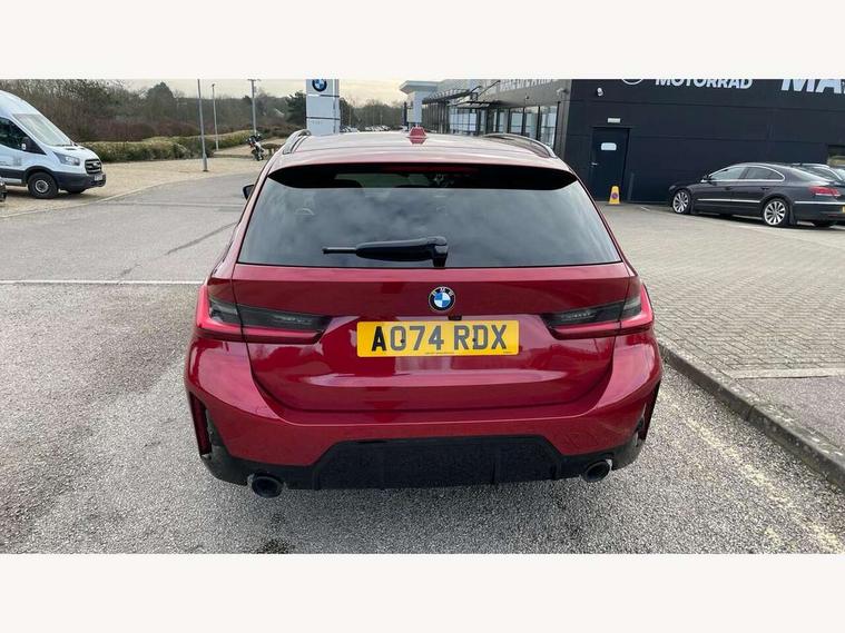 Active guard plus, Attentiveness assist, Automatic Start/stop button, Bluetooth Wi-Fi interface, BMW iDrive, BMW Teleservices, ConnectedDrive Services - last state call, Electric bootlid, Live cockpit plus with Navigation + 12.3" instrument display + 14.9" display, Intelligent voice assist, 2 USB, 4G LTE connect, Oil sensor for level and grade, Personal e-SIM, Shifting point display, Variable sport steering, Double joint spring strut front axle, Electronic differential lock control (EDLC), Fuel tank breather system, Sport automatic transmission with steering-wheel mounted gearshift paddles and launch control, DAB tuner, 3rd brake light, Auto dimming rear view mirror, Automatic headlight beam throw control with load dependent regulating reaction, dynamic compensation of braking dive and acceleration squat, Bi-LED Low and high beam headlights, BMW emblem, engine compartment lid and tailgate, Body colour roof fin, Door sill strips, Electric windows - front and rear, with open/close fingertip control, anti-trap facility and comfort closing, Fading support, Follow me home headlight function, Front and rear bumper system with replaceable deformation elements, Front apron plastic in body colour, Fuel filler flap - right rear in body colour, Heat protection glazing on front windows and windscreen, Heated washer jets, High gloss chrome kidney frame with high gloss black kidney struts, High gloss shadow line roof rails, LED daytime running lights, LED rear lights, LED turn indicator, Licence plate panel integrated into front bumper and tailgate, M high gloss shadow line exterior trim, Matt black B-pillar finsher, Matt black window recess cover, One piece front bumper cover including towing eye cover in body colour, Rain sensor with automatic headlight activation, Rear side wing doors, Rear wiper, Reversing lights, Side frame decorative moulding black matt, Trailer stabilisation logic, Visible exhaust tailpipe finisher, Welcome lights in interior and door handle area, 12V power socket in front storage compartment, 2 front cupholder in centre console with clamping elements and matt black inlay, 3 seat bench in 2nd row, 3 spoke M Sport multifunction flat bottom leather steering wheel, 3 zone automatic air conditioning, 40:20:40 split folding rear seat with loading system, Anthracite headlining, Armrest integrated in front and rear door trim + front centre console armrest, BMW ID, Cruise control operation in steering wheel, Driving experience mode switch, Folding rear centre armrest with 2 cupholders, Front and rear headrests, Front and rear velour floor mats, Front footwell lighting, Front reading light, Heated front seats, Height adjustable mechanically and infinitely variable steering column, Illuminated armrest storage compartment, Illuminated glove compartment, Illuminated luggage compartment, Lashing eyelets in luggage compartment, Single front passenger seat, Sunvisors with illuminated vanity mirrors and ticket pocket, Toolkit located in luggage compartment, Connected pack professional - 3 Series Saloon/Touring, Interior and exterior mirror pack - 3 Series Touring/Saloon, M sport exterior styling pack - 3 Series Saloon/Touring, Parking assistant pack - 3 Series, 3x3 point rear seatbelts, BMW emergency call, Child locks on rear doors, Crash sensor activating of airbags, Unlocking doors, hazard warning lights, interior light, safety battery terminal, Drive-off assistant, Driver and front passenger with seat occupancy detection for driver's and passenger side, Driver and passenger side airbags, body protection at side and airbags deploy from seat backrests, Dry braking, Dynamic brake control, Dynamic stability control + (DSC+) - Anti-lock Braking System (ABS) with brake assist and cornering brake control + Automatic Stability Control (ASC), Dynamic Traction Control - DTC, Electric parking brake including automatic hold function and automatic release of the parking brake when driving off, Front airbag deactivation, Front airbags for driver and front passenger, Head airbags in 1st and 2nd row, head protection at side, curtain airbags open from headliner above 1st and 2nd row, Plastic fuel tank, Side impact protection, Tyre pressure sensors, Ventilated front and rear disc brakes, Warning triangle and first aid kit, Alarm system, Centre lock switch, Closing system with central locking, Electronic vehicle immobiliser, Locking wheel bolts,