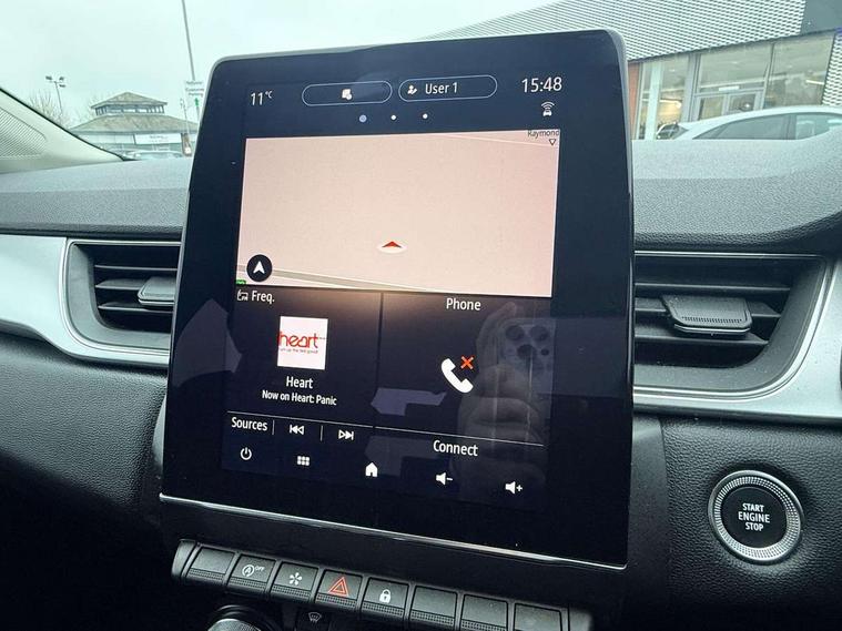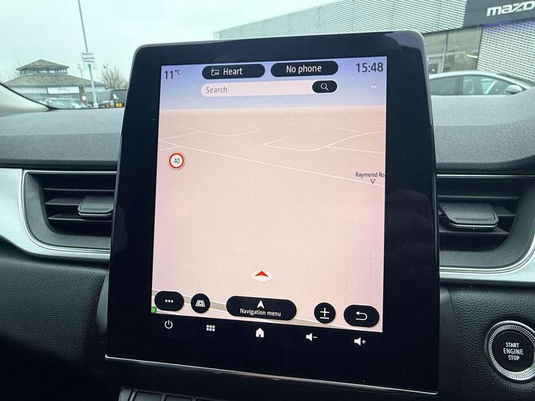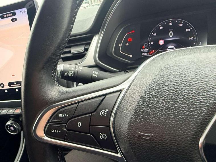 Blind spot warning, Cruise control + speed limiter, eCall emergency call system, Eco mode, Front and rear parking sensors with rear view camera, Gear change indicator, Lane departure warning system, Lane keep assist, Multisense system - Ambient lighting and Driving mode selector, Renault automatic emergency assist, Traffic sign recognition, Trip computer, Variable assistance power steering, Wireless Mobile Phone Charger, EasyLink Nav 9.3" touchscreen, 4x20W amp, FM DAB, sound auditorium, 2xUSB, 1xJack, Bluetooth, smartphone integration plus, Apple carplay/Android auto, Auto dimming rear view mirror, Automatic front wipers with rain sensors, Automatic headlights, Automatic high beam - AHB, Body colour door handles, Body coloured bumpers, Body coloured door mirrors, Electric adjustable/heated/folding door mirrors, Electric front windows + one touch + anti-pinch, Electric rear windows, Extra tinted glass in rear windows and tailgate, Full C-shape LED front and rear signature lighting with daytime running lights at the front and at the rear, Gloss black side door protection with chrome effect, LED front fog lights, Rear fog lights, Rear wiper, Roof bars, Shark fin antenna, Variable speed on front windscreen wipers, 12V Accessory socket, 3 rear headrests, 5.2L front glovebox, 60/40 split folding rear seat bench, Automatic climate control with one touch demist function, Centre console storage tray, Front head restraints, Heating system with pollen filter, Height adjustable driver's seat, Height/reach adjust steering wheel, ISOFIX child seat fixing points on rear outermost seats, Leather steering wheel, Middle console with armrest and storage, Rear air vents, 3 rear seatbelts, ABS+EBA, AEBS, Distance warning alert, Driver and front passenger, side, head and curtain airbags, Driver height adjustable seat belt, Electric parking brake with auto hold function, Electronic stability control, Front and rear no seatbelt warning sound, Front dash warning indicator in case of heavy braking, Front driver and passenger side airbag deactivation, Hill start assist, Rear door and window child locking function for rear door, Tyre pressure warning light, Anti drill door locks and locking fuel cap, Deadlocking system, Hands free keycard with push button and start/stop function, RAID (Renault Anti-Intruder Device) automatic door locking, Remote central locking with thatcham approved immobiliser, Black soft touch dashboard with black gloss air vent surrounds,
