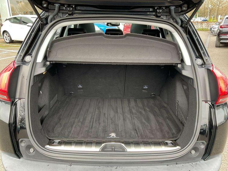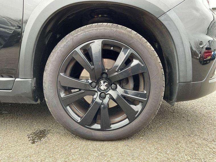 3D connected navigation + voice control, Apple car play/Android Auto, Bluetooth system, Cruise control + speed limiter, EPAS, External temperature gauge, Mirror link, PEUGEOT SOS and assistance, Rear parking aid, Reversing camera, Service interval indicator, Touch screen display, Trip computer, 4 speakers + 2 tweeters, Auxiliary socket for external device, DAB Digital radio, Steering wheel mounted remote controls, USB interface, Automatic activation of hazard warning lights, Automatic lights and wipers, Black radiator grille with high gloss black surround, Body colour bumpers, Cielo panoramic fixed glass roof with electric sunblind, Colour coded door handles, Cornering front fog lights, Electric folding door mirrors, Electric operated/heated door mirrors, Electrochrome rear view mirror, Follow me home headlights, Gloss black door mirrors, Gloss black roof bars, High gloss black fog light surround, LED daytime running lights, LED rear lights, One touch electric front/rear windows, Rear sports spoiler, Rear wash/wipe, Tinted rear windows, Wheel arch extensions, 1/3 to 2/3 split folding rear seats, 3 rear head restraints, Aluminium door sill trims, Aluminium sports pedals, Ambient light, Auxilliary 12V power socket, Carpet mats, Driver seat height adjust, Driver/passenger sunvisors and vanity mirrors, Dual zone automatic air conditioning, Front head restraints, Front passenger seat height adjust, Gear shift indicator, Height/reach adjust steering wheel, ISOFIX on outer rear seats, Leather and chrome gear knob, Leather steering wheel, Refrigerated glovebox, 3 rear 3 point seatbelts, ABS/EBFD/EBA, Child safety lock, Driver and passenger airbags, ESP with Hill Assist, Front and rear curtain airbags, Front side airbags, Grip control, Manual passenger airbag deactivation function, Seatbelt warning lamp and buzzer, Tyre pressure sensor, Remote central locking + deadlocks, Thatcham Cat 2 engine immobiliser, Ultrasonic alarm, Space saver spare wheel,