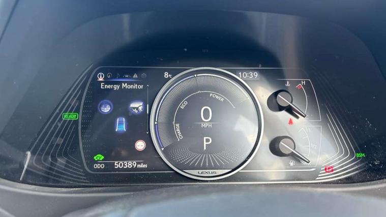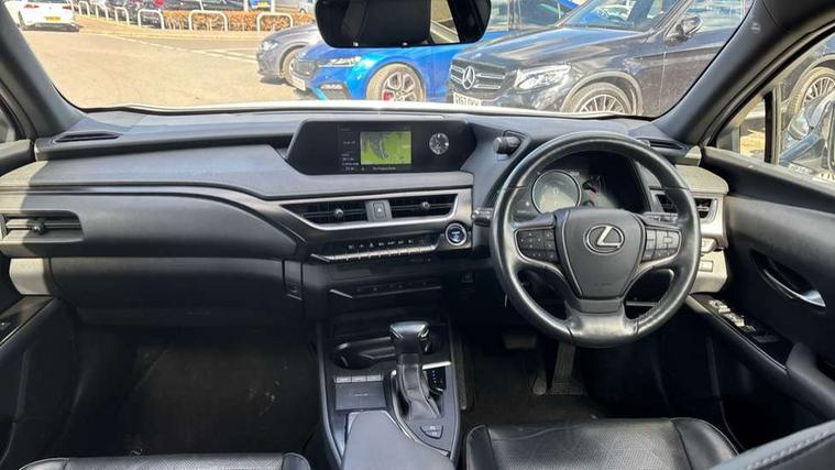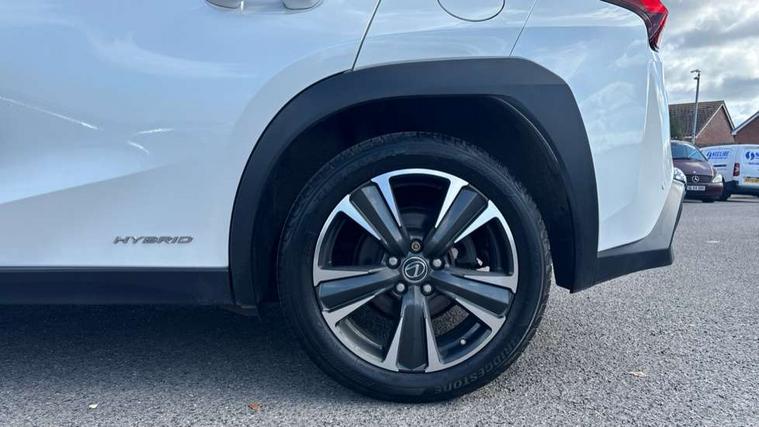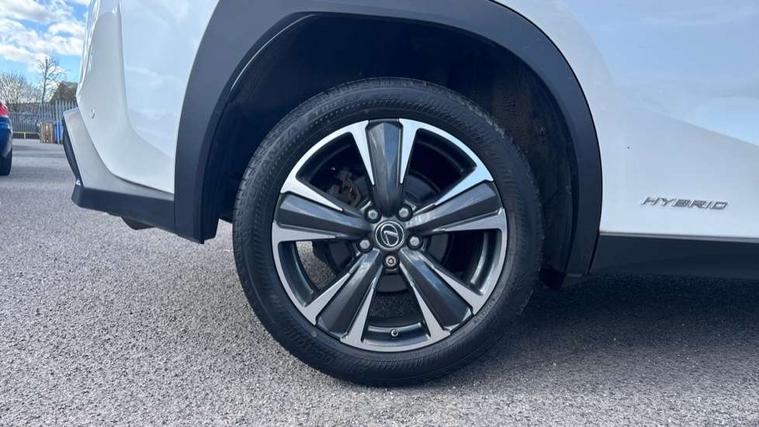 4 driving modes EV/Eco/Normal/Sport, 7" Lexus media display, 7" TFT instrument cluster, Analogue clock with GPS function, Apple car play/Android Auto, Compatible mobile phone bluetooth with audio streaming, E-call, Electric power steering (EPS) with speed sensitive features, Lane change flasher function, Lexus link connected services, Lexus safety systems + includes dynamic radar cruise control, pre collision system day and night, lane tracing assist, road sign assist, Push button start, Remote touch interface, Reversing camera with back guide lines, Trip computer, Vehicle Dynamics Integrated Management (VDIM), Vehicle Stability Control (VSC), 2 front USB and 2 rear USB charging points, 6 speakers, AM/FM and DAB radio, AUX socket with VTR compatibility, CD player, Acoustic windscreen, Aero stabilising arch mouldings, Aero stabilising rear lights, Aero ventilated wheels, Aluminium roof rails, Bi-LED (low and high beam) headlights with Auto High Beam (AHB), Body adhesive, laser screw welding and laser brazed roof structure, Electric adjustable/heated door mirrors, Front and rear one touch power windows, with anti-jam protection, Headlight cleaners, LED daytime running lights, LED front and rear fog lights, LED tail lights, Light green UV glass, Rain sensor windscreen wipers, Rear wiper, Shark fin roof aerial, Single hidden exhaust pipe, Towing preparation, 12V accessory port centre console and luggage compartment, 2 cup holders in the front and rear centre console, 2 x folding shopping bag hooks in boot, 2 x sun visors with vanity mirror and lamp, 4 x tie down hooks in the boot, 5 headrests, 6 way driver and passenger manually adjustable front seats, 60/40 split folding rear seat, Card holder installed in driver and passengers sun visors, Centre armrest with storage, Driver and passenger door pocket, Dual zone electronic climate control + Nano-E humidity sensor, Glovebox, Leather gear lever, Leather steering wheel, LED interior illumination, Map pockets in the rear of passenger's front seat, Premium fabric upholstery, Rear air vents with 2 USB chargers, Rear armrest with 2 cupholders, Storage tray under audio panel, Textile carpet mats, Tilt/reach adjustable steering column, Under deck storage, Under desk side storage, 2 x Isofix child rear seat restraints, 3x3 point rear seatbelts, Anti-lock braking system (ABS), BAS (Brake Assist System), Driver and front passenger 2 stage airbag, Driver and front passenger knee airbag, Driver/front passenger side airbags, EBD - Electronic brakeforce distribution, ECB (Electronically Controlled Brake System), Electric parking brake, Front adjustable seatbelt anchor points, Front and rear curtain shield airbags, Front outer seatbelt+pre-tensioners, force limiter+tension reduction: 3-point with active safety link to PCS, Hill start assist control (HAC), Passenger airbag cut-off device, Rear outer seatbelt+pre-tensioners, force limiter+tension reduction: 3-point with active safety link to PCS, Centre belt w/o pre tensioner+force limiter, Secondary Collision Brake (SCB), TRC (Traction Control), Tyre pressure warning, 2 x remote key fobs, Anti theft system : Alarm instruction sensor, glass breakage sensor and engine immobiliser, Locking wheel nuts, Remote central door locking, Speed sensitive auto door locking, Two motion door lock with double lock, VIN Window etching, 17" Alloy wheels, Tyre repair kit,