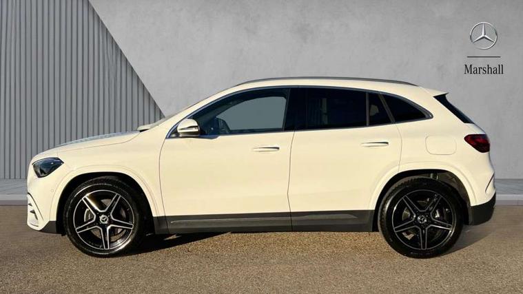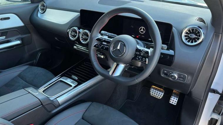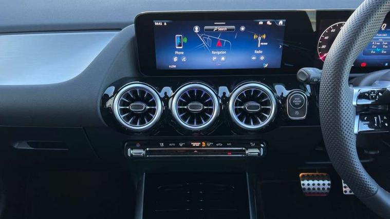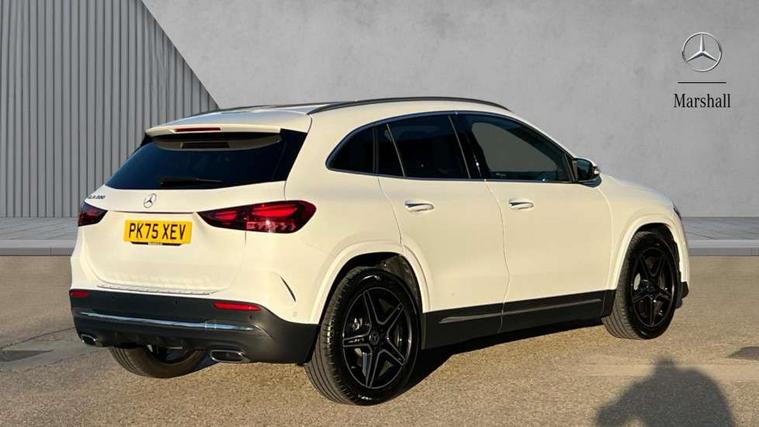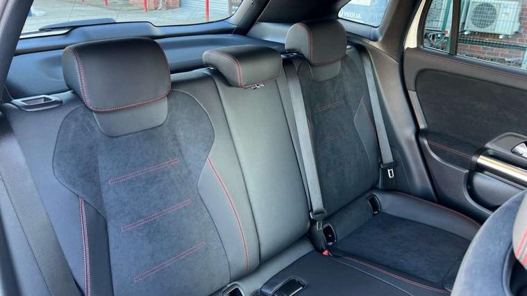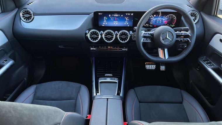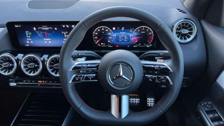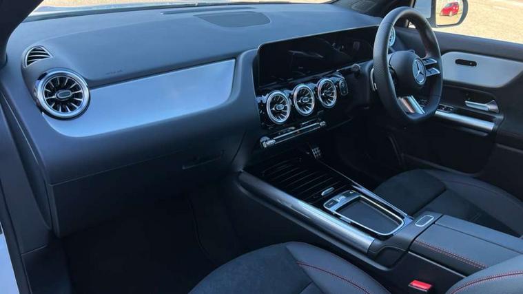 10.25 inch touchscreen central media display, 10.25" Digital instrument cluster display screen, Attention assist, Blind spot assist, Direct steering, DYNAMIC SELECT with a choice of driving modes (ECO, Comfort, Sport and Individual), ECO start/stop function, Fluid level warning indicator for fuel, oil, coolant and washer fluid, Hard-disk navigation, Hey Mercedes Voice activation, Lamp failure indicator, Lane keeping assist (LKA), Mercedes me connect including emergency call system, accident recovery, breakdown and maintenance management, Mercedes me remote services, Multi function trip computer, Outside temperature gauge, Owners manual and service booklet in English, Pre-installation of private car share, Radio aerial integrated into front and rear windshields, Service indicator (ASSYST), Smartphone integration with Apple CarPlay and Android auto, Speed limit assist, Wireless charging, Lowered comfort suspension, Rear axle multi-link, Bluetooth connectivity including audio streaming, DAB Digital radio, MBUX multimedia system, Mercedes Benz sound system (100 W) with 6 speakers, Adaptive brake lights, Adaptive highbeam assist, Aluminium roof rails, AMG front apron with front splitter in the colour of the vehicle with chrome trim element, AMG rear apron with visible tailpipe trim and chrome trim element, AMG specific/dual flow exhaust pipes in chrome (non-functional), Automatic headlamp activation, Beltline trim and window line trim strip in high gloss aluminium, Black grained side sill trim with chrome inlay, Car wash function, Dark privacy glass from B-pillar backwards, Electric front windows, Electric rear windows, Electrically adjustable and heated door mirrors with integrated LED indicators, Exhaust system with 2 Visible tailpipe trim elements and rear apron with trim in chrome, Heat insulating dark tinted glass, Heated glass rear windscreen + timer control, Interior mirror with black reading lamps and frameless, LED high performance headlamps with integrated LED daytime running lights, LED tail lights, LED third brake light, Rain sensor windscreen wipers, Rear fog lights, Rear side wing doors, Rear wiper, Wheel arch liners in the colour of the vehicle, 3 seat bench in 2nd row, 3 spoke flat bottom multifunction nappa leather steering wheel, 4 way lumbar support, 40:20:40 split folding rear seat backrests, Adjustable head restraints, Air conditioning - air vents with silver chrome surround, Air conditioning - One zone THERMATIC automatic climate control with automatically controlled air distribution, AMG floor mats, Artico man-made leather/Microcut microfibre upholstery with red contrast stitching, Auto Mercedes-Benz child seat recognition sensor, Black roof lining, Courtesy light in boot, Fluorescent jacket, Front centre armrest with stowage, Galvanished gear shift paddles on steering wheel in silver chrome, Heated front seats, Illuminated glovebox, Interior lighting - 64 colour Ambient lighting, Luggage net on driver/front passenger seat backrest, Manually height and reach adjustable steering column, Single front passenger seat, Sports pedals in brushed stainless steel with black rubber studs, Sports seats, Sports steering wheel, Stowage compartment in centre console, Stowage compartment with retractable cover, Sunvisors with illuminated vanity mirrors, Twin front cup holders, Two outer rear seat isofix and top tether child seat fixing points, Comfort seat pack - GLA Class, Interior lighting with light and sight pack - GLA, Keyless go comfort package - GLA, Mirror pack - GLA Class, Parking package with reversing camera - GLA, USB package plus - GLA, Winter package - GLA, 3 rear 3 point seatbelts, ABS with Brake Assist, Active bonnet pedestrain safety measure which detects an impact and raises bonnet by 65mm, Active brake assist includes forward collision warning system with autonomous braking, Adaptive brake assist with hold function and hill start assist, Black seatbelts, Bonnet with power domes, Brake pad wear warning indicator, Childproof locks manually operated for rear doors and electrically operated for rear power windows, Crash responsive emergency lighting, Driver and passenger head and side airbags, Drivers knee airbag, Dual stage driver/passenger airbags, Electronic parking brake, ESP curve dynamic assist, ESP with ASR, Front and rear seatbelt reminder, Front brake callipers with Mercedes Benz logo lettering on front, Front brake discs internally ventilated and perforated, Front passenger seat occupancy sensor, Sports braking system, Tyre pressure monitoring system, Warning triangle and first aid kit, Window airbags, Alarm system with immobiliser and interior protection -Thatcham category 1, Guard 360 degree vehicle protection, Remote central locking and crash sensor with emergency opening function, Light longitudinal grain aluminium trim, 19" AMG 5 twin spoke light alloy wheels aerodynamically optimised, painted in high-gloss black and with a high-sheen finish RTG, Summer tyres, Tirefit tyre sealant kit,
