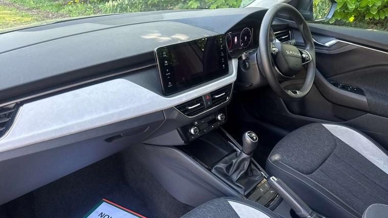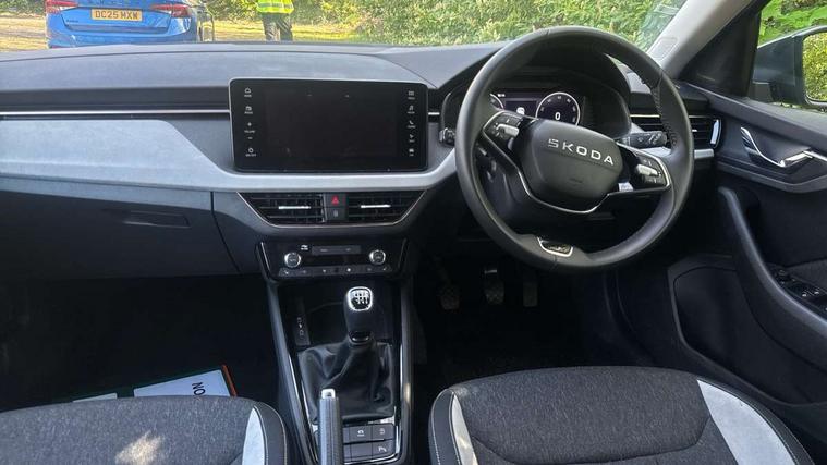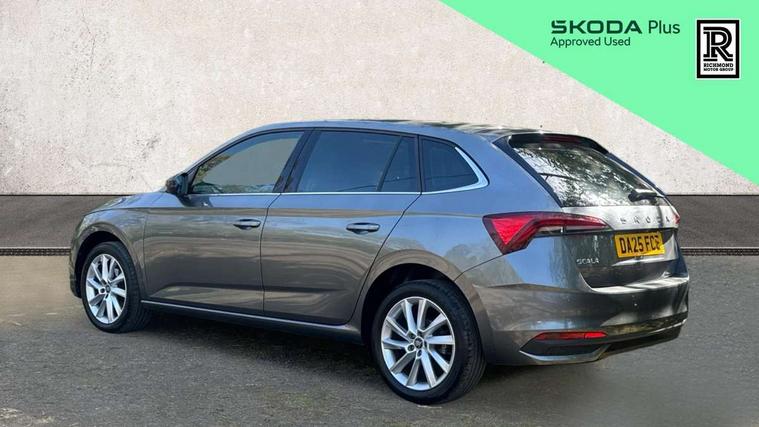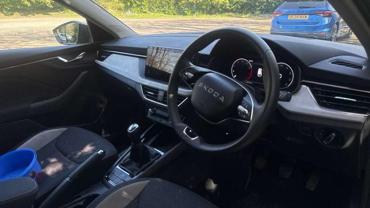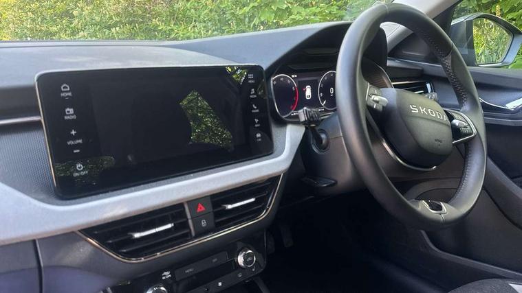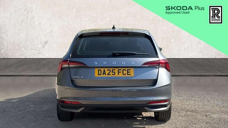 Advanced driver attention and drowsiness monitor, Bluetooth, e-Call (emergency call), Front assist system, PAS, Rear parking sensors, Rear view camera, Speed limiter, Tailgate, Traffic sign recognition, Virtual Cockpit - 10.25" digital display, Voice control system, Wireless smartlink, 4 USB C ports, 8 Speakers, 9.2" Skoda navigation display, DAB radio, Auto dimming rear view mirror, Automatic headlamp activation with Coming home and Leaving home feature, Automatic high/low beam, Automatic intermittent wipers, Body colour bumpers, Body colour door mirrors and handles, Chrome moulding around grille, Chrome window frames, Front and rear electric windows, Heated rear window, LED 3rd brake light, LED brake lights, LED daytime running lights, LED front turning lights, LED high beam, LED low beam, Light sensors, Privacy glass, Rear LED fog light, Rear side wing doors, Rear wiper, Tinted windows, Unique dark chrome design logo on alloy wheels, 12V socket in luggage compartment, 3 seat bench in 2nd row, Ambient lighting in white/red, Black / Copper armrest stitching, Cargo elements, Chrome inner door handles, Copper hotstamping, Door inserts in accent black, Driver and passenger sun visors with vanity mirror, Dual zone climate control, Front and rear roof lights, Front centre armrest, Front head restraints, Glasses storage in roof liner, Height adjustable driver seat, Height adjustable passenger seat, Ice scraper, Illuminated glove compartment, Inner circulation control with pollen filter, ISOFIX for front passenger seat, Isofix preparation for back seats, Leather gearknob and handbrake lever, Lodge cloth upholstery, Luggage net under rear parcel shelf, Manual lumbar support for front seats, Net package and top tether hooks in boot space, Pearl grey ceiling, Pocket on the back of both front seats, incl. mobile phone pockets, Rear centre armrest, Single front passenger seat, Skoda lettering on steering wheel, Textile floor mats, Third rear headrest, Ticket holder, Top tether for front passenger seat, Umbrella in driver's door, Convenience pack without rear camera - Scala, 3x3 point rear seatbelts, ABS, Child locks, Curtain airbags and front side airbags, Disc brakes, Driver and front passenger airbags, ESP, Hill hold control, Manual leather parking brake, One tone horn, Passenger airbag switch off function, Seatbelt reminder for driver and front passenger, Tyre pressure monitoring system, Anti theft alarm system with interior monitoring, backup horn and towing protection, Anti-theft wheel bolts, Remote central locking with 2 remote folding keys, SAFE function for remote central locking, Decorative inserts,