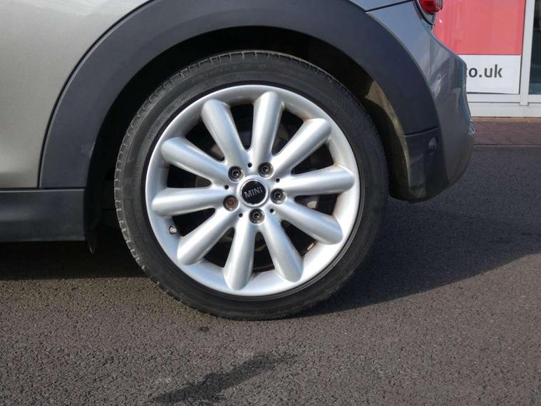 Acoustic seat-belt warning, Brake fluid level warning light, Brake pad wear indicator warning light, DTC - Dynamic traction control, Exterior temperature gauge, Intelligent emergency call, MINI TeleServices, Oil level indicator, On board computer, Push button starter, Service interval indicator, Servotronic PAS, Electronic differential lock, Performance Control, Auxiliary input socket, DAB digital radio module, 2 speed wipers+intermittent wipe, Anti dazzle mirror, Anti trapping/one touch open close front windows, Body colour scoop integrated into engine- compartment lid, Body coloured bumpers, Chrome bezels around rear lights and headlights, Chrome door handles, Chrome plated fuel cap, Chrome plated trim on bottom edge of window, Chrome strip on lower grille, Electric front windows, Electrically adjustable door mirrors, Flared wheel arches, Follow me home headlights, Green tinted heat insulating glass, Heated door mirrors/heated windscreen washers, Heated rear window with auto timer, High gloss black tailgate, Honeycomb radiator grille, Rear wiper, Twin chromed exhaust pipes, White indicator lights, 2 rear head restraints, 4 boot load lashing points, 4 way manually adjustable passenger seat with height, reach, tilt, backrest and headrest, 6-way manually adjustable driver's seat, Active carbon filter, Air recirculation system, Auxiliary socket in centre console storage compartment, Centre console storage, Driver's seat height adjuster, Driver/passenger sunvisors, Easy entry seats, Front and rear cupholders, Front head restraints, Front interior light, Front passenger grab handle, Front seat backrest storage nets, Front sports seats, Gear/selector and handbrake in artificial leather, Internal chrome door handles, Isofix child seat preparation, Luggage compartment lighting, Reach + rake adjustable steering column, Rear grab handles, Rear storage trays, Split folding rear seats, Storage compartments in doors, Toolkit in luggage compartment, 3 point seatbelts, ABS/EBD, ASC+T, Cornering brake control (CBC), Crash Sensor - activates hazard/interior lighting + unlocks doors, Driver and passenger airbags, Driver/front passenger side airbags, DSC - Dynamic Stability Control, Fuel cut off safety device, Head airbags, Hill start assist, Manual passenger airbag deactivation function, Seatbelt pretensioners, Tyre pressure warning, Ventilated front disc brakes, Drive away door locking, Locking wheel bolts, Remote central locking/doors+fuel cap+tailgate, Second remote key, Thatcham category 1 alarm + immobiliser,