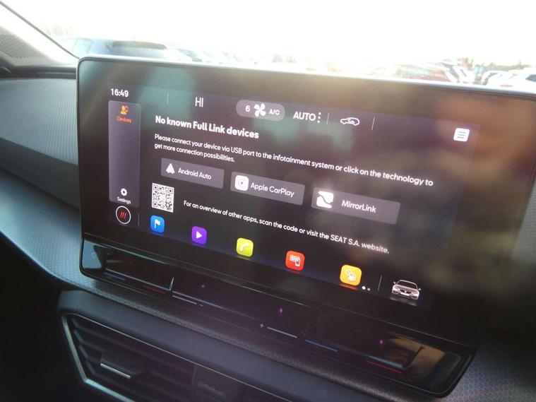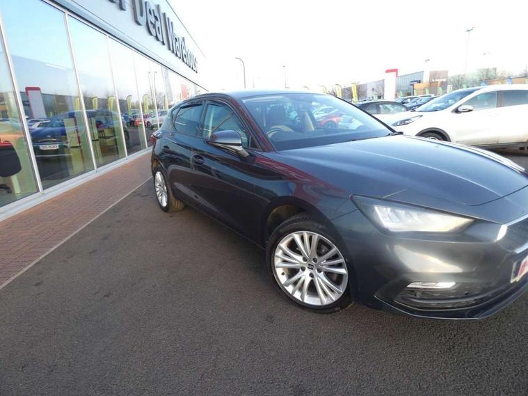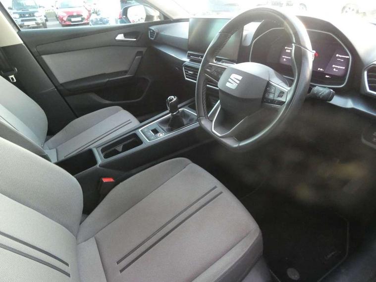 Cruise control with speed limiter, Digital cockpit, Front assist with forward collision warning braking reaction to vehicles, pedestrians and cyclists, Full link smartphone integration with Mirror Link, wireless Apple CarPlay and wired Google Android Auto, Lane keeping system, Lockable tailgate, Park assist (inc front/rear parking sensors), Power assisted speed sensitive electro-mechanical steering, RPM, trip computer, outside temp gauge, instrument light brightness, low fuel warning light, lights on reminder, gearshift indicator, Service interval indicator, Start/stop system with regenerative braking, Standard suspension, XDS electronic differential lock and dynamic traction support, Auxiliary input socket, Body colour door handles, Body coloured bumpers, Body coloured exterior mirrors with integrated LED indicators, Dark tinted rear windows, Electric front/rear windows, Electrically adjustable and heated door mirrors, LED front fog lamps with cornering function, LED headlights and LED tail lights, LED rear fog lamp, Manual dimming rear view mirror, Rear wash/wipe, Separate daytime running light with automatic headlight control, 12v power point in centre console, 60/40 split rear bench seat, Air conditioning, Cloth upholstery, Driver seat lumbar adjustment, Driver/passenger manual seat height adjustment, Dust/pollen filter, Folding boot cover, Front and rear height adjustable headrests, Front and rear reading lights X 4, Front seatback storage pockets, Height/reach adjust steering wheel, Interior lighting with LED lighting in sunvisor, glovebox and rear headlining, ISOFIX points in outer rear seats with top tether anchorage points, Leather flat bottomed, perforated steering wheel and leather gearstick, Luggage tie-down hooks, Sunvisors with covered illuminated mirror, Media system plus with navigation - Leon SE, 3 point seatbelts on all rear seats, ABS, Brake control system - ESC and brake booster, Child proof door locks, Driver and front passenger airbags with front passenger airbag de-activation, front side and curtain airbags, Electronic parking brake, Extended safety system - seat belt tensioner, window closure and hazard lights, Hill hold control, Rear disc brakes, Seat belt reminder for front and rear seats, Tiredness recognition system, driver alert system, Tyre pressure monitoring system, Anti theft alarm system with interior monitoring in cab, backup horn and towing protection, KESSY Go (Keyless start), Locking wheel bolts, Chrome interior detailing, 17" Dynamic tri-spoke alloy wheels with 91W tyres, Tool kit,