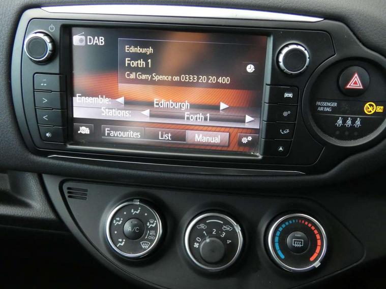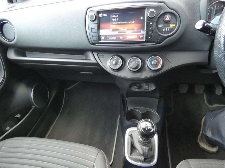 Bluetooth system, Cruise control, Electric boot release, External temperature gauge, Fuel indicator with low level warning, Lights on warning, Rear view camera, Remote fuel flap release, Speed sensitive power steering, Tachometer, Trip computer, 6 speakers, Auxiliary input socket, DAB Digital radio, MP3 player, Radio, Steering wheel mounted audio controls, Touch screen audio system, USB connection, 2 speed front wipers + intermittent wipe, Body colour heated door mirrors, Chrome fog light surround, Chrome grille surround, Colour keyed bumpers, Colour keyed door handles, Drivers window one touch up/down, Electric front windows, Electrically adjustable door mirrors, Follow me home headlights, Front fog lights, Green tinted glass, Headlamp levelling, Heated rear windscreen, LED daytime running lights, LED rear lights, Privacy glass, Projector headlamps, Rear spoiler, Rear wiper, 12V Accessory socket, 60/40 split folding rear seat, Boot light, Clean air filter, Driver seat height adjust, Driver's glovebox with lid, Driver/passenger vanity mirrors with covers, Front cupholders x 2, Front map reading lights, Front seats with lumbar support, Gioco cloth upholstery, Height adjustable front head restraints, Height adjustable rear seat head restraints (x3), Interior silver door handles, Isofix system on outer rear seats, Leather gear knob, Leather steering wheel, Rear cupholder, Removable rear parcel shelf, Tilt/telescopic steering column, 3 point seatbelts on all rear seats, ABS+EBD+Brake assist, Collapsible pedal support, Curtain airbags, Door open warning, Driver and passenger airbags, Drivers knee airbag, Front side airbags, Height adjustable front seatbelts with pre-tensioners and load limiters, Passenger airbag deactivate switch, Rear child proof door locks, Seatbelt warning lamp and buzzer, Tyre pressure monitoring system, Vehicle stability control VSC + traction control, Ventilated front disc brakes, Engine immobiliser, Remote central locking, Instrument panel in grey, 16" Machined alloy wheels, Space saver spare wheel,
