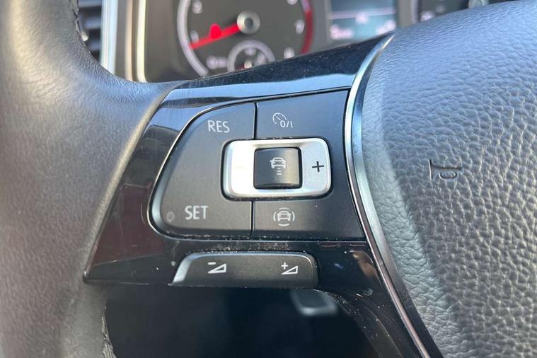 'Lights On' Reminder warning buzzer, 2 USB connection charging sockets, Adaptive cruise control with front assist, radar sensor controlled distance monitoring, city emergency braking, App-Connect, Automatic start/stop system, Bluetooth telephone and audio connection for compatible devices, Car information display, Driver alert system with audible and visual fatigue detection system, Driver tips and journey analysis, Lane assist, Multifunction computer with visual gear change recommendation for fuel consumption, Service interval indicator, Think blue trainer driver tips and journey analysis, Warning sound and light for doors and tailgate open, Warning sound and light for front seatbelts unfastened, We Connect Go Dongle, Battery regeneration during braking, DAB Digital radio, Multi device interface (MDI) with USB connection, Music playback - MP3, WMA and AAC files, Premium USB cable in choice of either Apple or Android smartphone compatibility, SD card slot, Simultaneous pairing of 2 compatible mobile devices, SMS functionality - read, compose and send SMS messages using touch-screen display, Title and cover art display, Auto dimming interior rear view mirror, Automatic hazard lights activation under emergency braking, Black grained lower door protectors, Black grained wheel arches, Body colour door handles, Body colour sports bumpers with silver metallic underbody fascia, Body coloured door mirrors with integrated indicators, Chrome effect left and right trapezoid exhaust tailpipe fascia surround, Chrome trim on upper and lower radiator grille, Dusk sensor, Electrically foldable, adjustable and heated door mirrors with puddle lights and reverse activated kerb-view adjustment on passenger's door mirror, Front and rear electric windows, Front windscreen wiper with intermittent wipe and 4 position delay, Fully galvanised body, Heated rear window, High level 3rd brake light, LED rear number plate lights, Manual coming/automatic leaving home lighting function, Rain sensor, Rear tinted glass from B-pillar backwards approx 65% tinted, Rear wash/wipe with intermittent wipe setting, 12V socket in centre console storage area, 2 Front and rear reading lights incorporating LED technology, 3 rear head restraints, 4 load lashing points in luggage compartment, Ambient lighting in front footwell and light strips below trim in front doors, Climate control - 2 zone electronic air conditioning with automatic air recirculation and allergy filter, Drawer under drivers seat, Front centre armrest with storage compartment, longitudinal and height adjustable and two rear air vents, Front cupholders x 2, Front footwell illumination, Front seat back storage pockets, Glovebox, Height adjustable front seats, Height/reach adjust steering wheel, Illuminated vanity mirrors, Instrument lighting, white adjustable panel illumination, Interior light delay, Isofix easy fit child seat preparation for 2 outer rear seats, Load through provision with single cup holder when folded down, Luggage compartment cover, removable, Luggage compartment lighting, Split folding rear seat backrests with centre armrest, Storage compartment in left and right luggage area, Storage compartment in rear doors, Storage compartments in driver and front passenger doors, 3 rear three point seatbelts, ABS, Curtain airbags, Driver and front passenger safety-optimised head restraints, Drivers and front passengers airbags with passengers deactivation switch, Electronic parking brake with auto hold, Electronic stability control (ESC) includes ASR, EDL, EDTC and trailer stabilisation function, Front seat side impact airbags, Predictive pedestrian protection, Rigid safety cell with front and rear crumple zones, Three point height adjust front seatbelts + pretensioners, Tyre pressure loss indicator, Ventilated front and rear disc brakes, Volkswagen roadside assistance, Alarm with interior protection and deactivation via infotainment system, Electronic engine immobiliser, Remote central locking with 2 remote folding keys, Limestone grey decorative inserts in dash and door panel, Space and weight saver spare wheel,